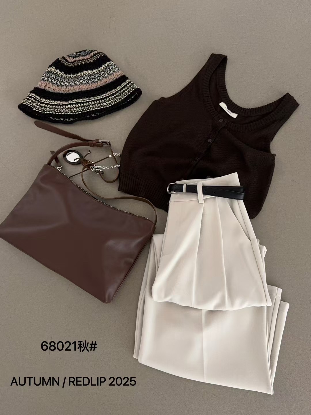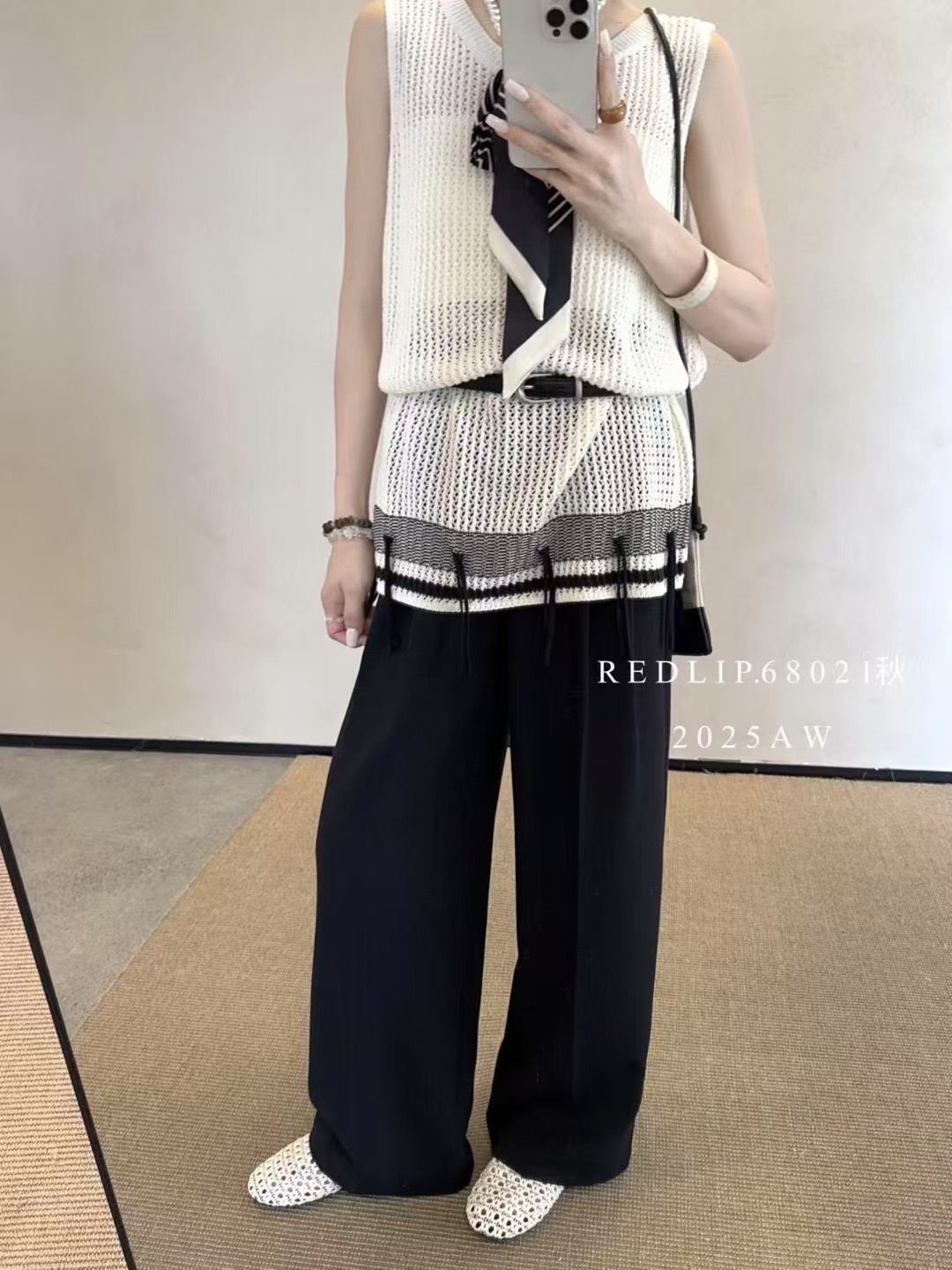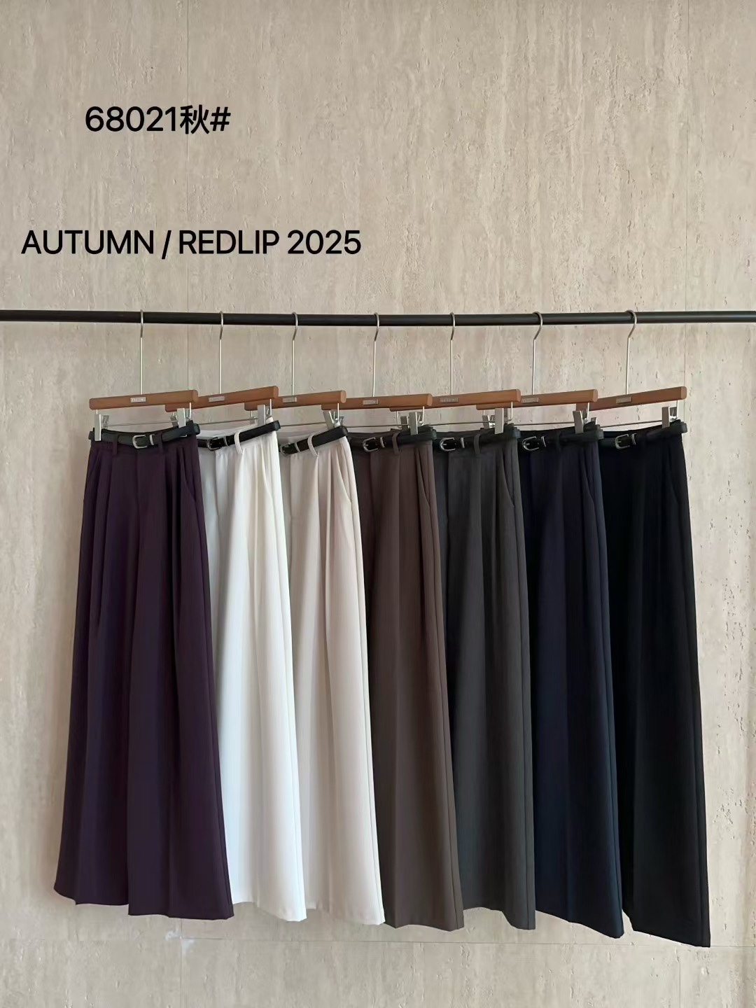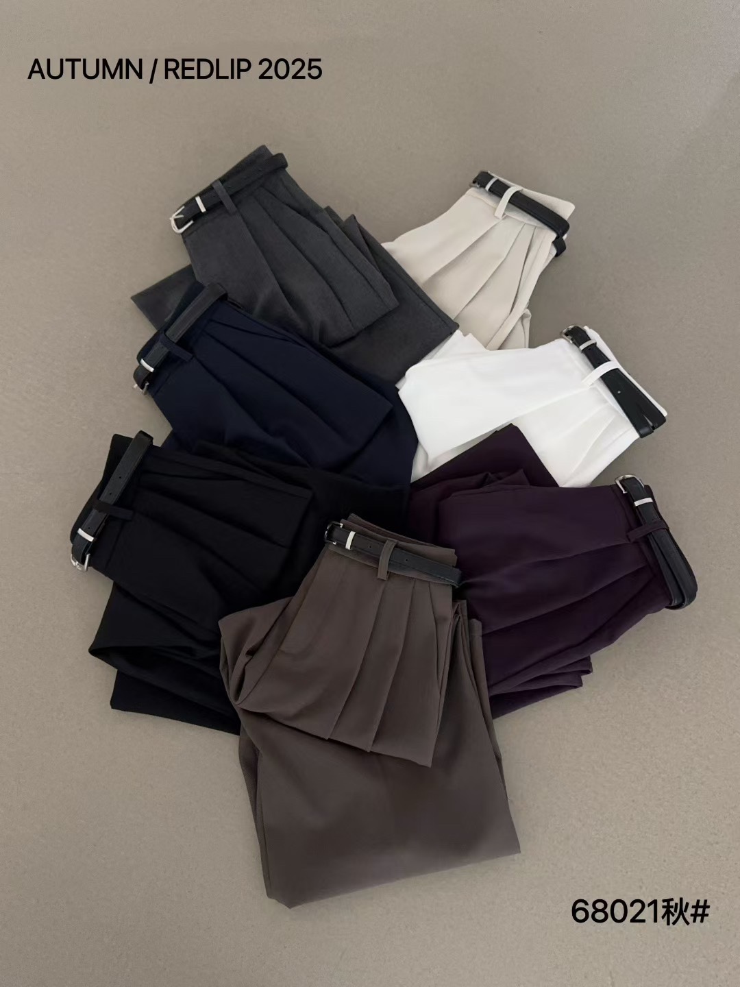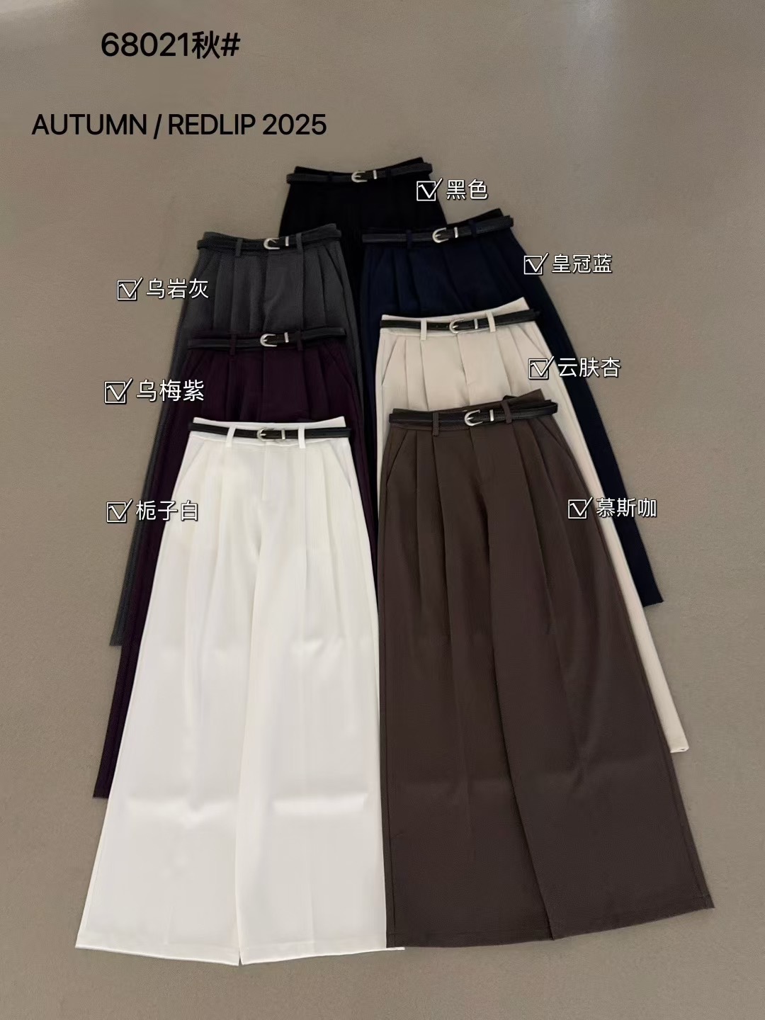 紅脣2025秋季垂墜高腰顯高顯瘦窄版濶腿褲西裝褲通勤長褲女68021