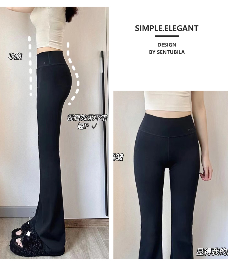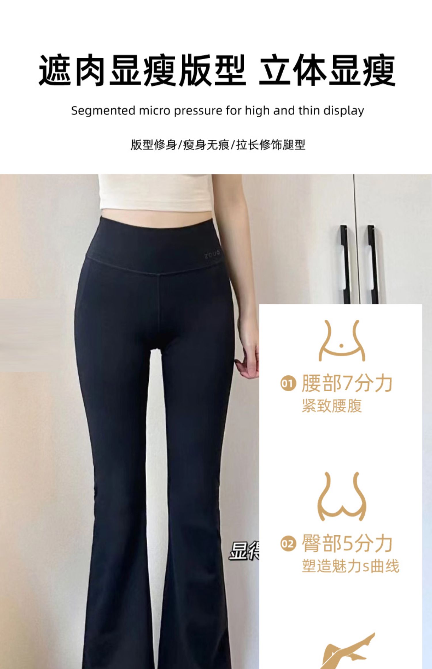 黑色鯊魚喇叭褲女夏2025新款高腰修身顯瘦收腹提臀透氣瑜珈微喇褲