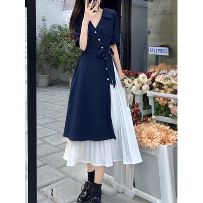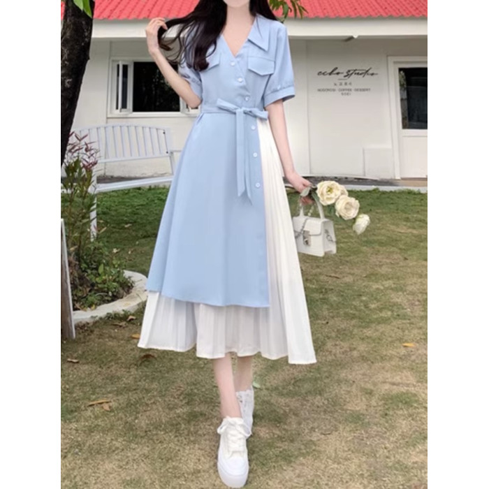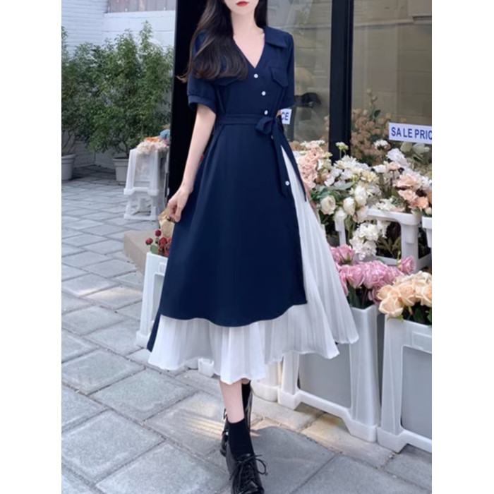 法式小衆設計感雪紡連衣裙女夏大碼胖MM不規則氣質赫本風a字長裙