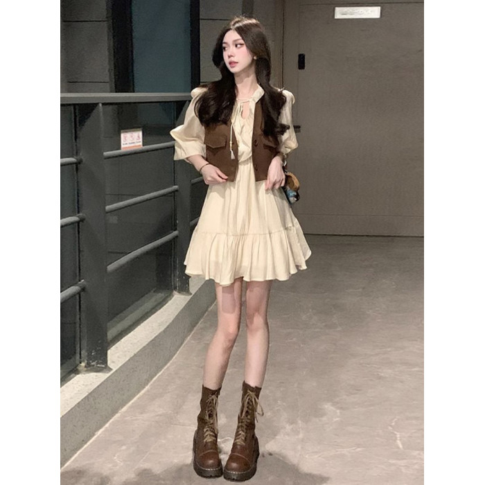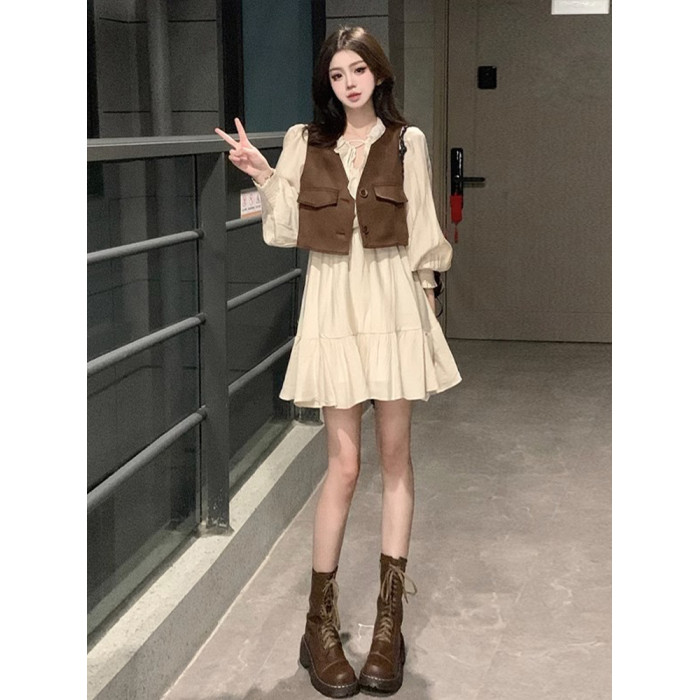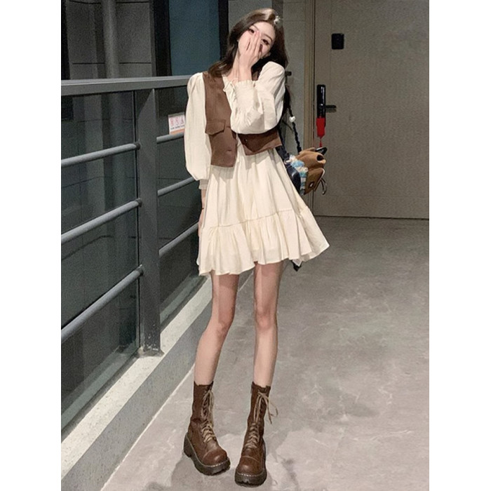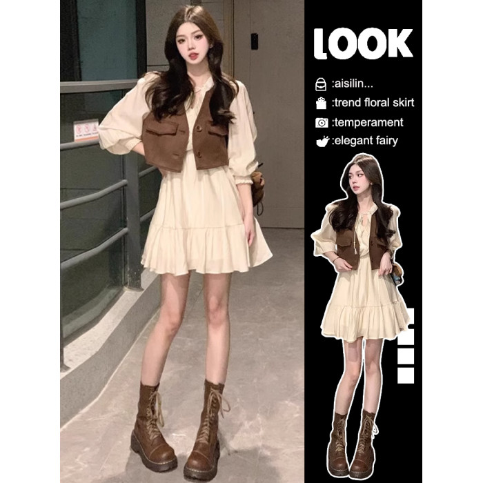 2025新款秋冬穿搭一整套裝小個子白色襯衫連衣裙子女氣質度假短裙