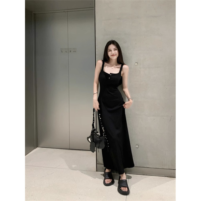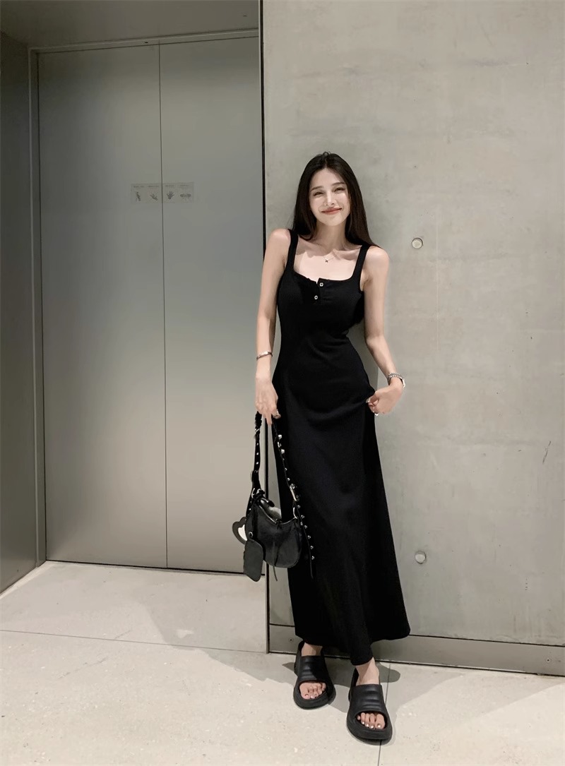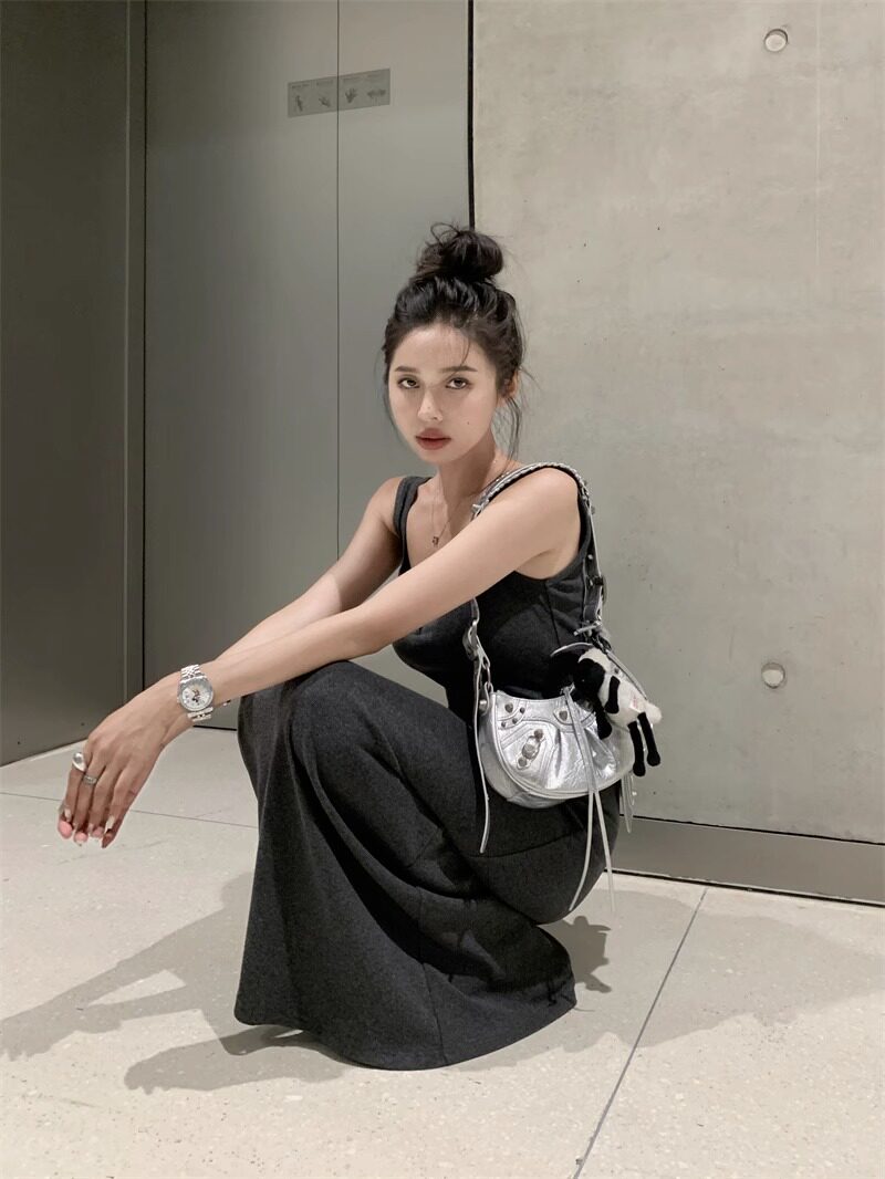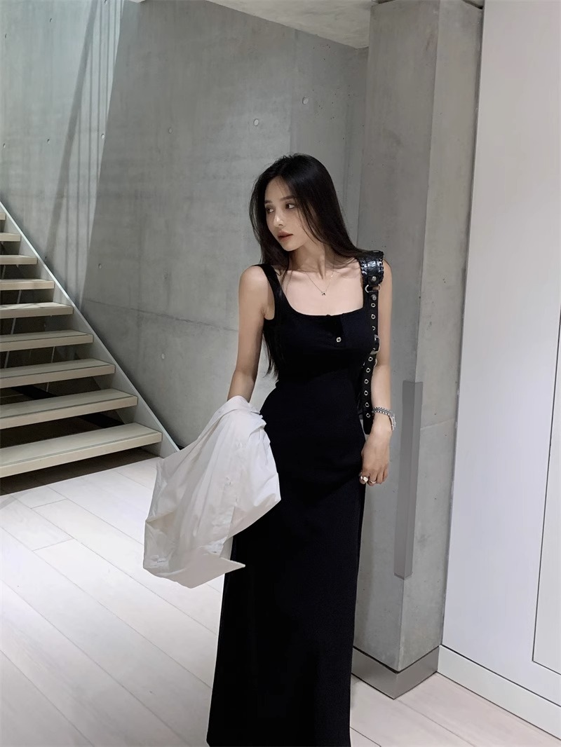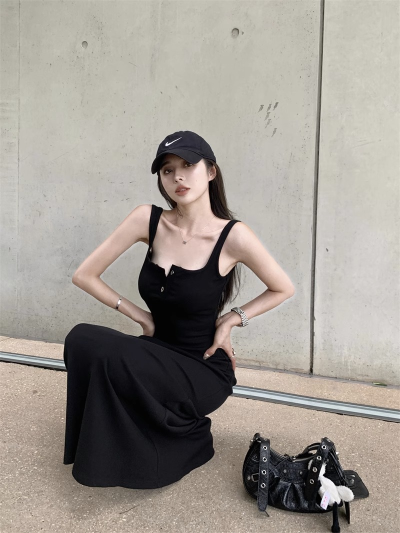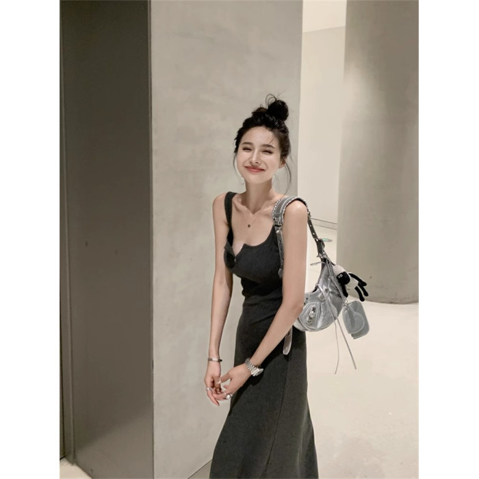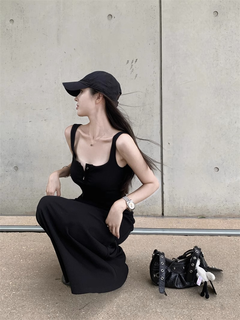 黑色純欲針織背心吊帶連衣裙女夏辣妹氣質高級感收腰顯瘦包臀長裙