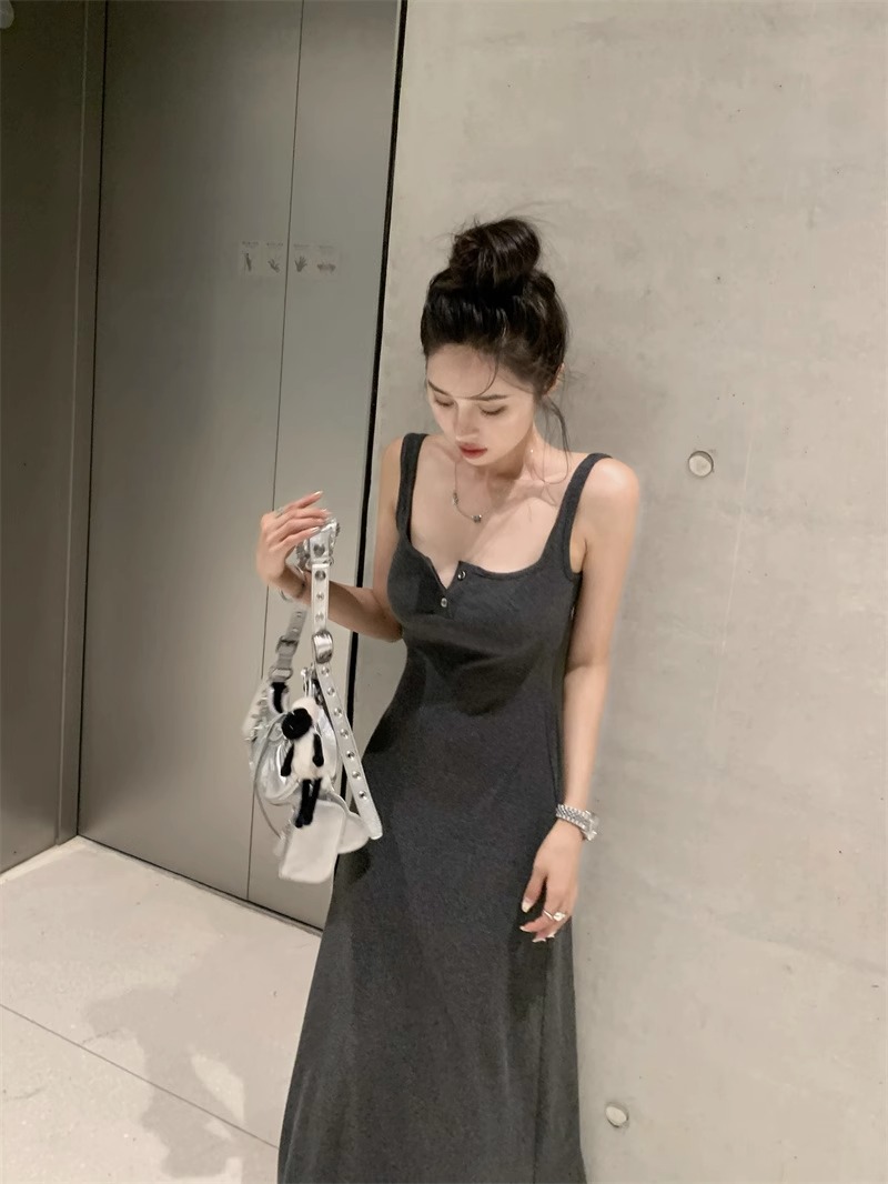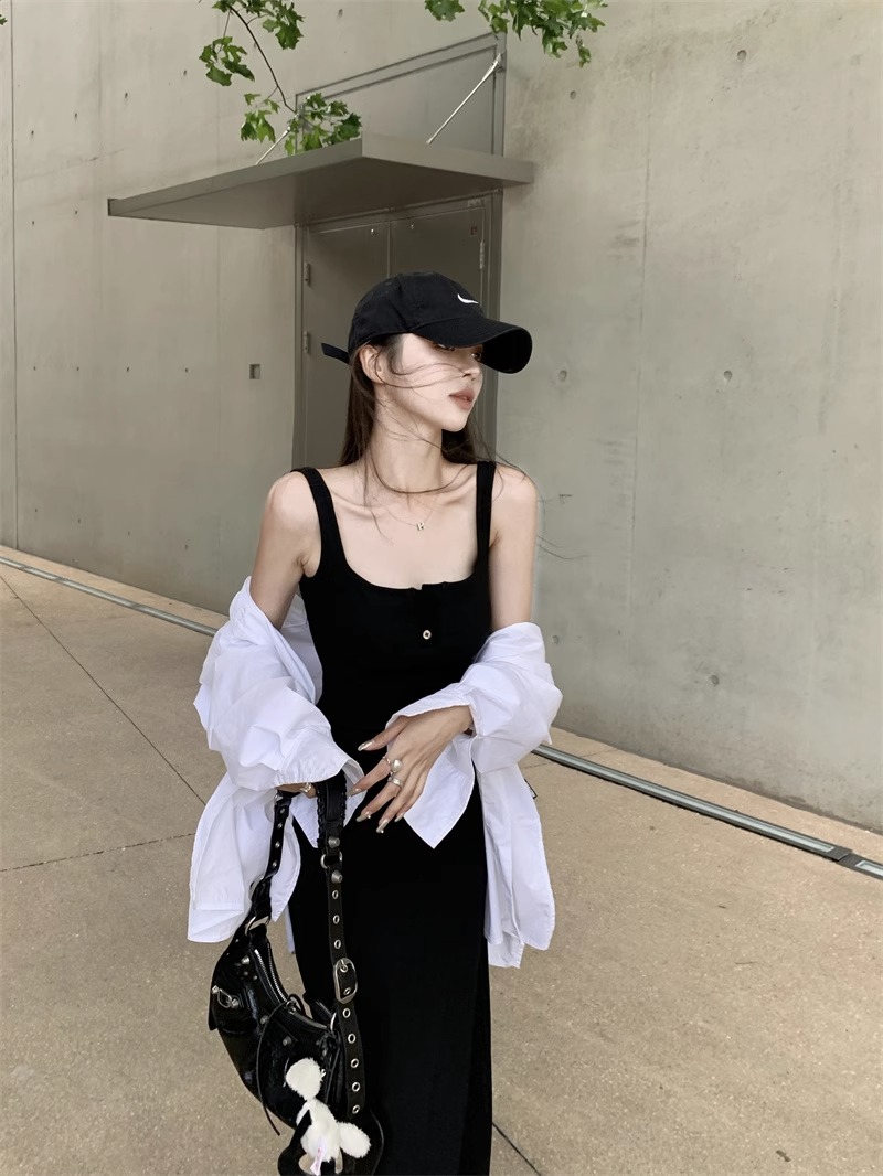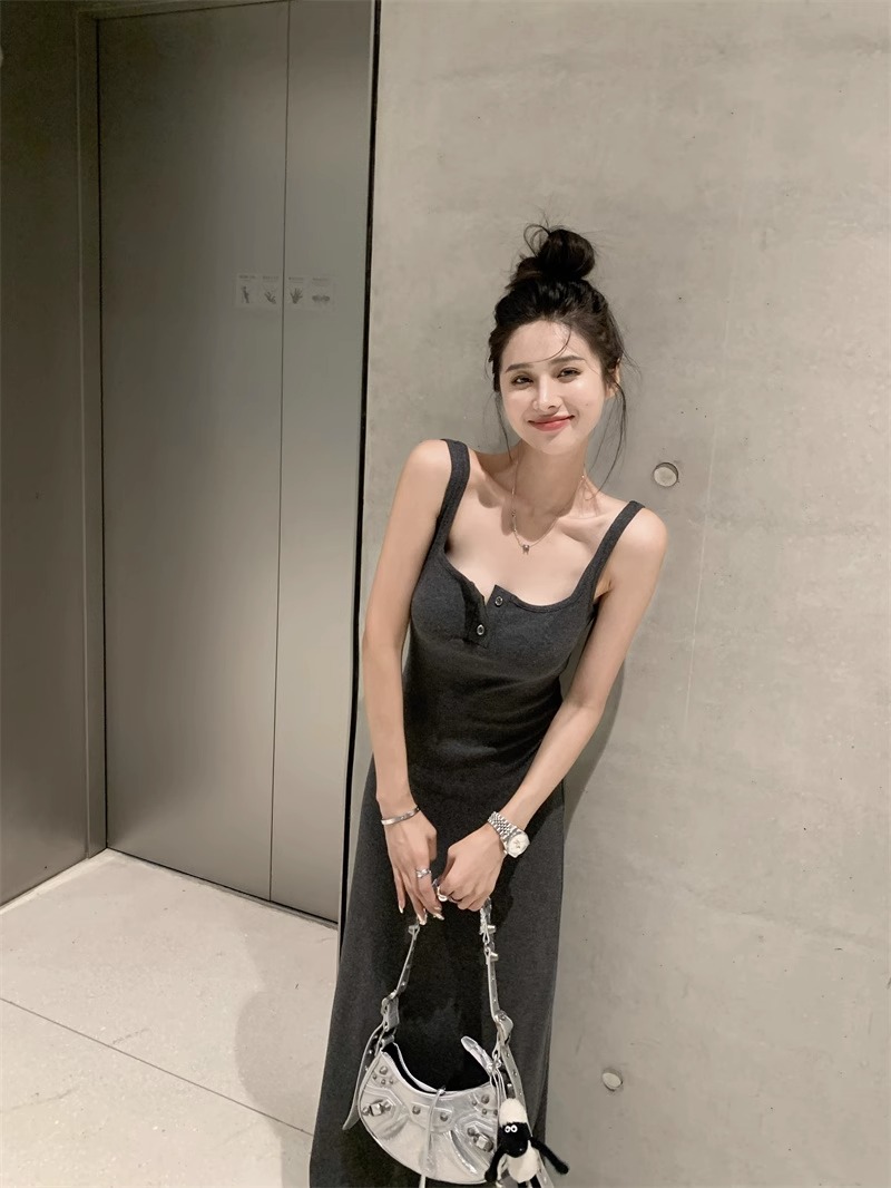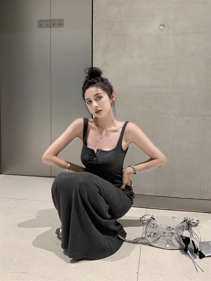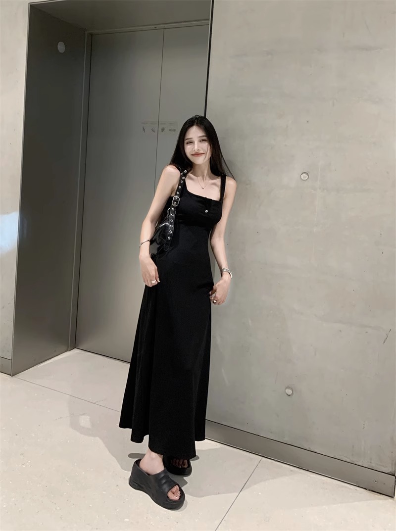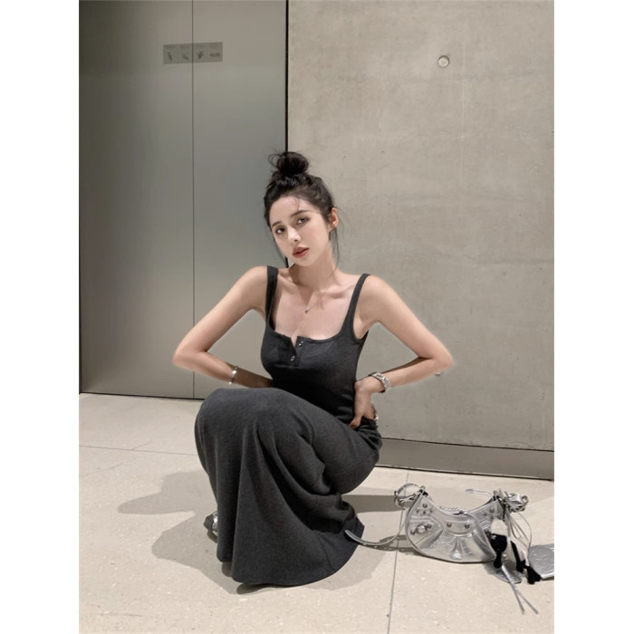黑色純欲針織背心吊帶連衣裙女夏辣妹氣質高級感收腰顯瘦包臀長裙