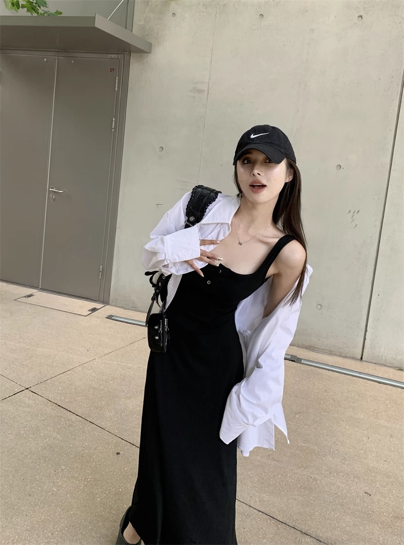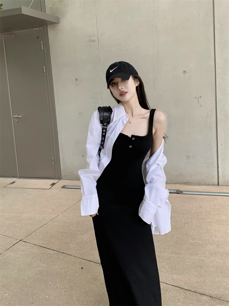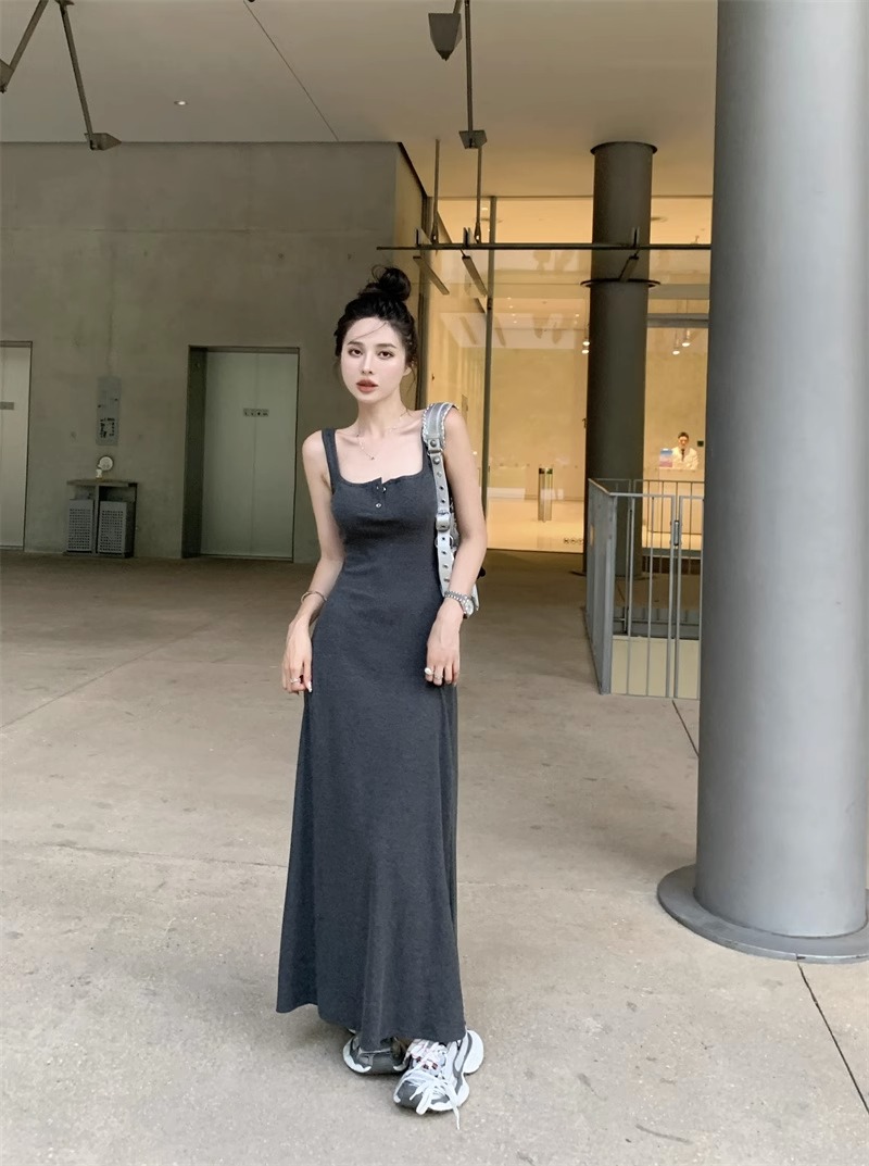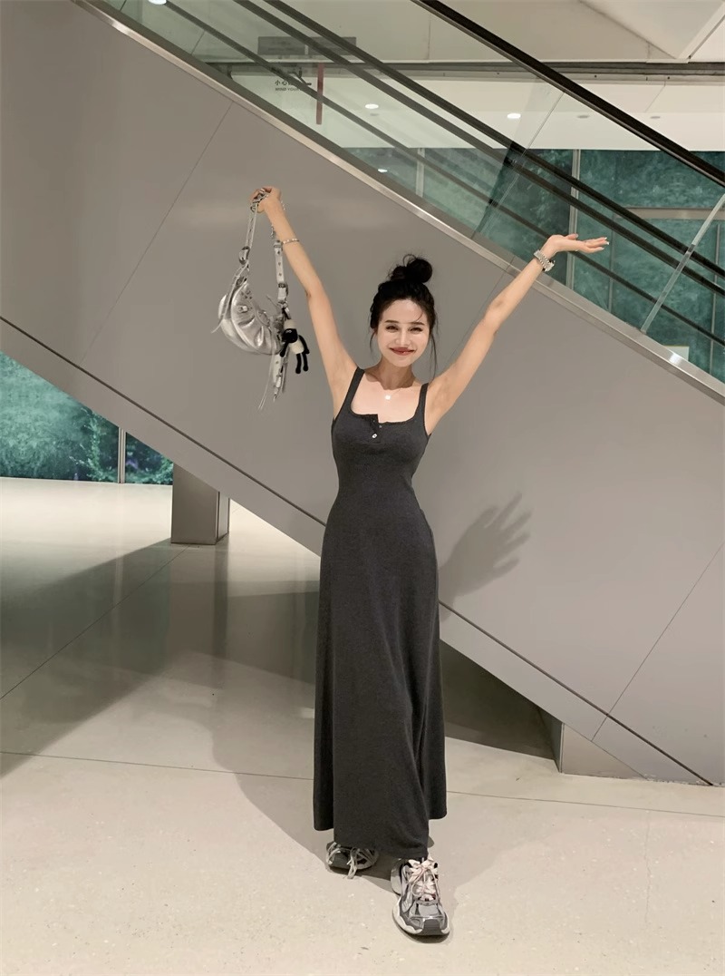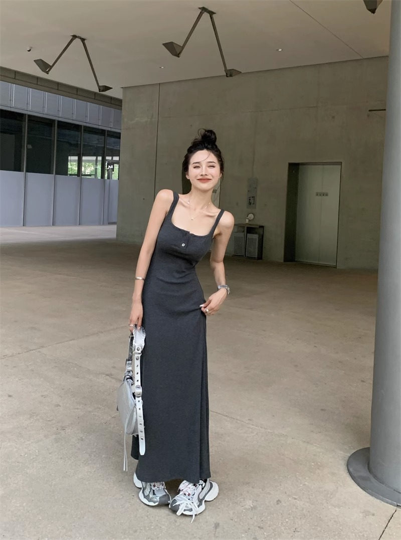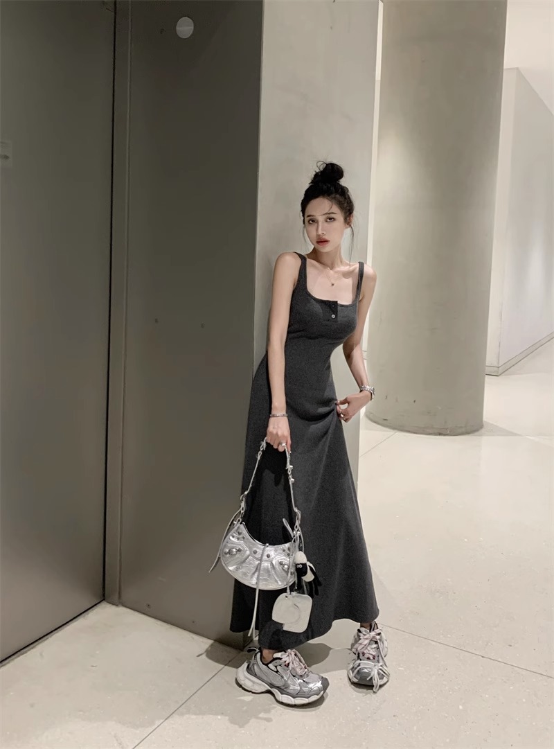 黑色純欲針織背心吊帶連衣裙女夏辣妹氣質高級感收腰顯瘦包臀長裙