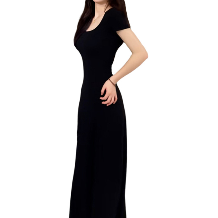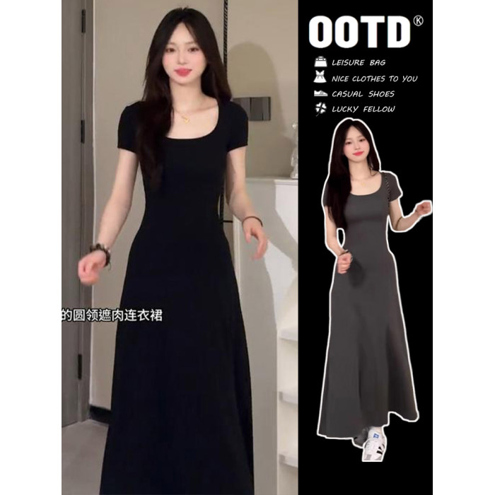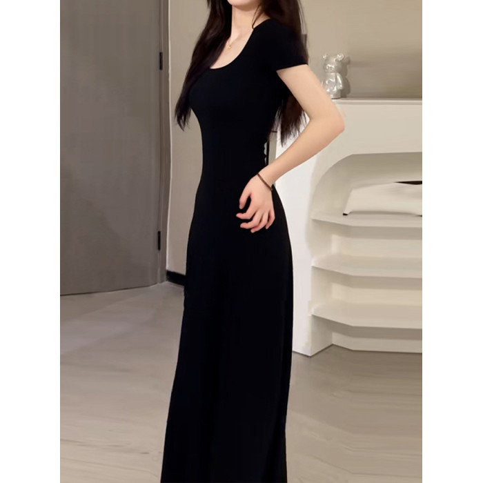 2025新款小個子法式黑色連衣裙子夏季女裝高級感氣質修身收腰長裙
