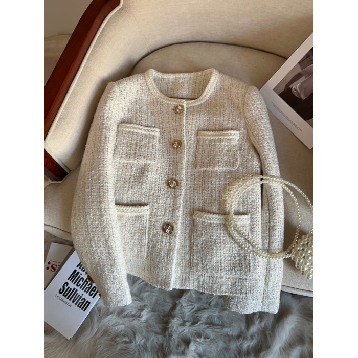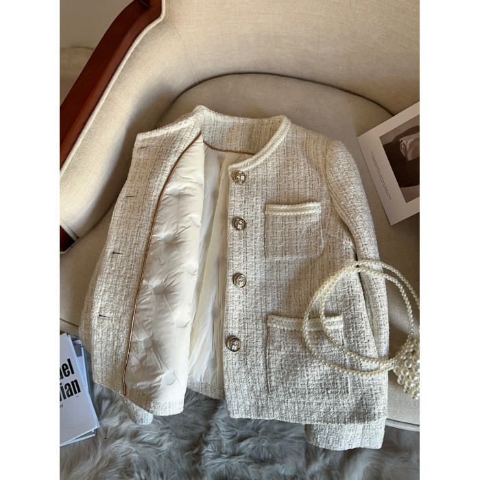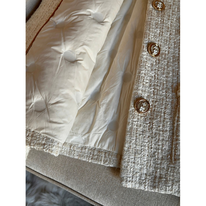 白色羽絨服內膽精緻小香風外套女冬季粗花呢白鴨絨加厚外套A72182