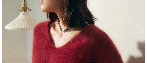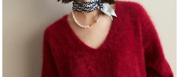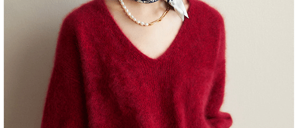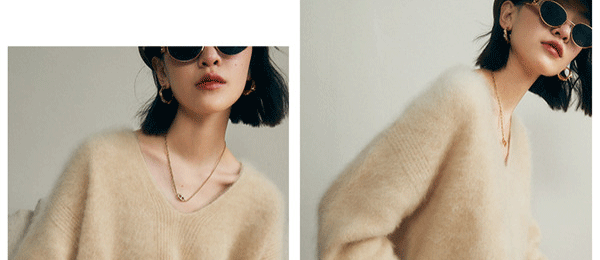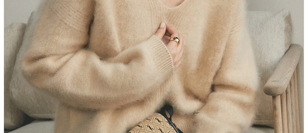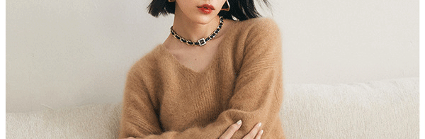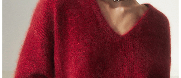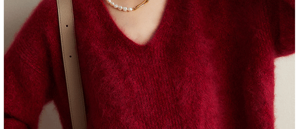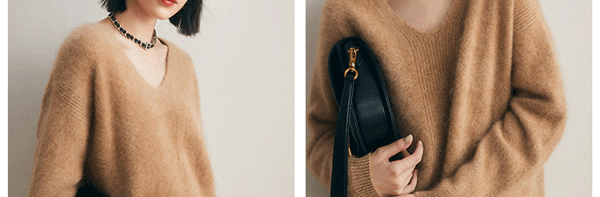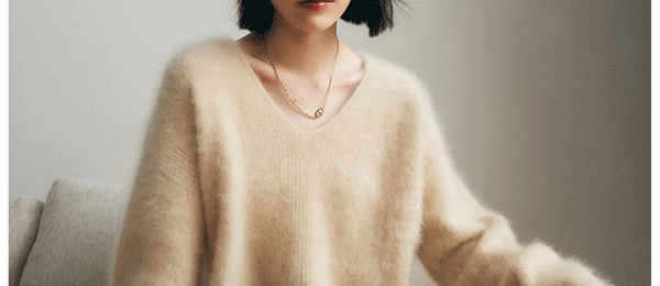 高級感軟糯水貂絨v領毛衣女秋冬加厚慵懶風奶fufu針織衫時尚上衣