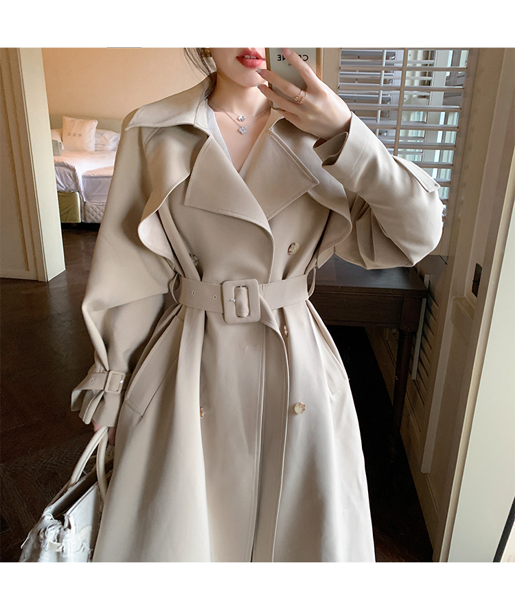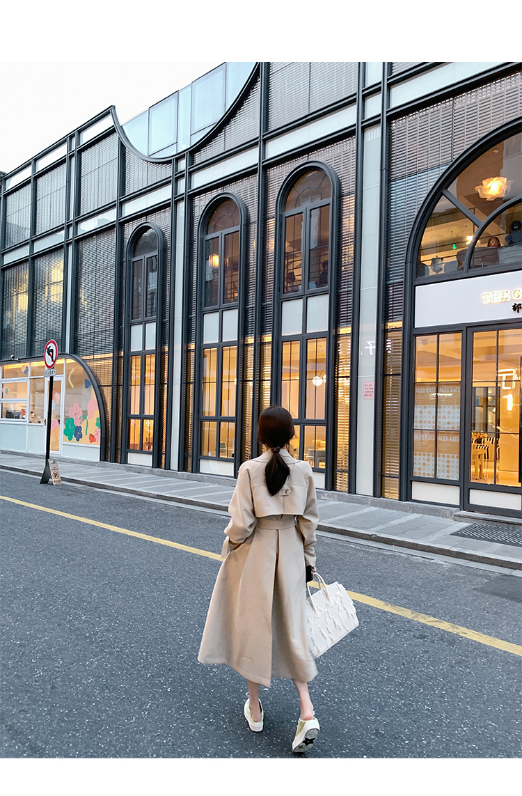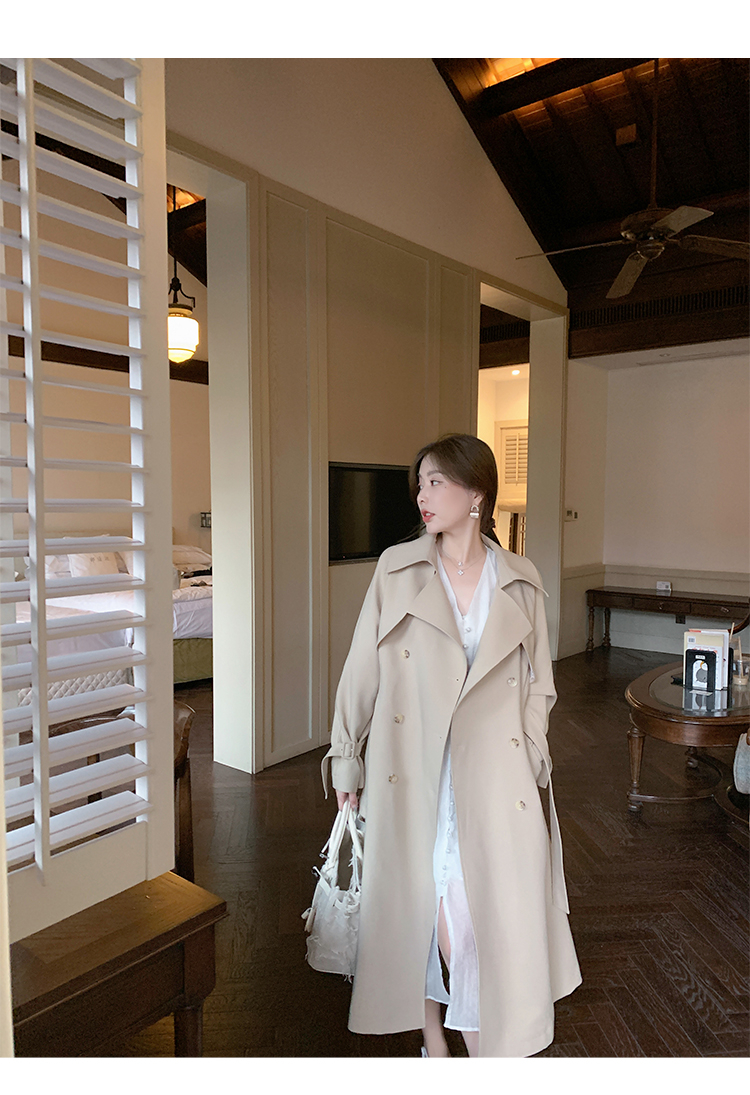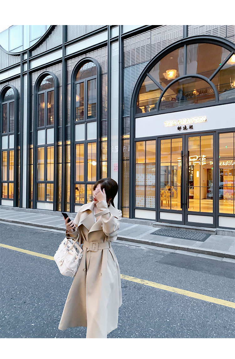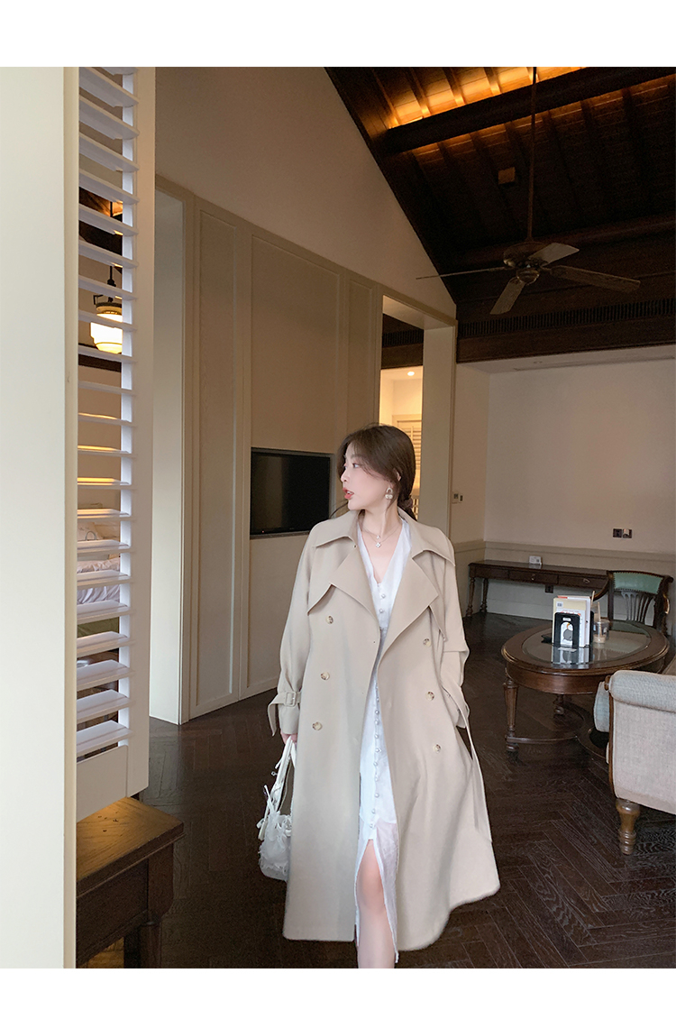 米白色風衣外套女中長款百搭春秋季新款韓系小個子英倫風流行大衣