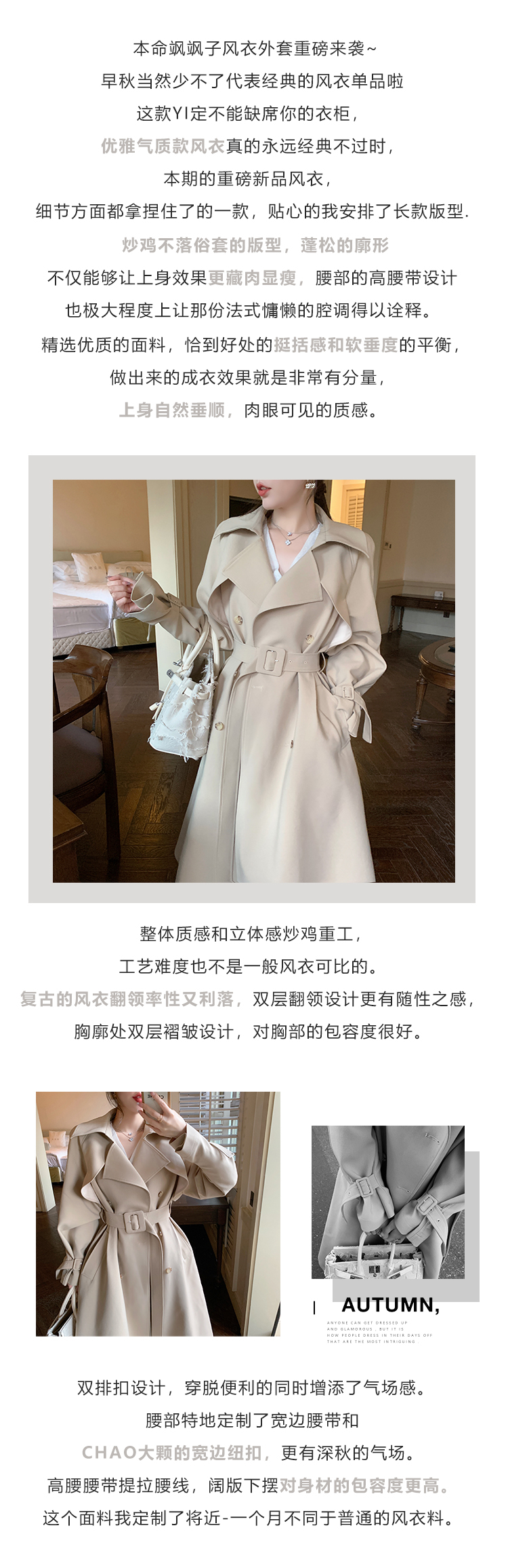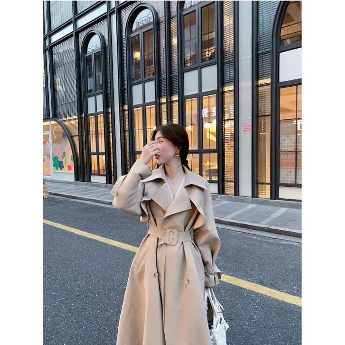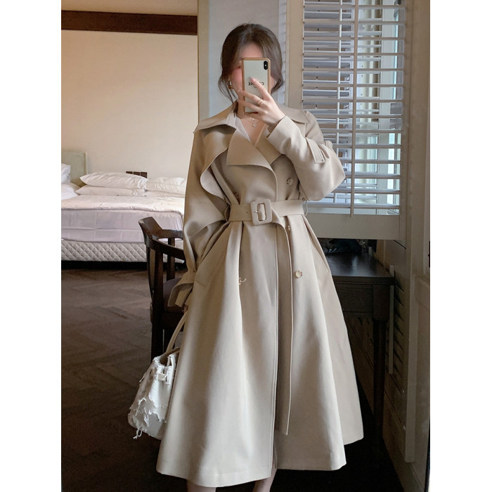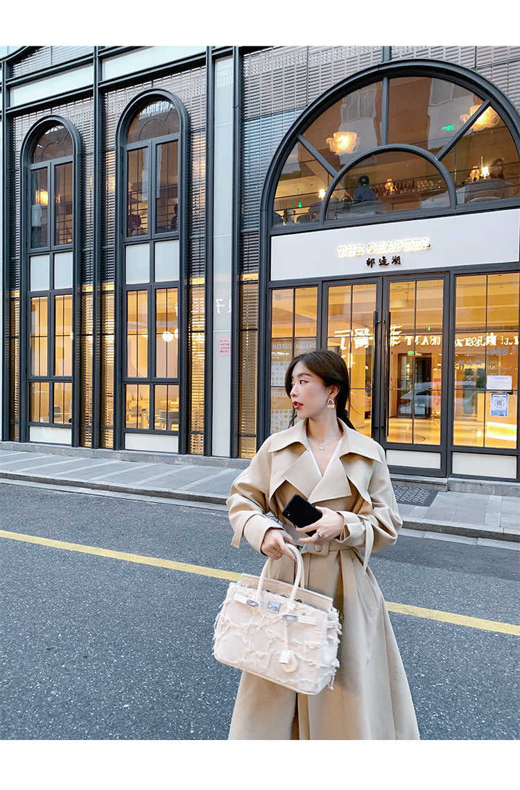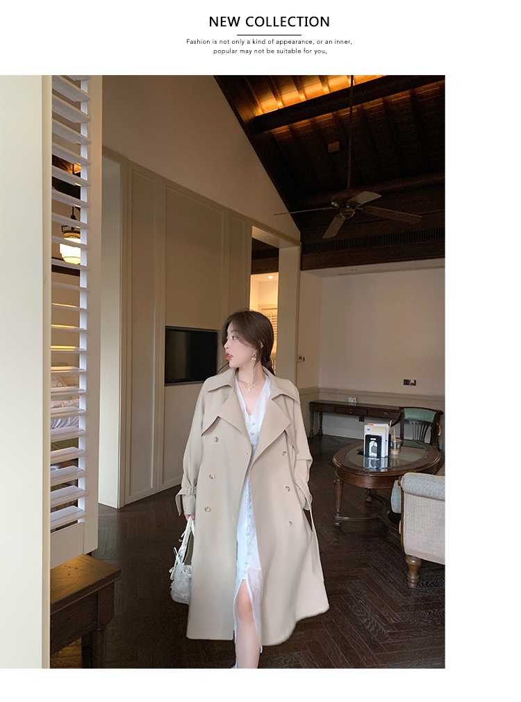 米白色風衣外套女中長款百搭春秋季新款韓系小個子英倫風流行大衣