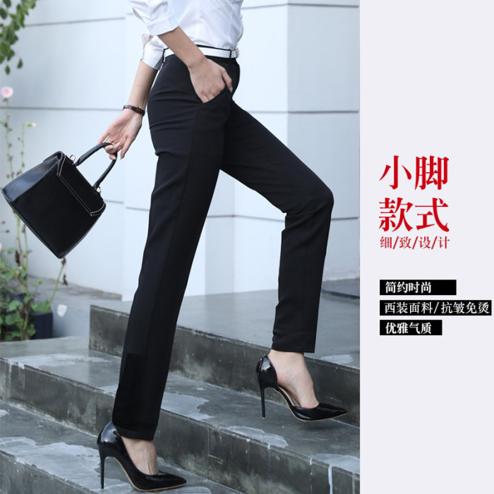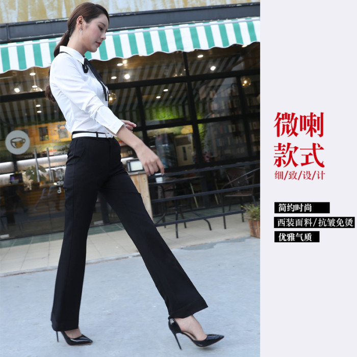 西裝褲女秋冬黑色修身正裝工作褲高腰直筒小腳微喇長褲職業西褲女