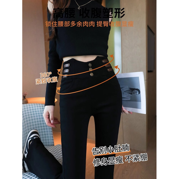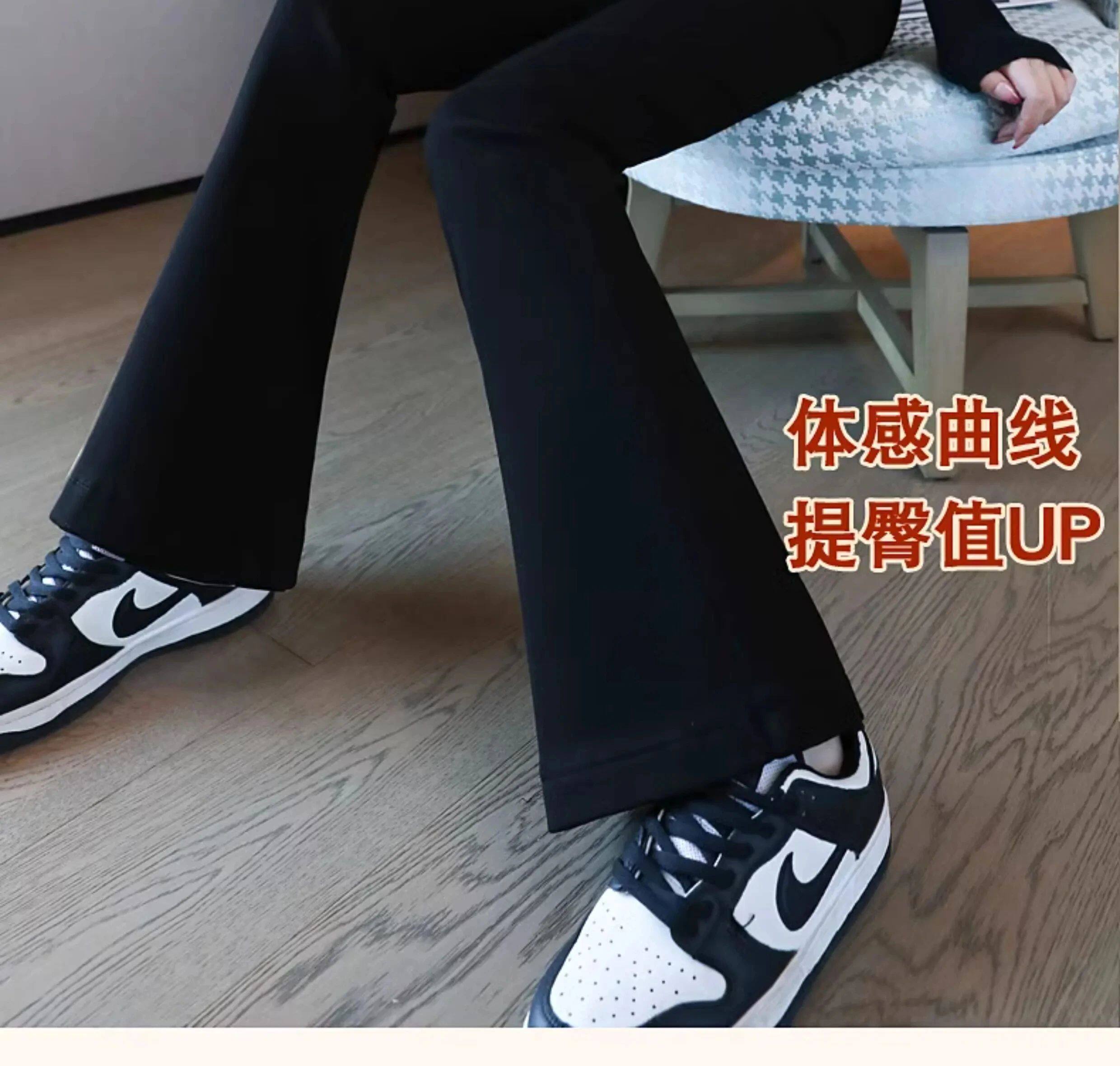 微喇叭褲女秋冬加絨高腰顯瘦2025新爆款垂感小個子黑色拖地馬蹄褲