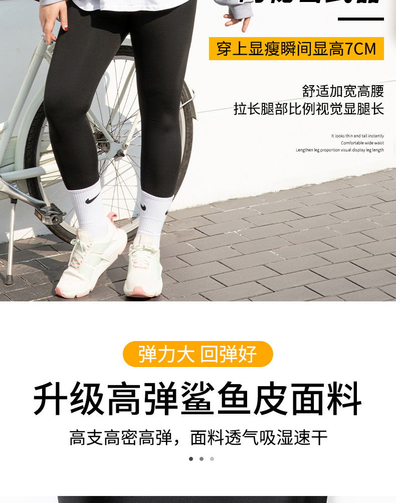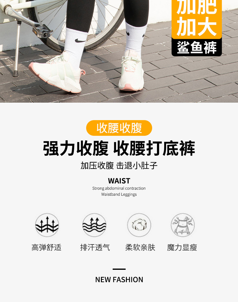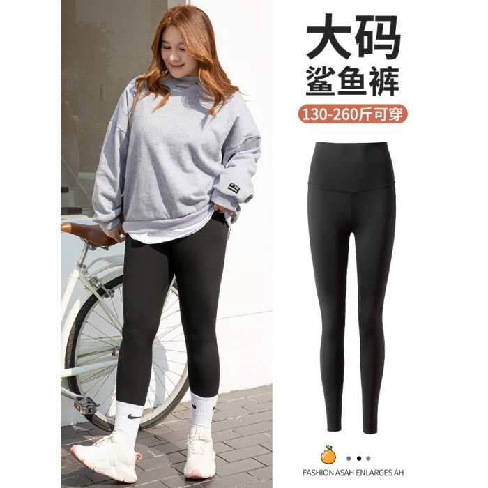 特大碼鯊魚褲女外穿秋冬高腰收腹薄絨胖mm200加肥瑜珈九分打底褲