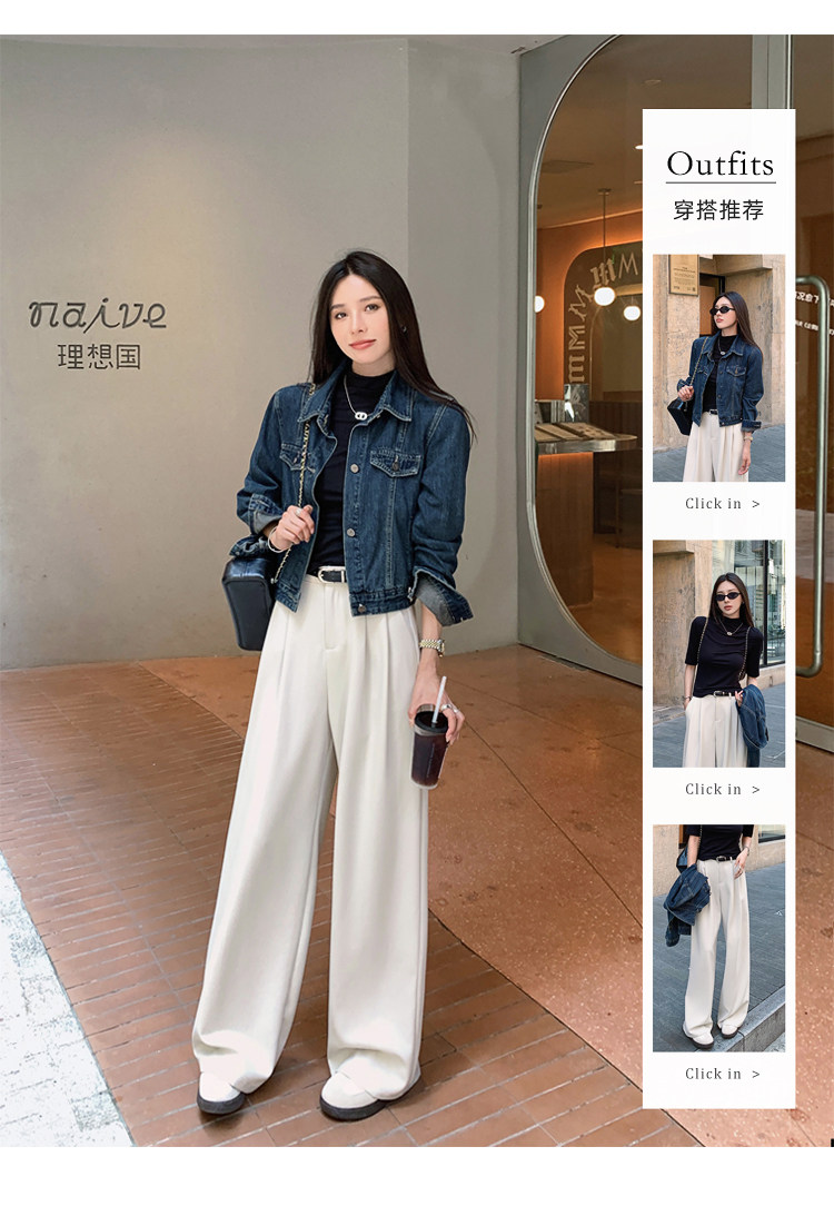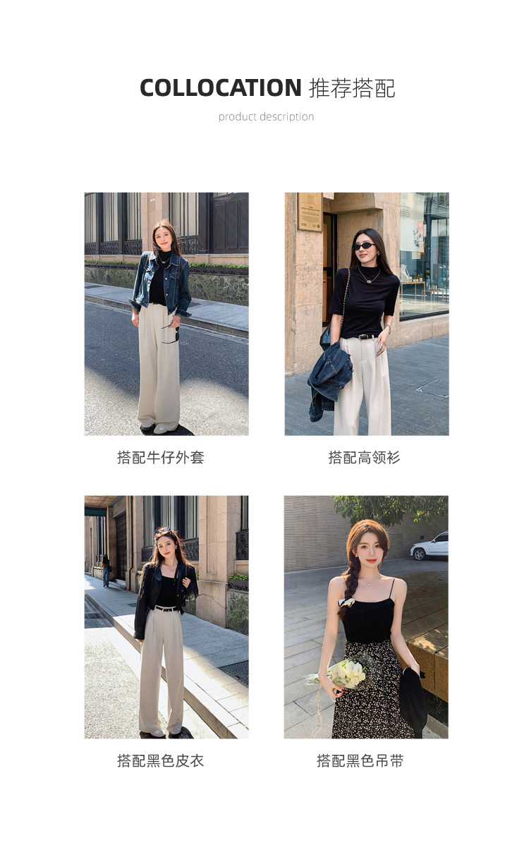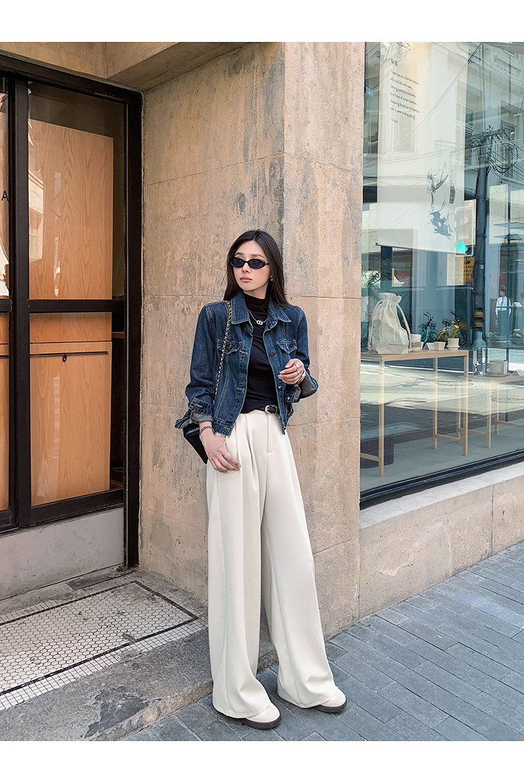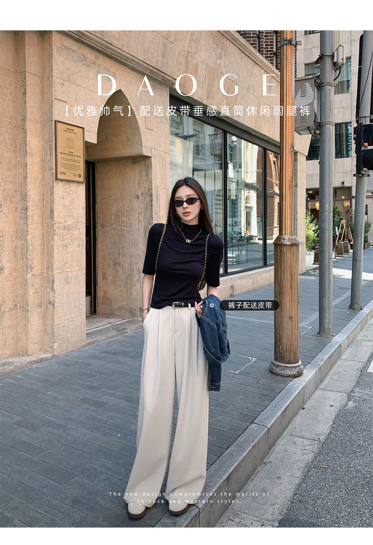 島歌夫人垂墜感寬鬆直筒長褲高腰濶腿褲女春秋2025新款拖地休閒褲