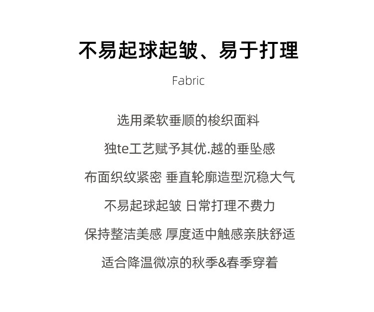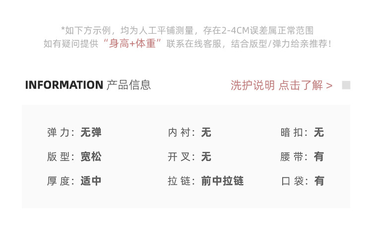 材質成分 聚酯纖維81.6% 粘膠纖維(粘纖)17.3% 聚氨酯彈性纖維(氨綸)1.1%