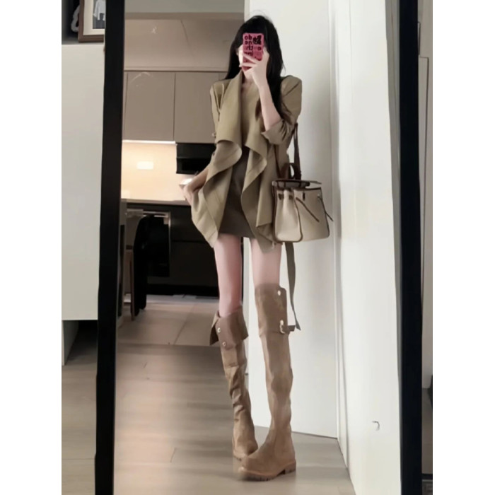 韓系氛圍感穿搭高級感超好看風衣外套設計感小衆大翻領短款外套春