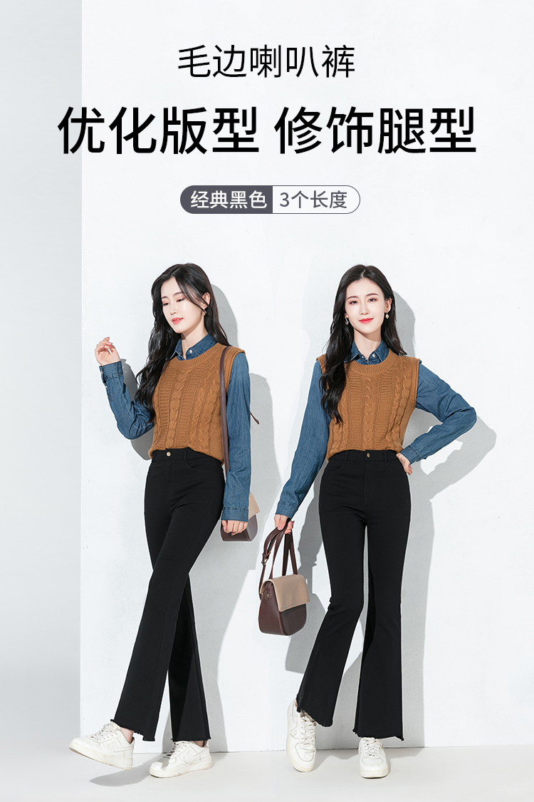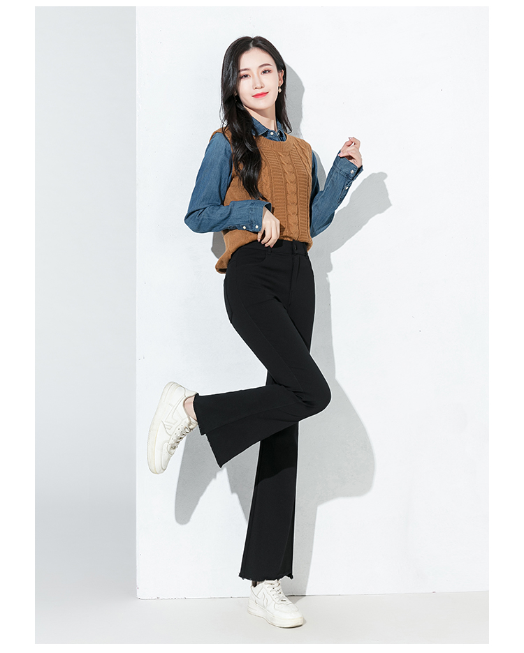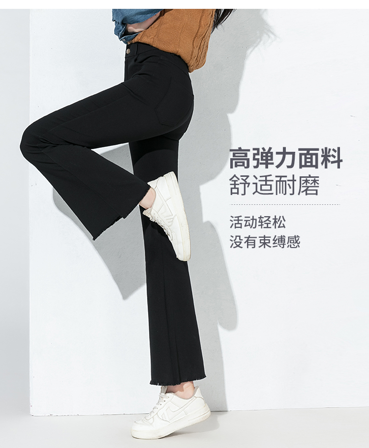 喇叭褲胖mm大碼彈力顯瘦牛仔加絨九分微喇高腰小個子秋冬濶腿休閒