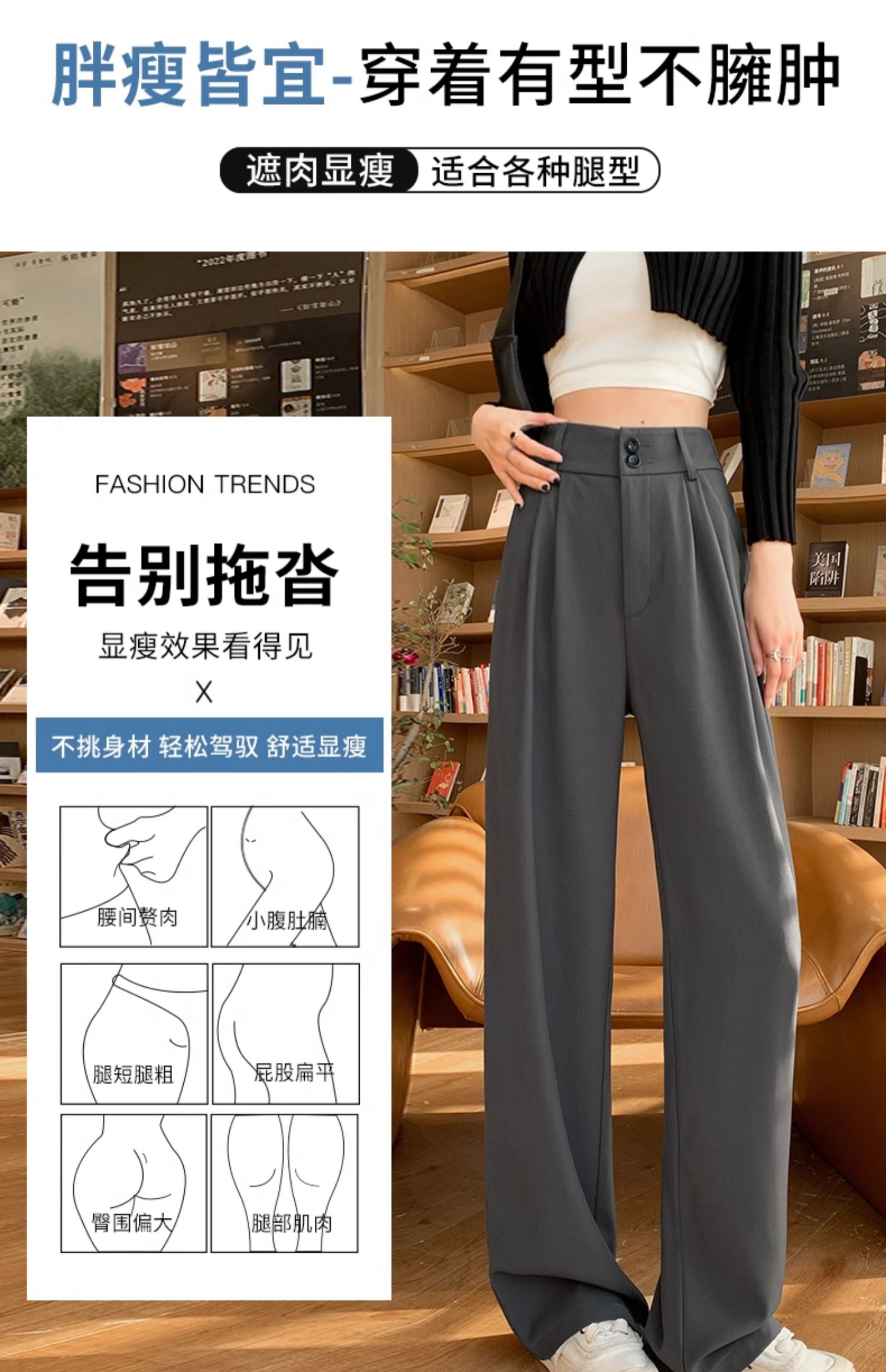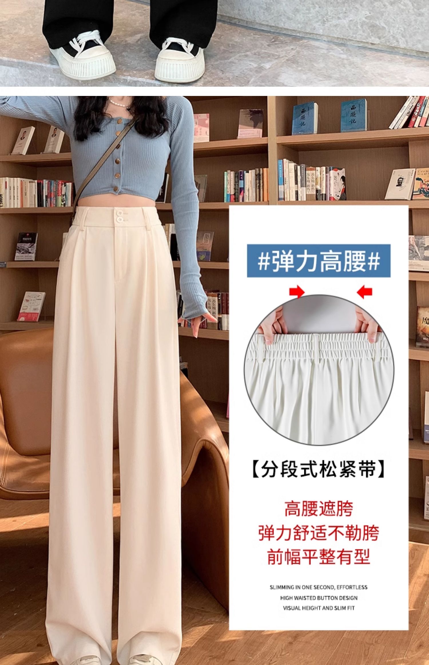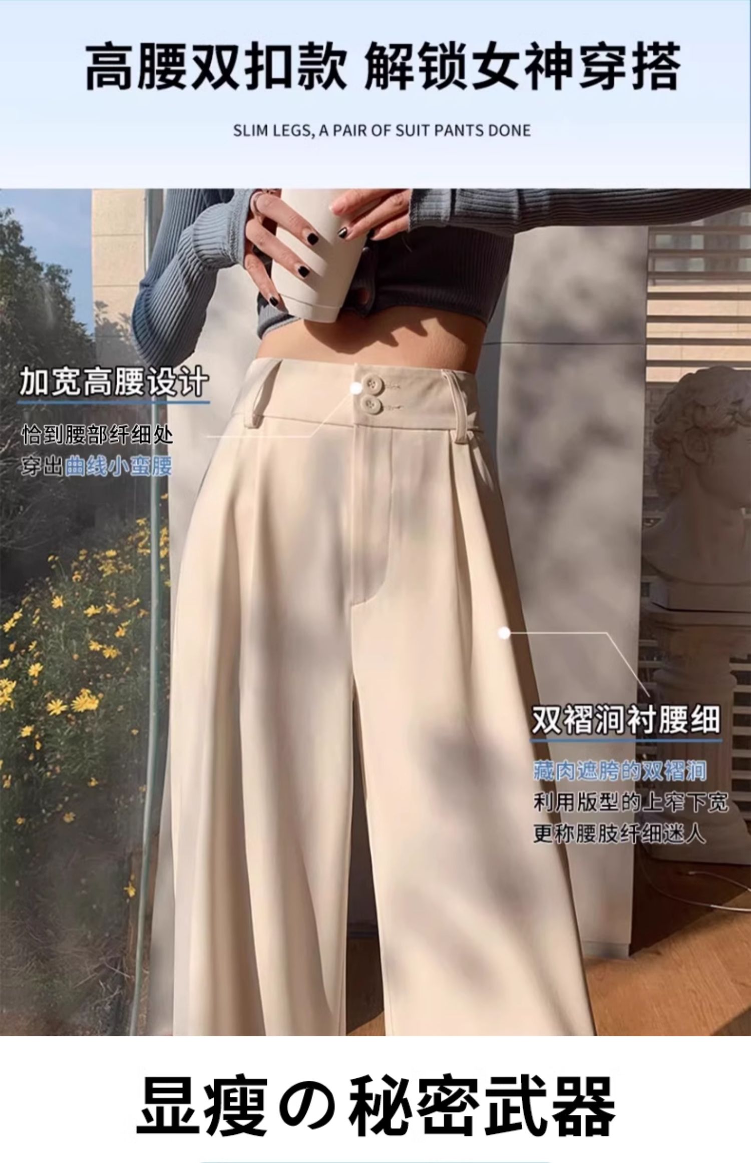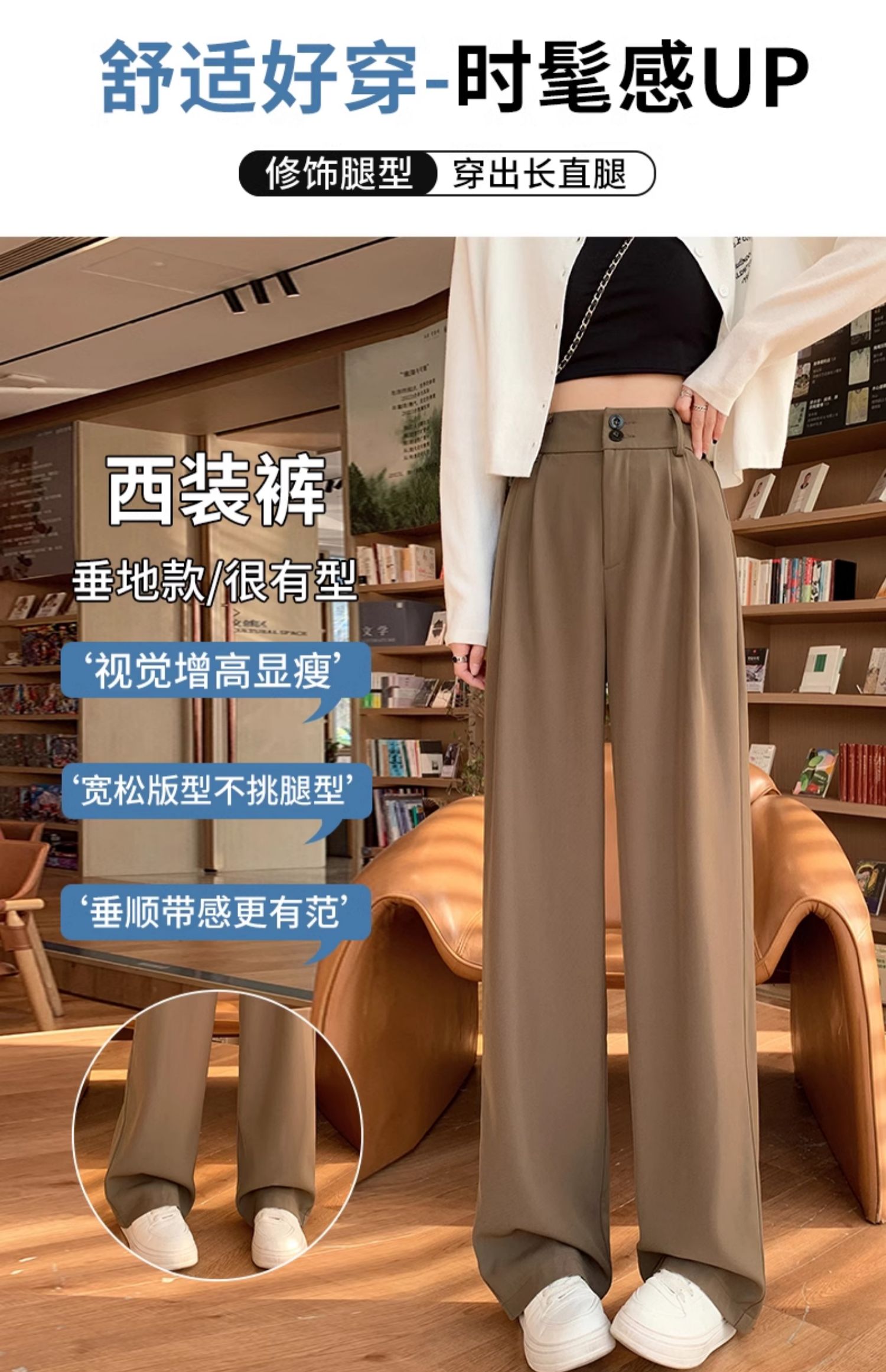 西裝褲女2025新款春秋薄款垂順質感風休閒直筒褲白色濶腿褲子夏季