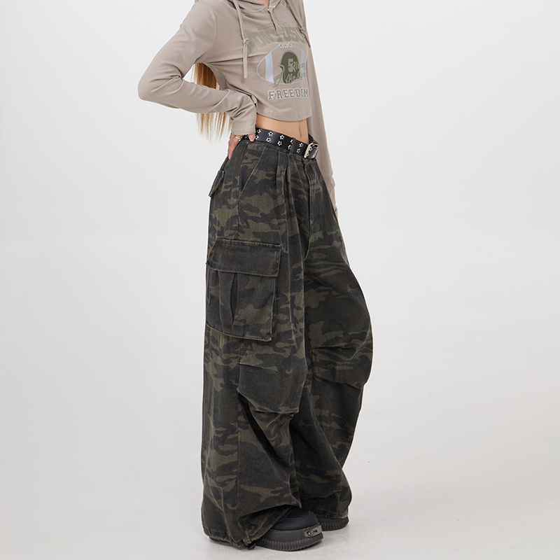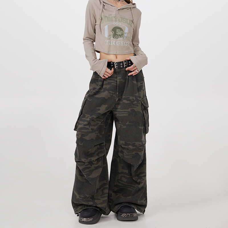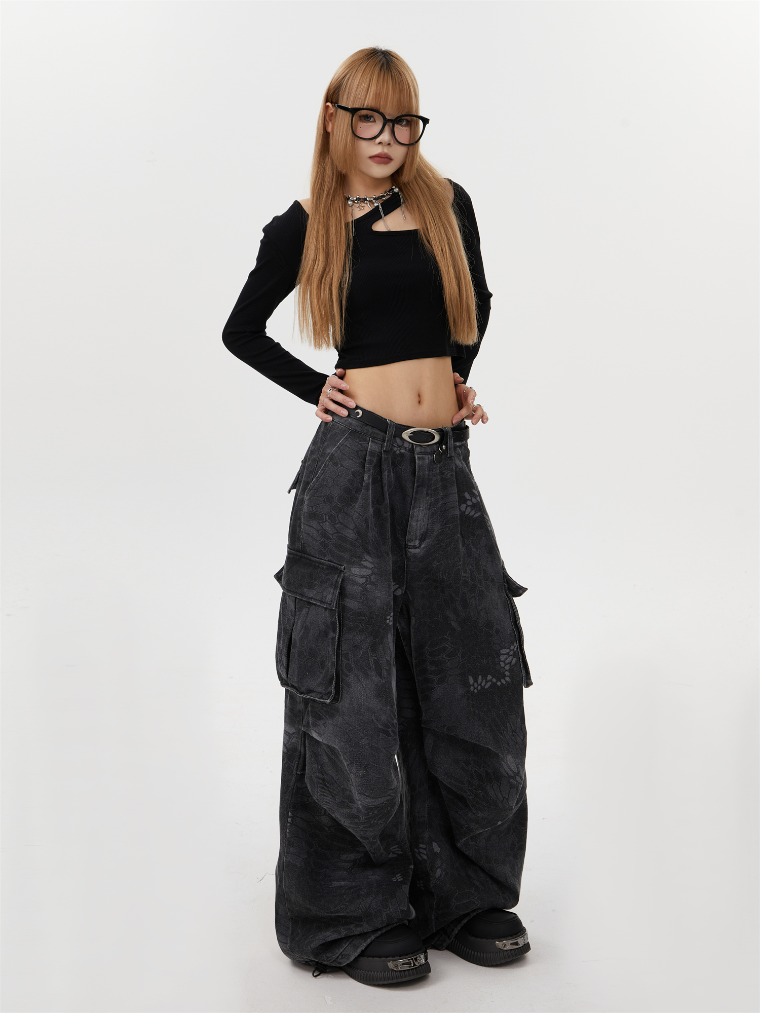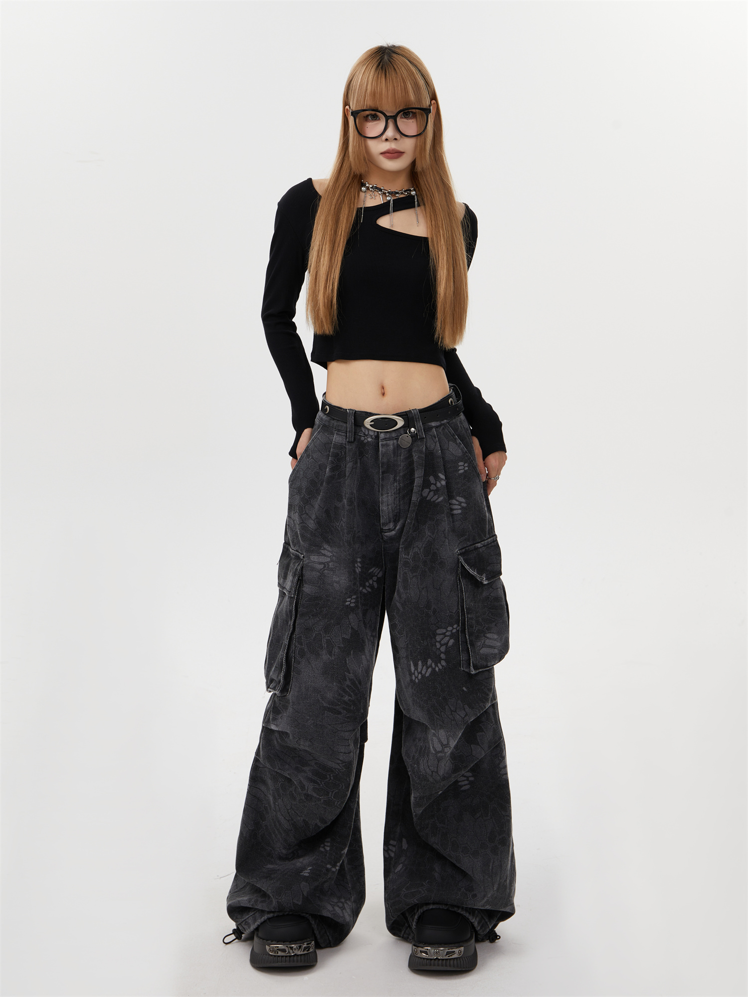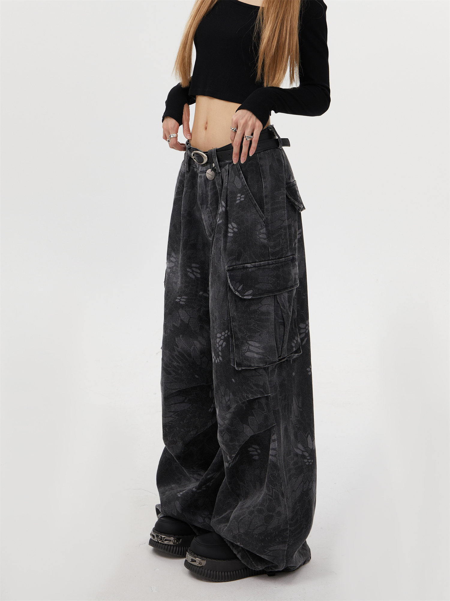 Remedie美式復古迷彩蛇紋工裝褲高街直筒濶腿褲子hiphop休閒長褲