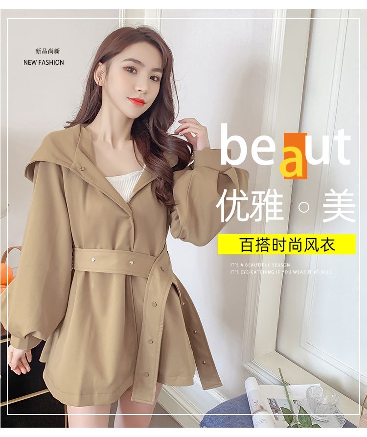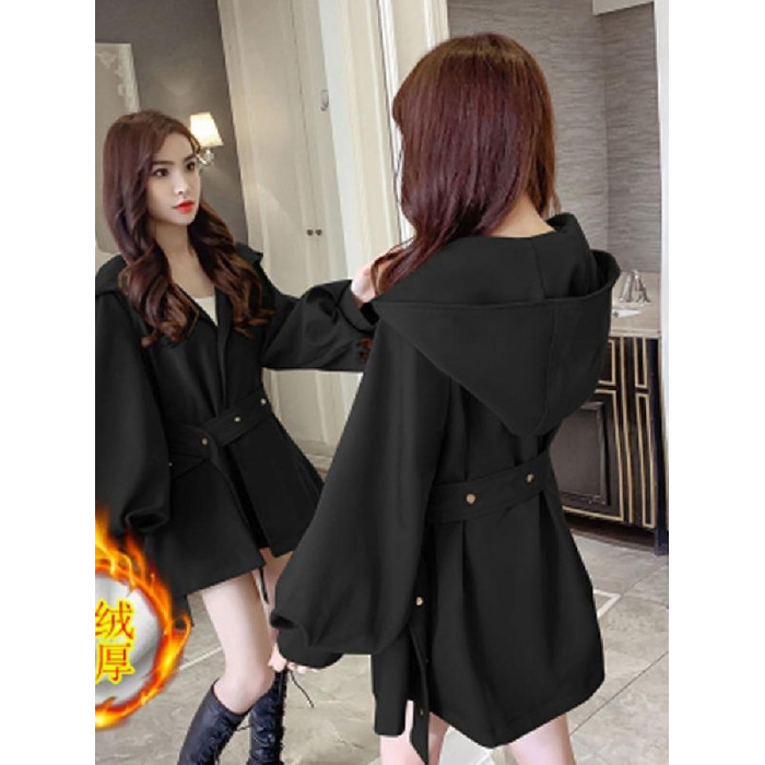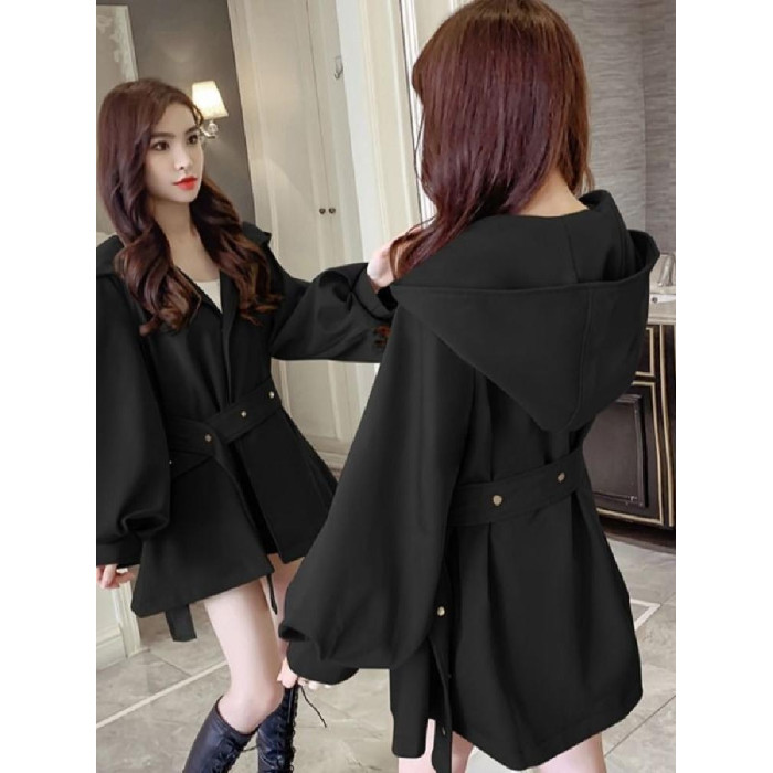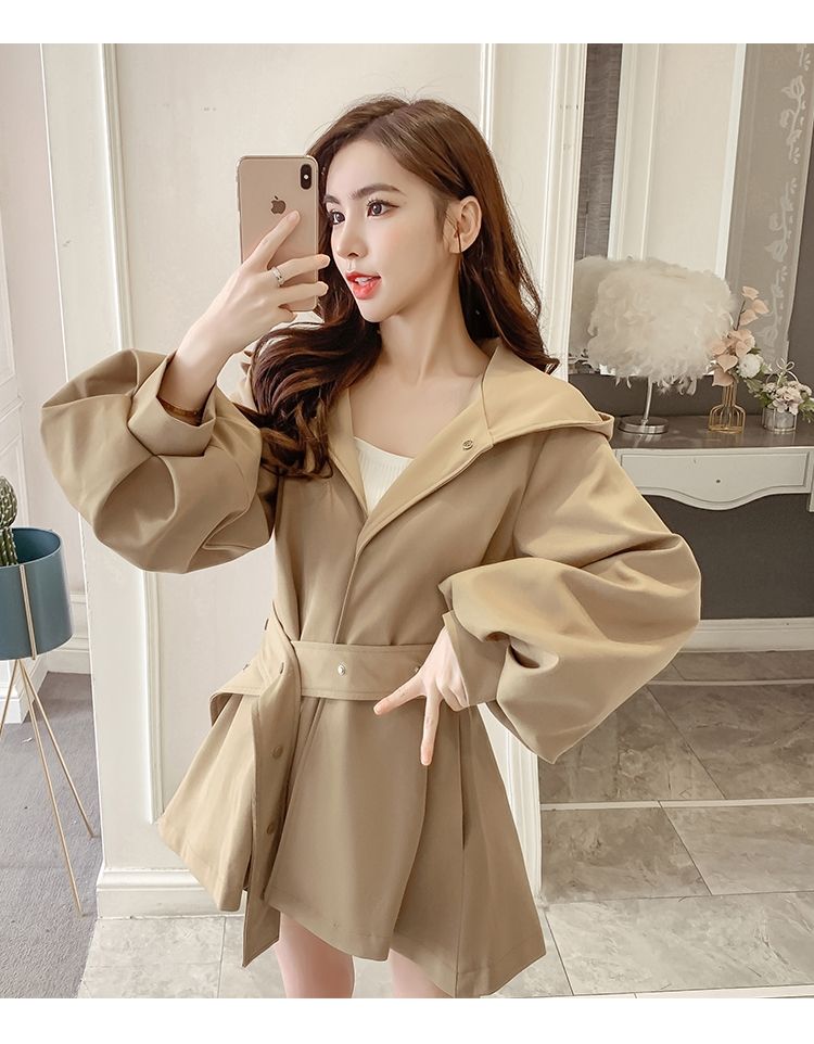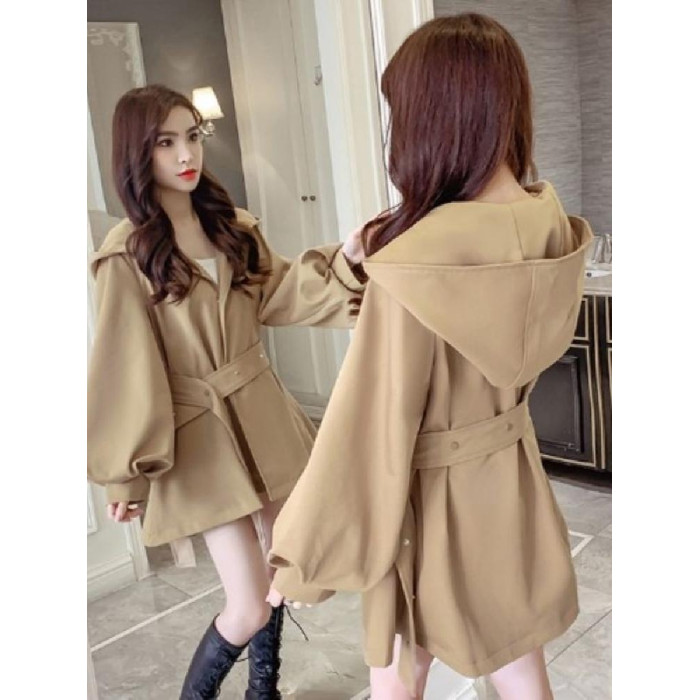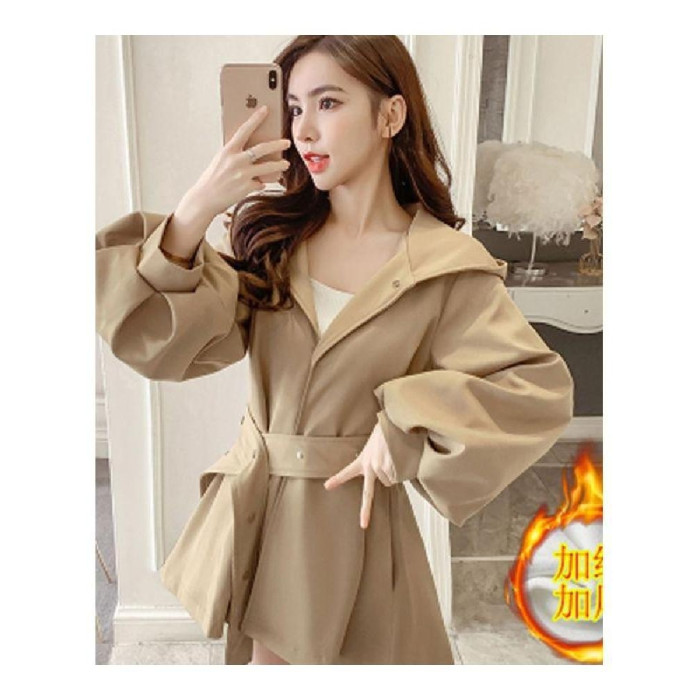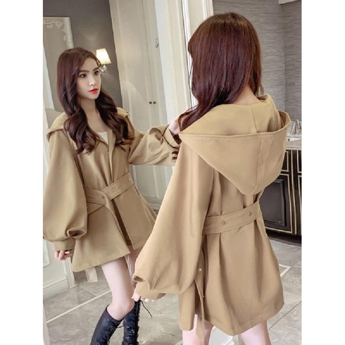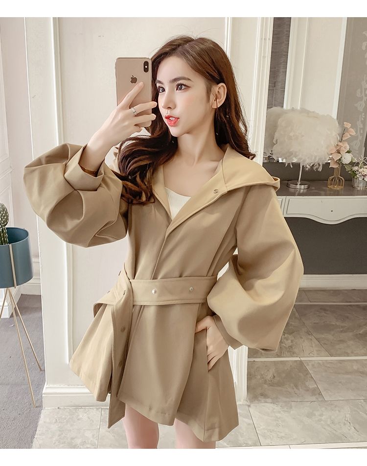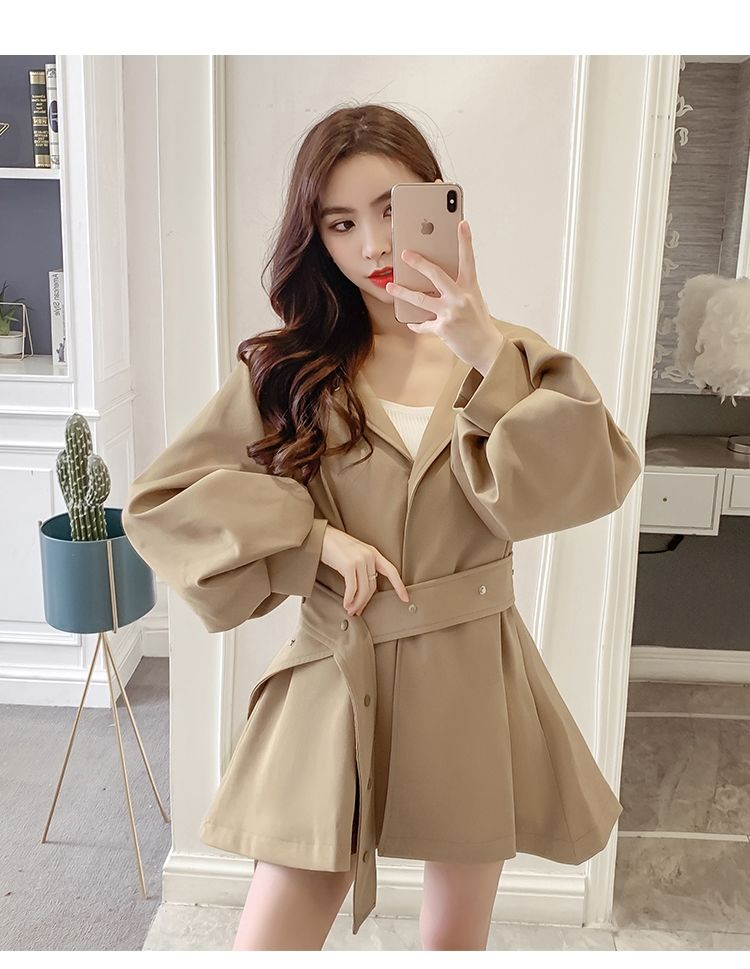 秋冬薄款新款時尚百搭赫本風燈籠袖外套女小個子中長款風衣大衣潮