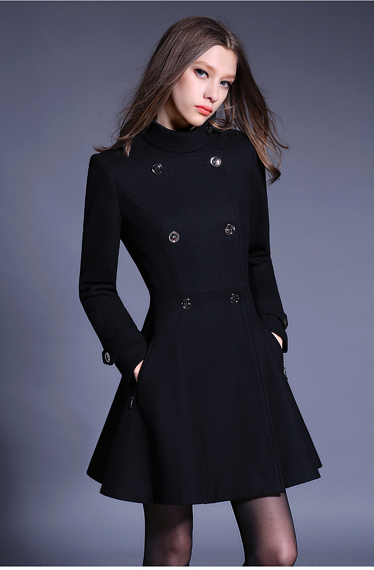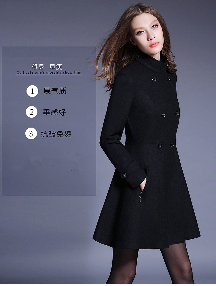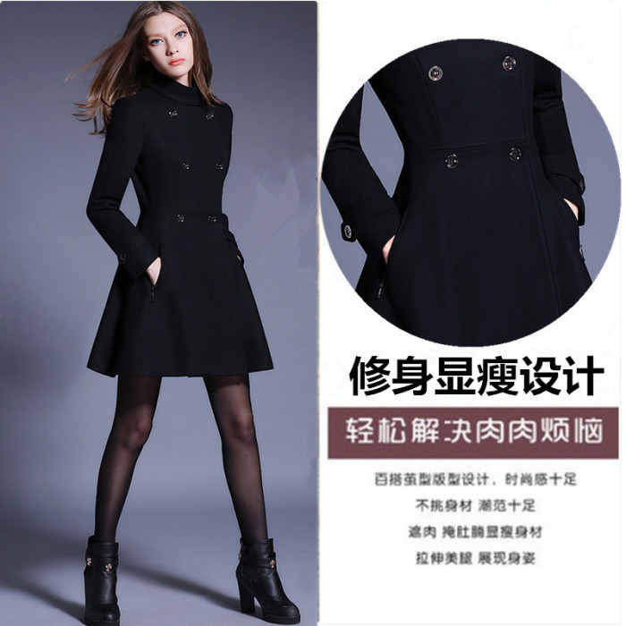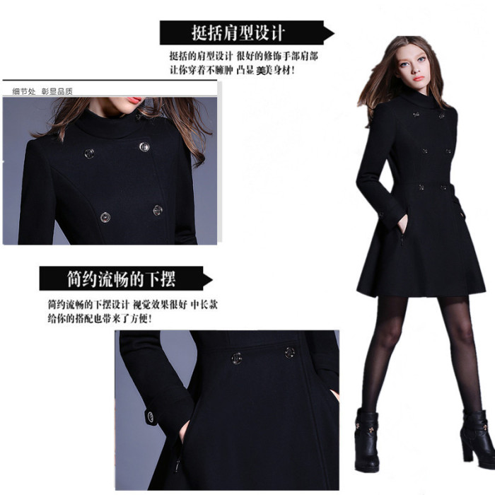 小個子風衣女2025年新款休閒春秋修身收腰黑色中長款呢子毛呢外套