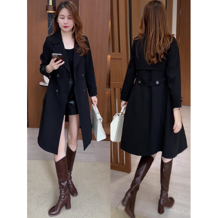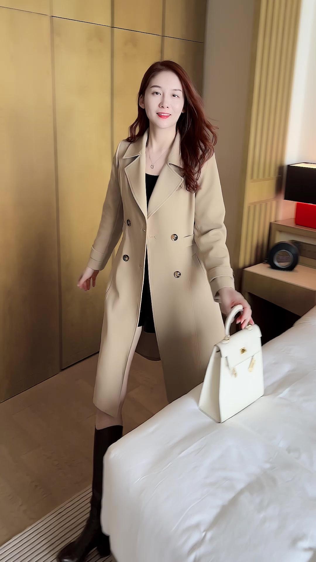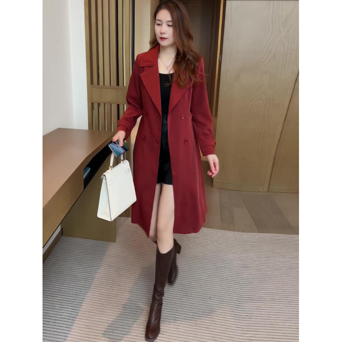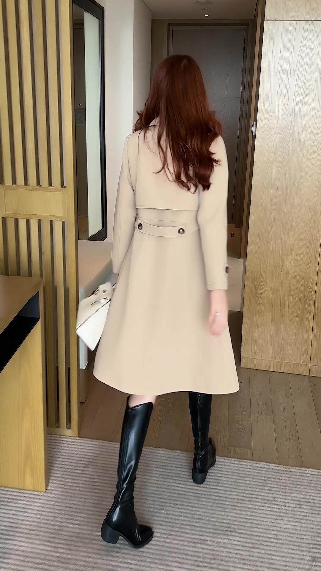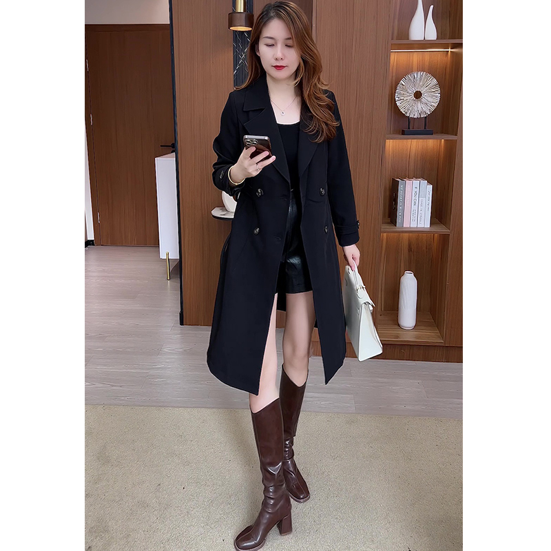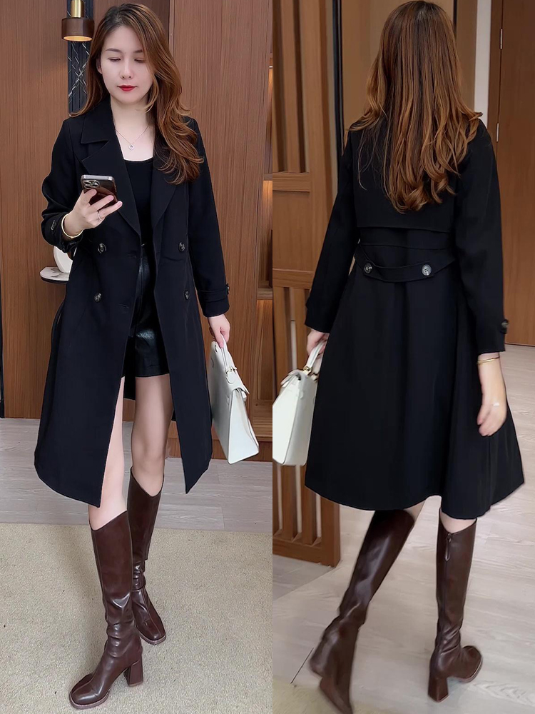 風衣外套女中長款2025秋冬新款時尚氣質顯瘦雙排釦西裝領流行大衣