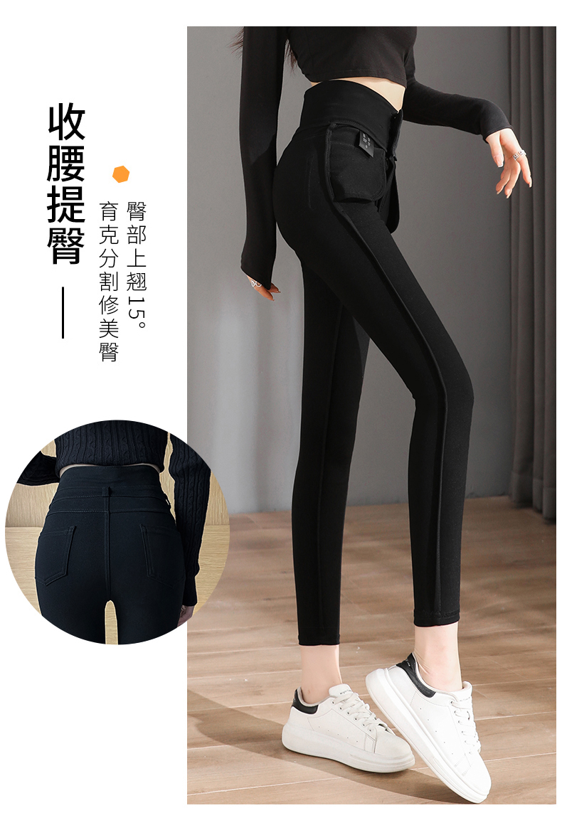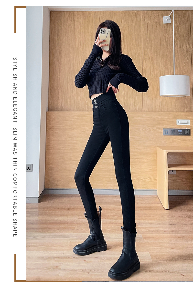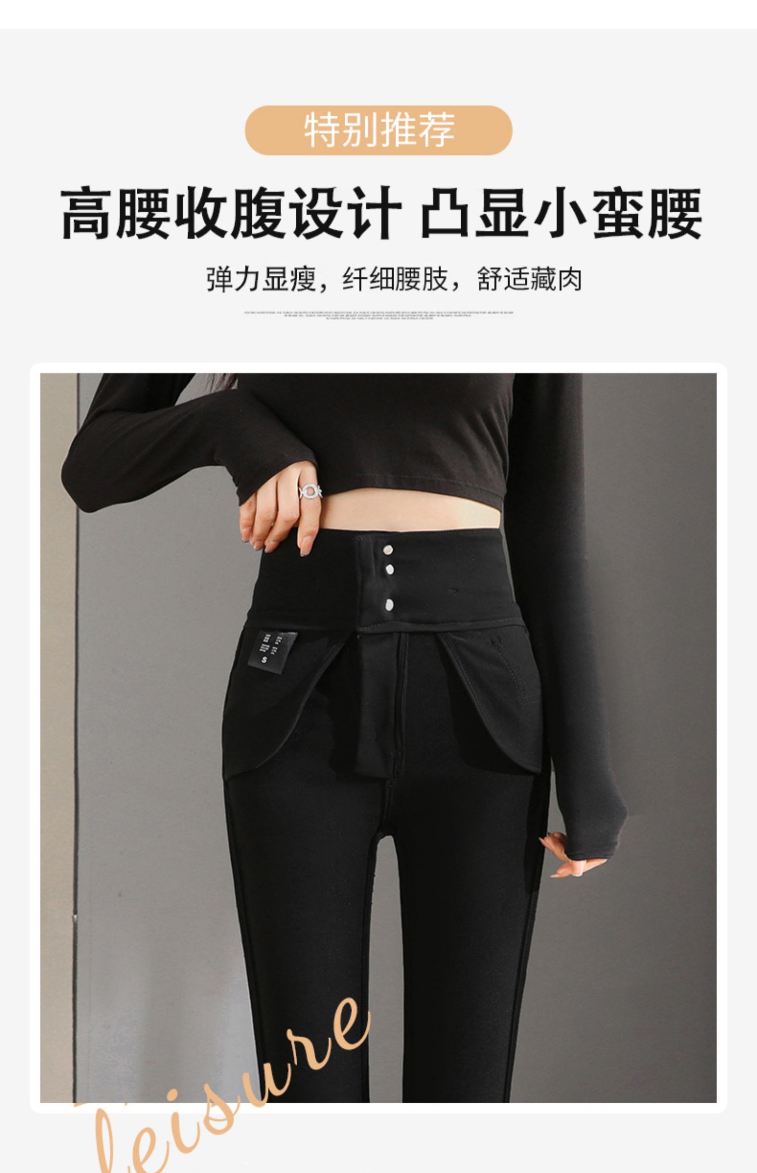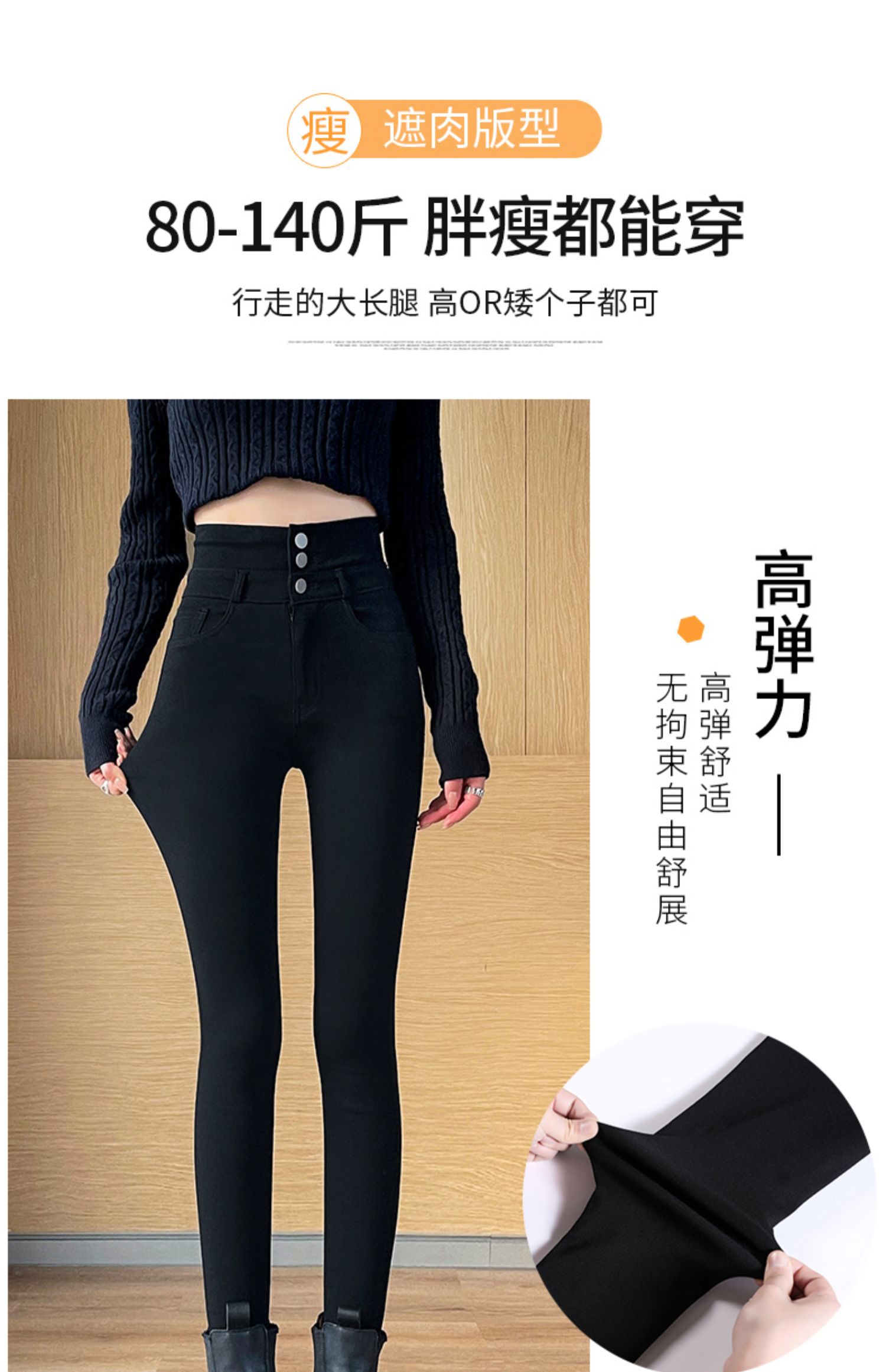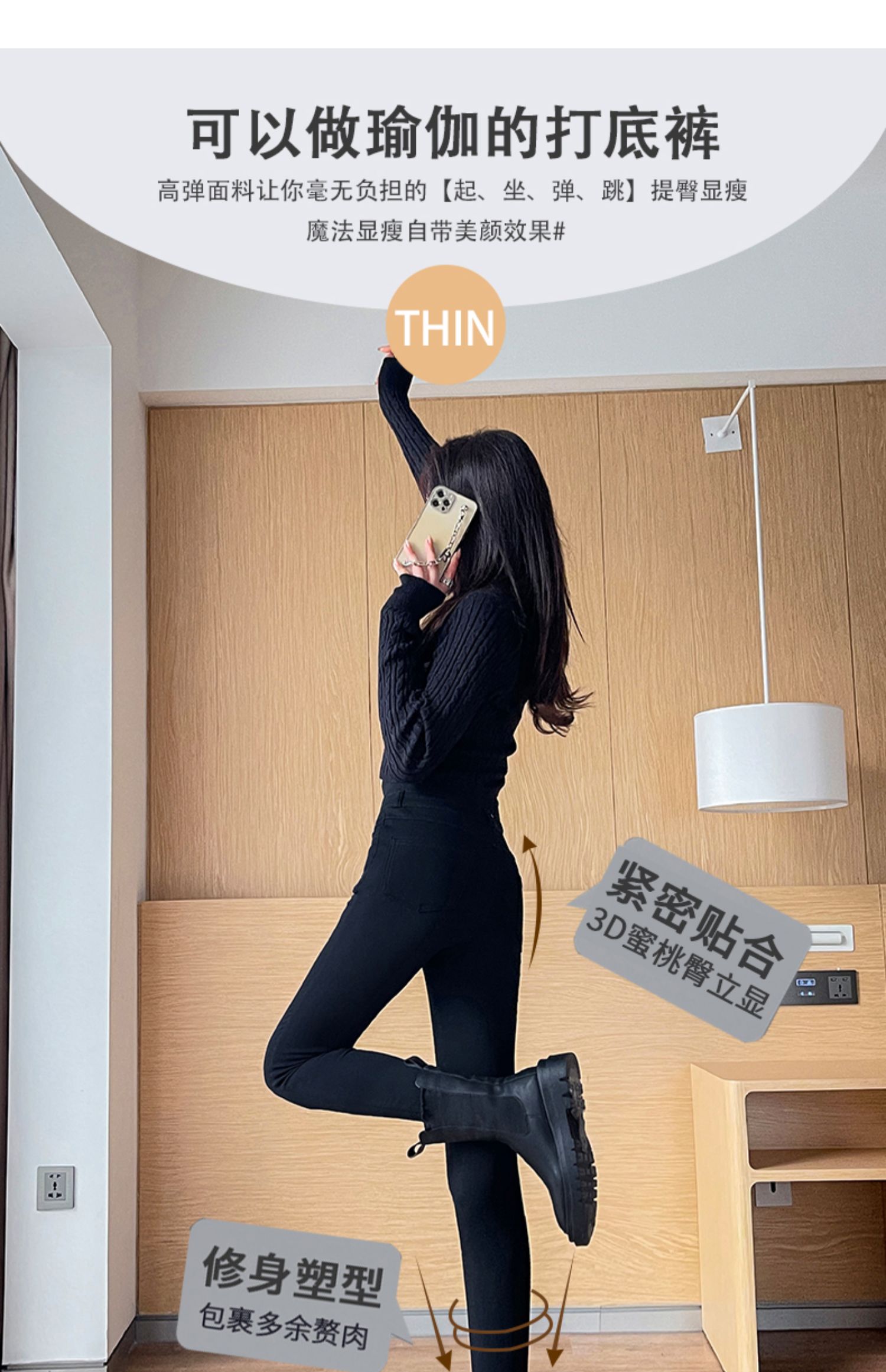 黑色打底褲女外穿春秋冬加絨2025新款高腰緊身鉛筆魔術小腳黑褲子