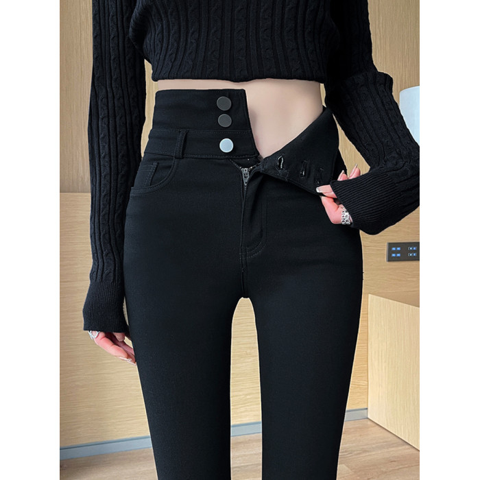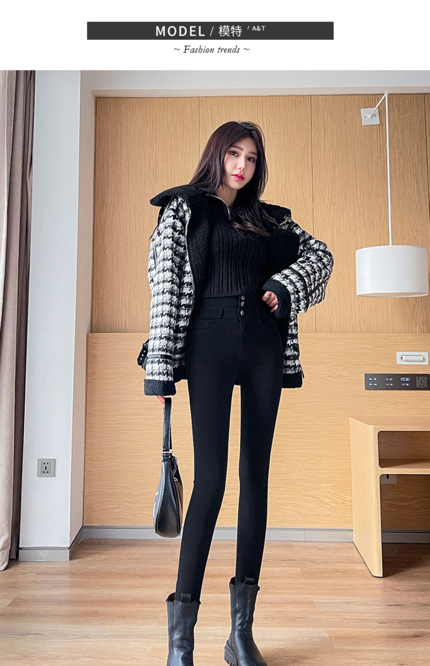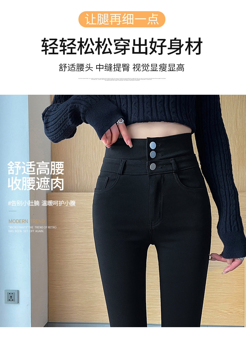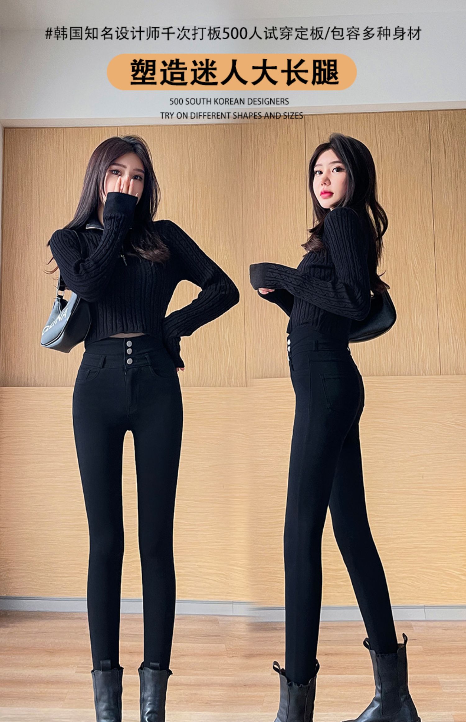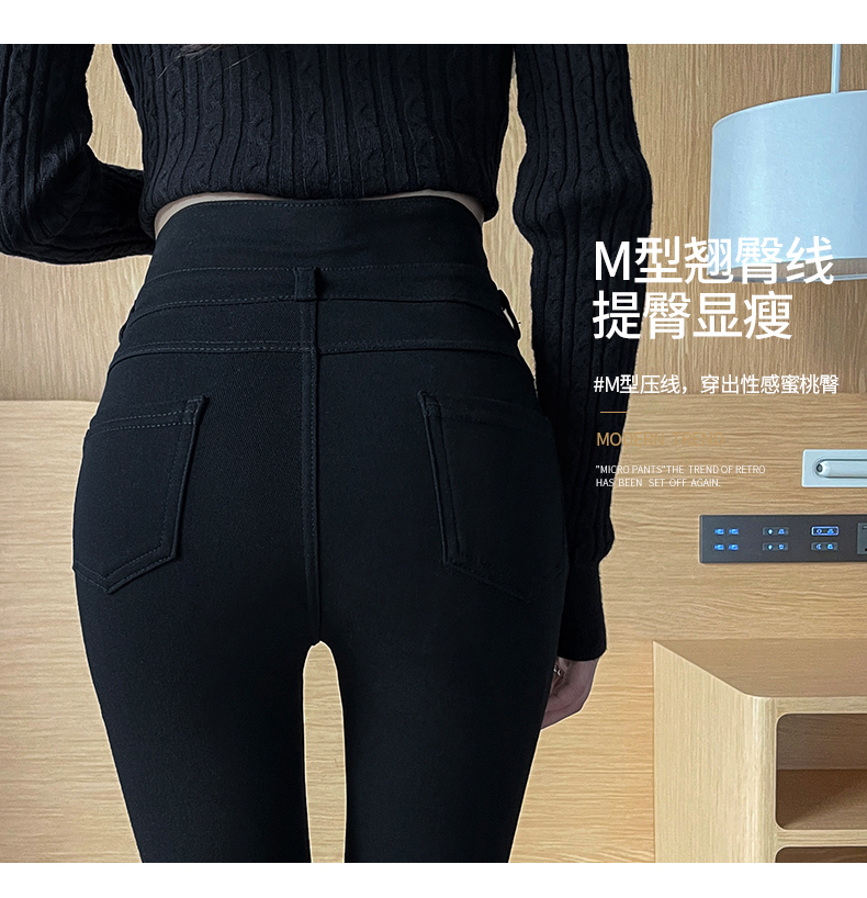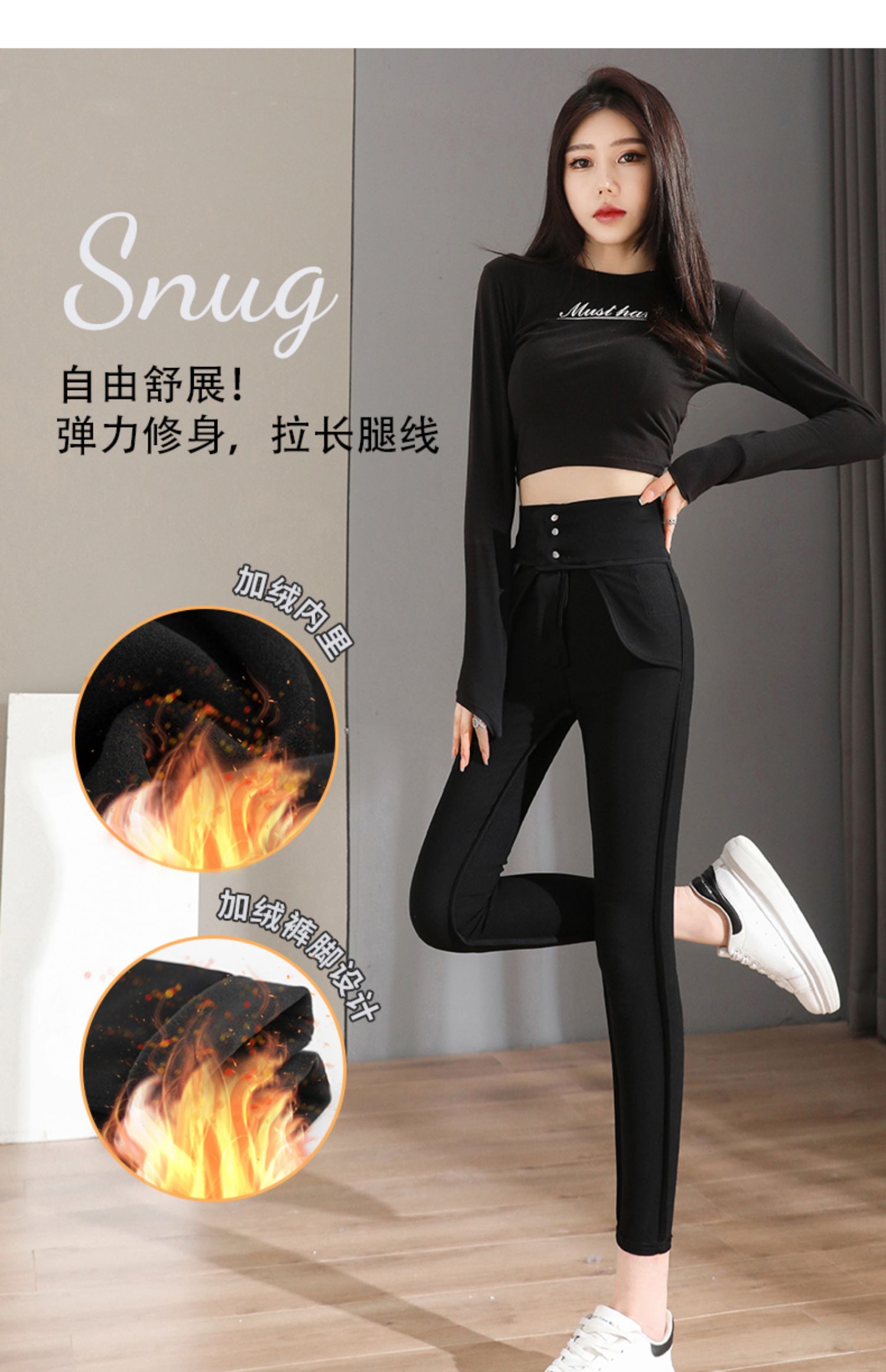 黑色打底褲女外穿春秋冬加絨2025新款高腰緊身鉛筆魔術小腳黑褲子