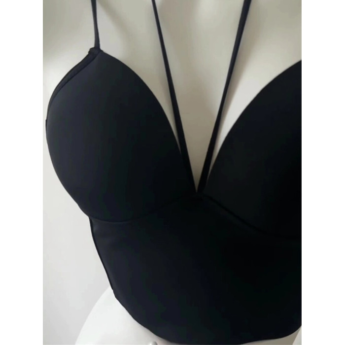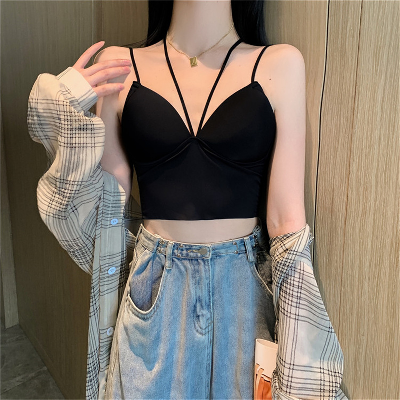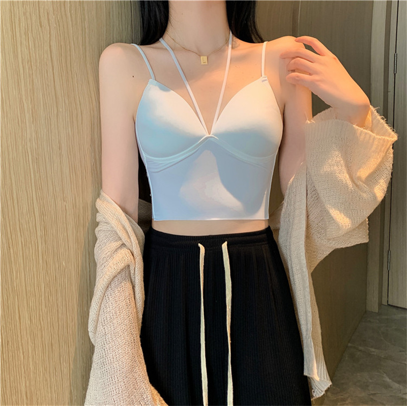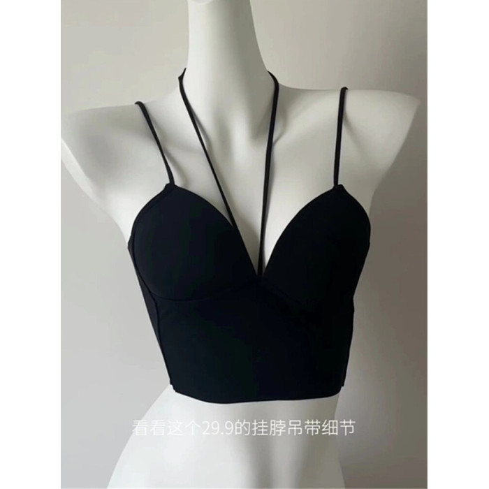 設計感小衆辣妹穿搭掛脖帶胸墊吊帶背心女內搭打底美背文胸一體式