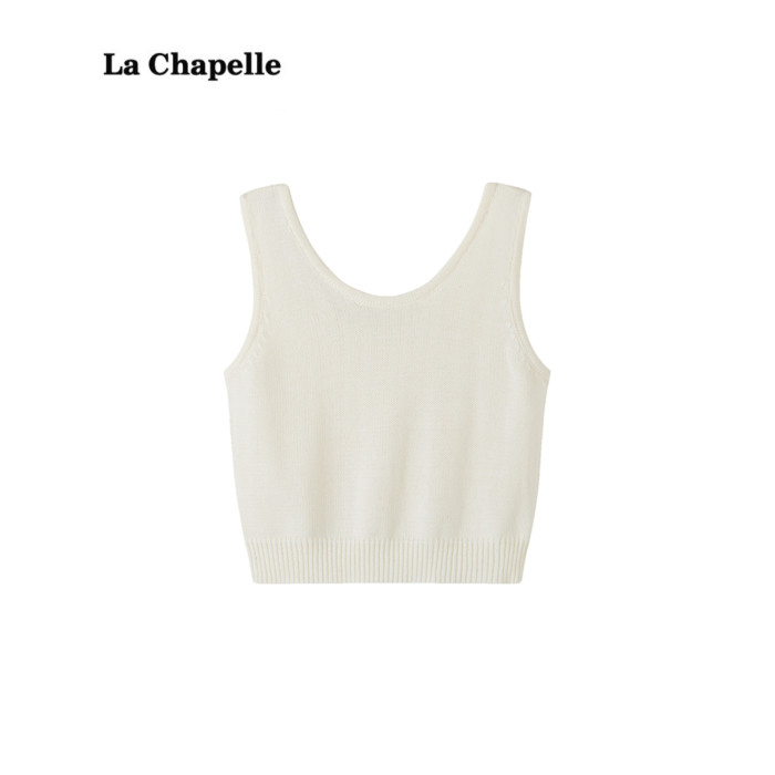 拉夏貝爾/La Chapelle圓領吊帶背心女秋季新款內搭無袖針織上衣