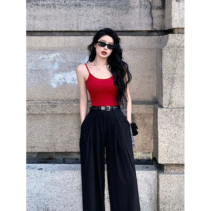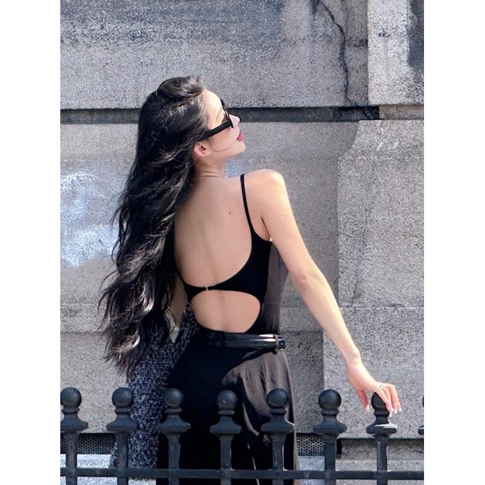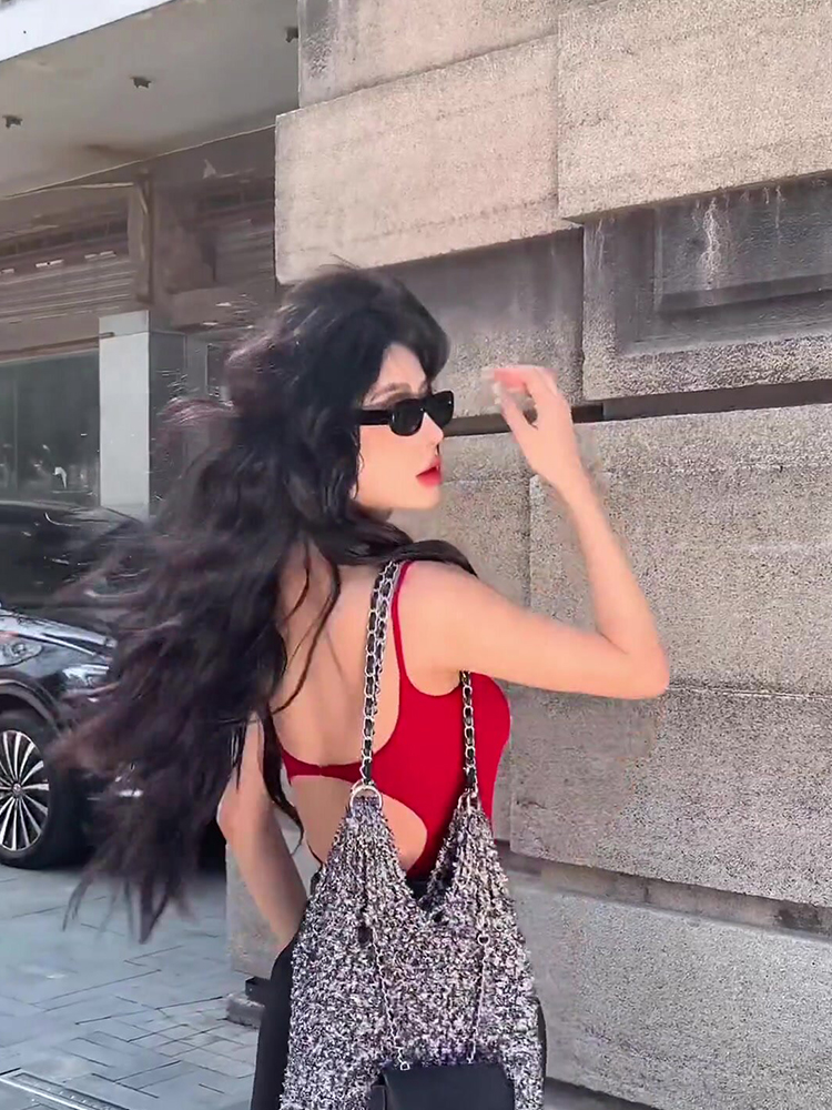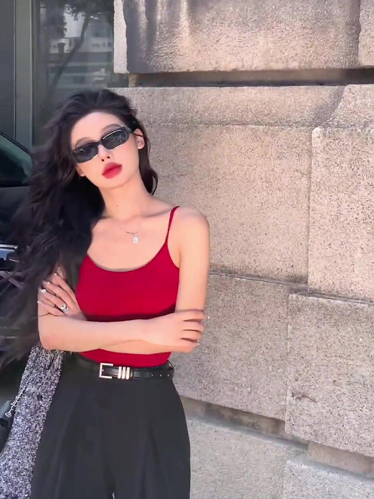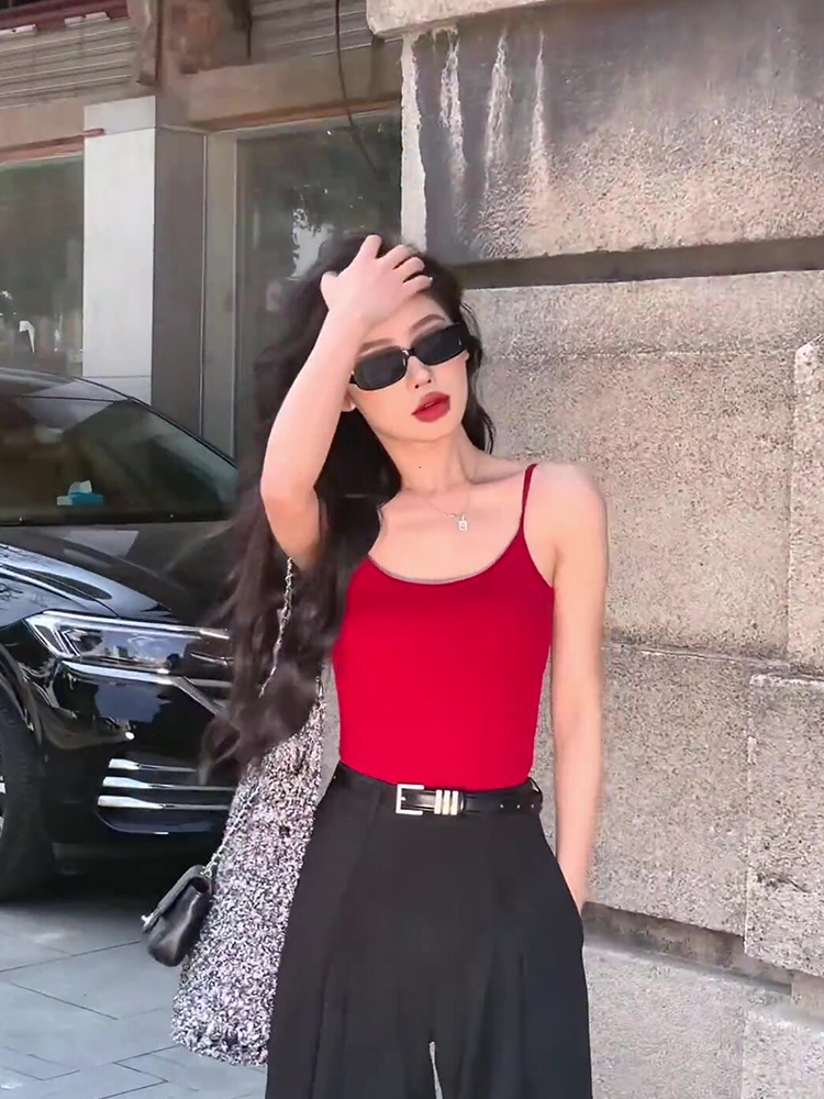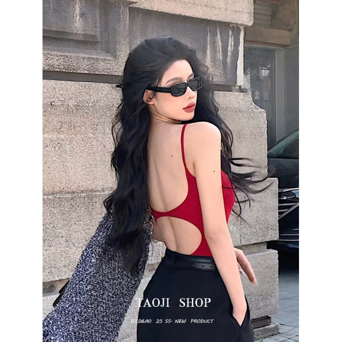 紅色露背連體吊帶背心女夏季新款帶胸墊內搭外穿海邊辣妹美背上衣