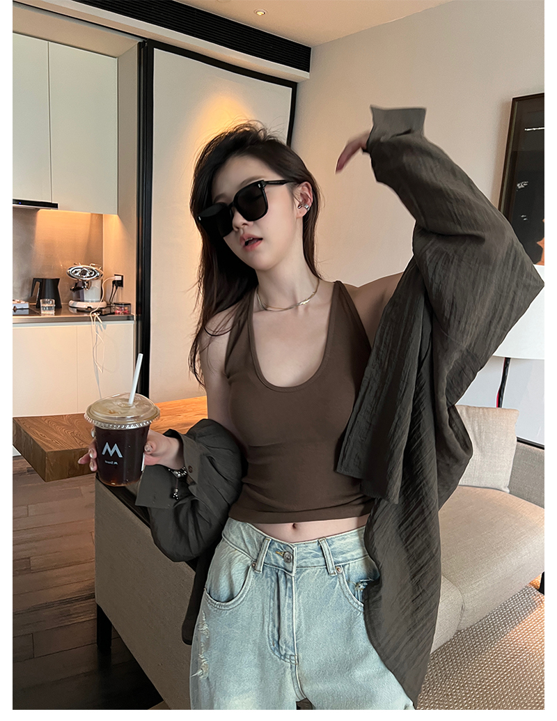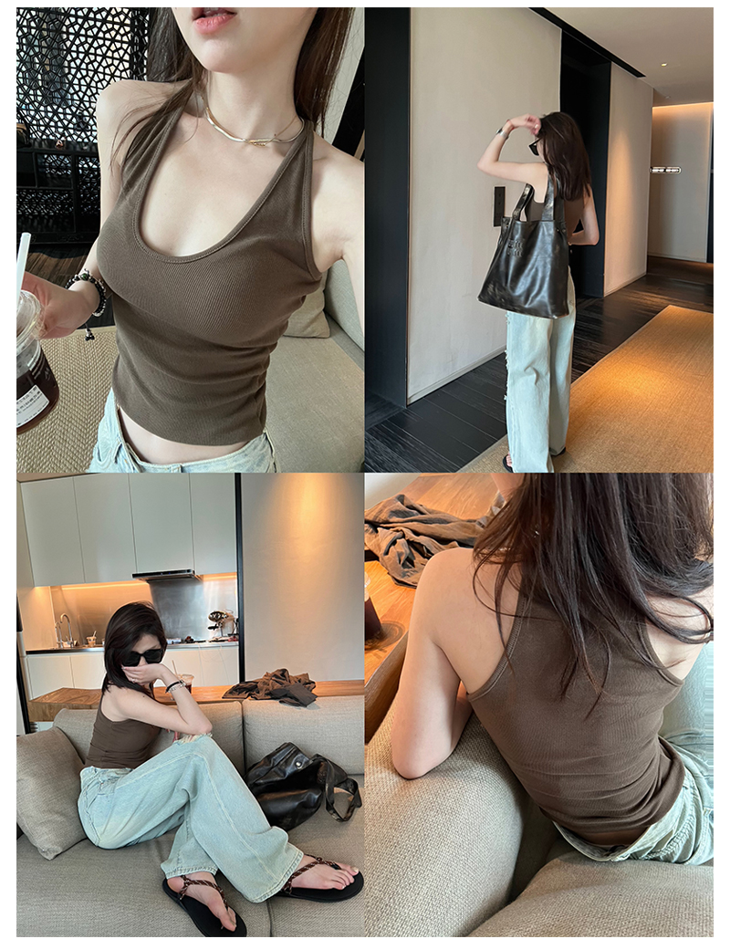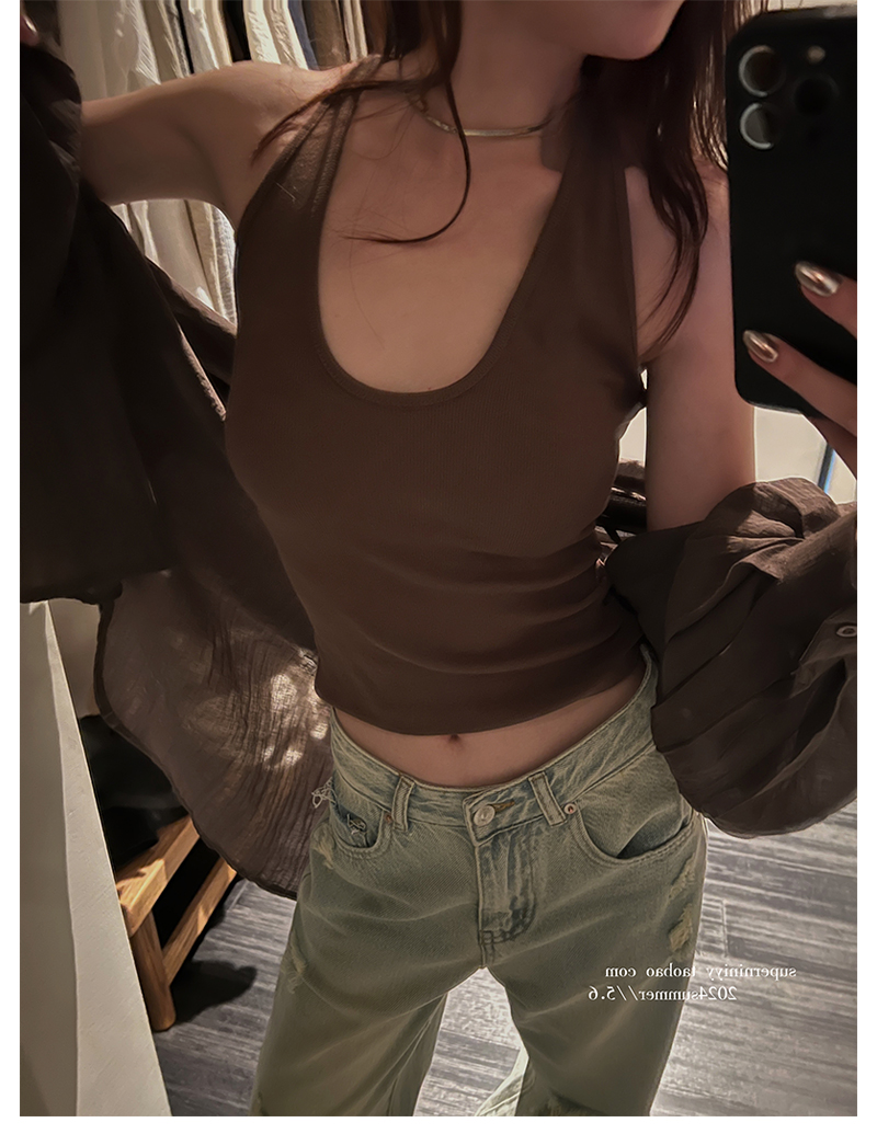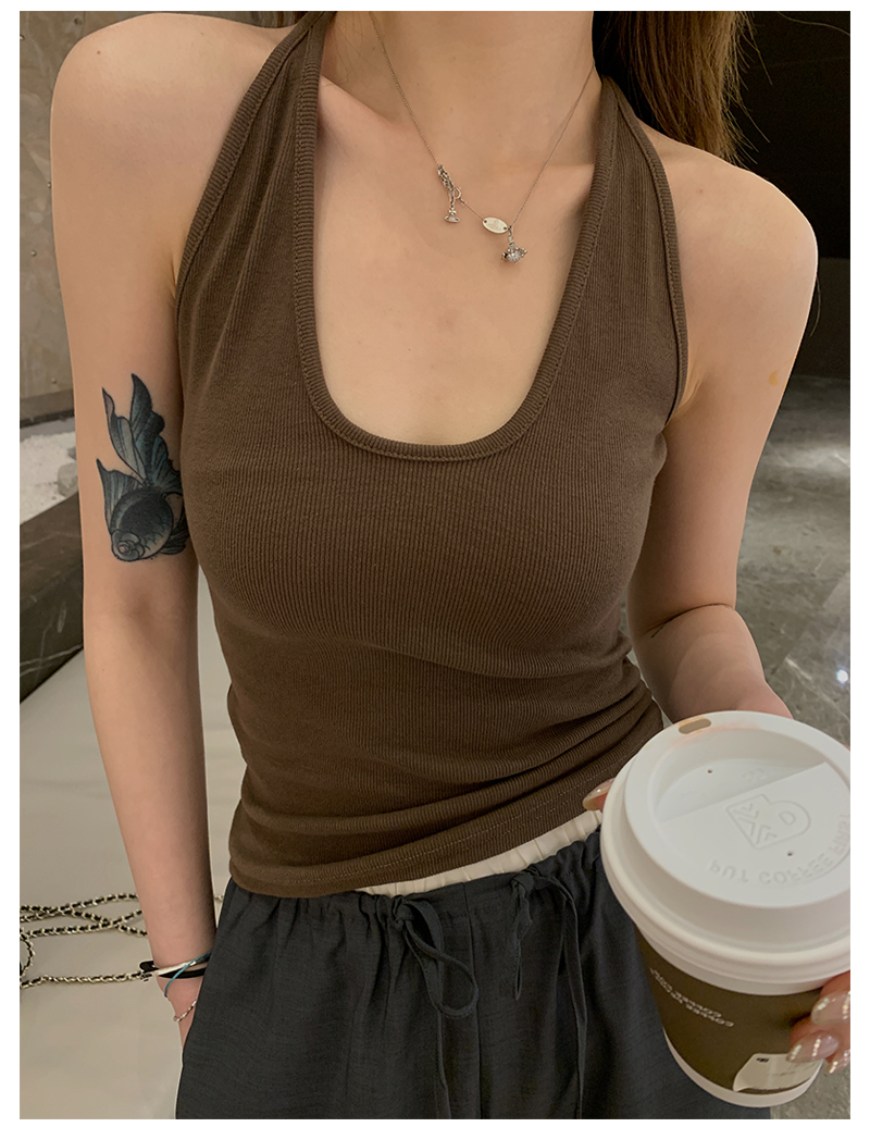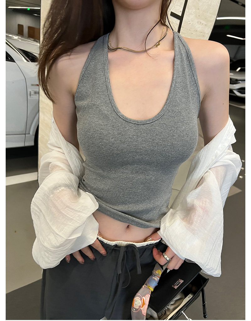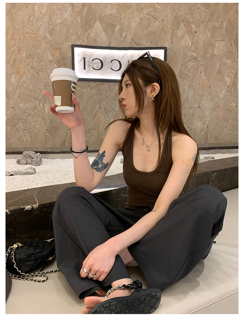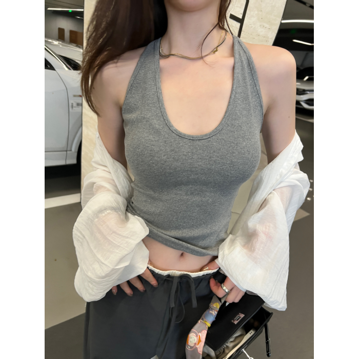 港式辣妹U領掛脖吊帶小背心女外穿夏季修身內搭氣質短款無袖上衣
