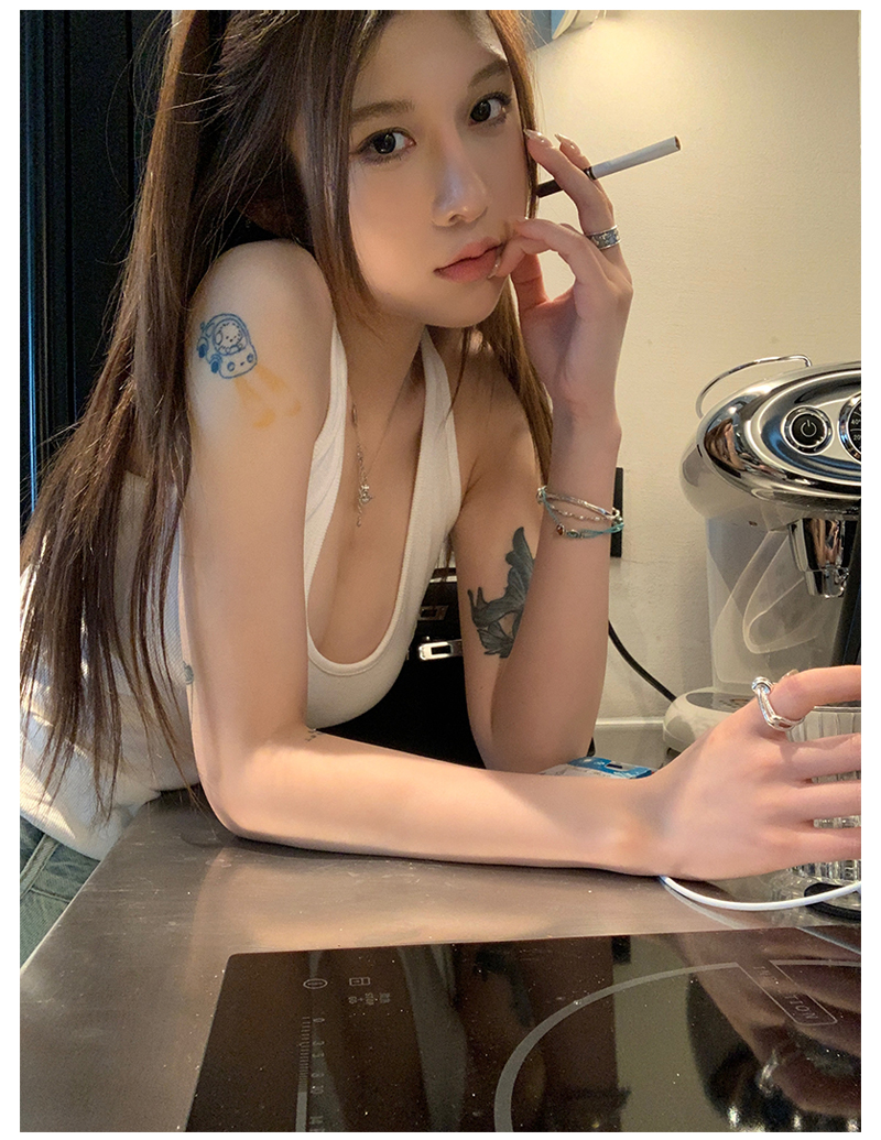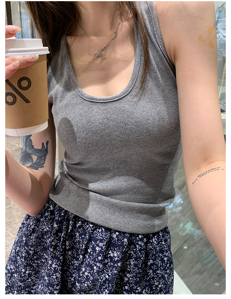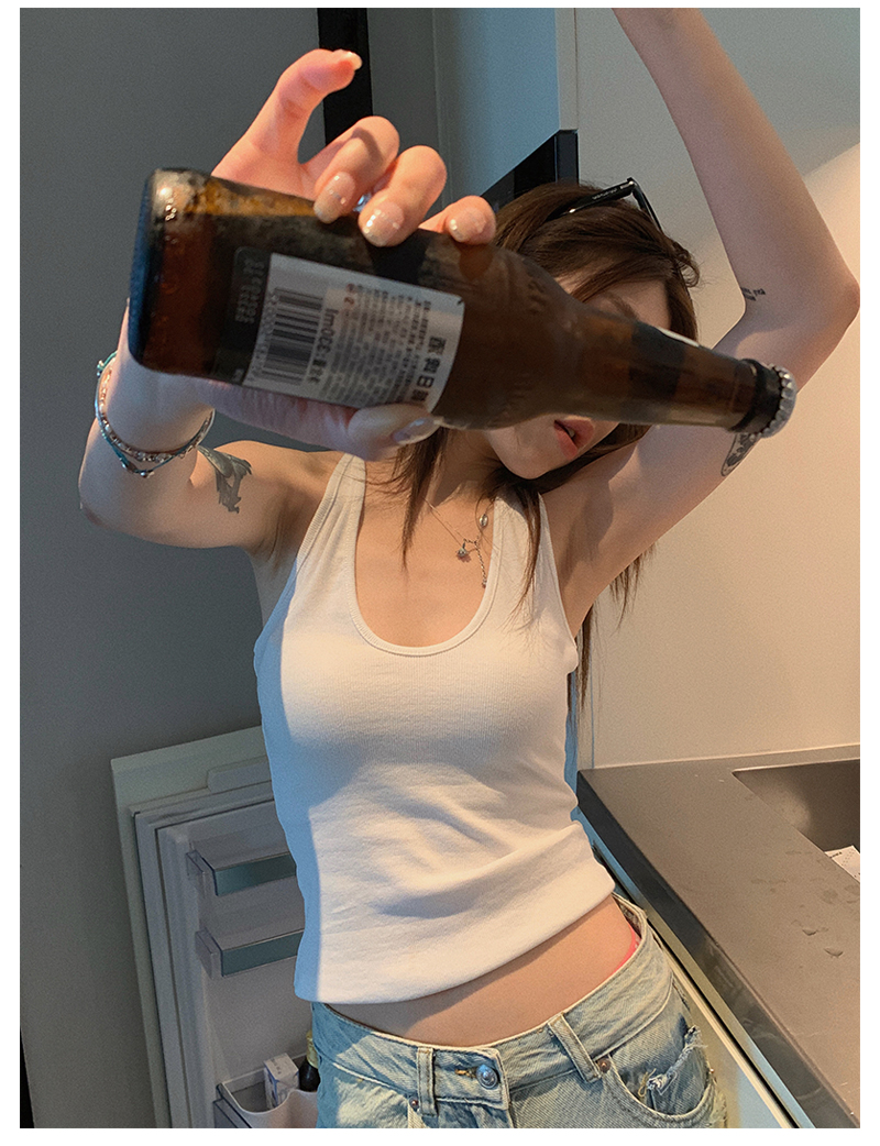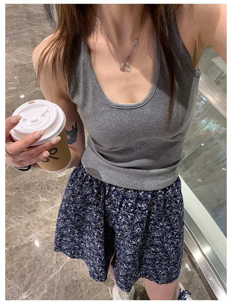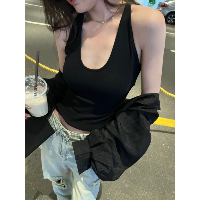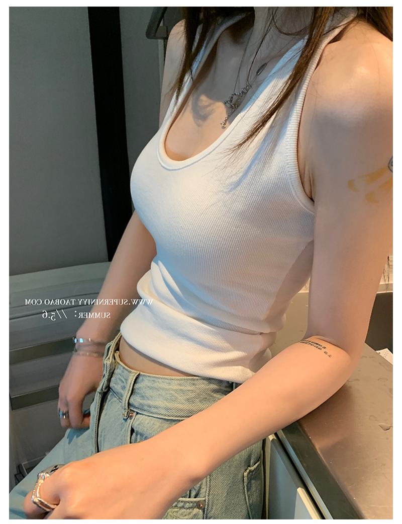 港式辣妹U領掛脖吊帶小背心女外穿夏季修身內搭氣質短款無袖上衣
