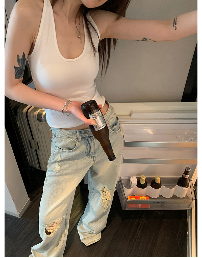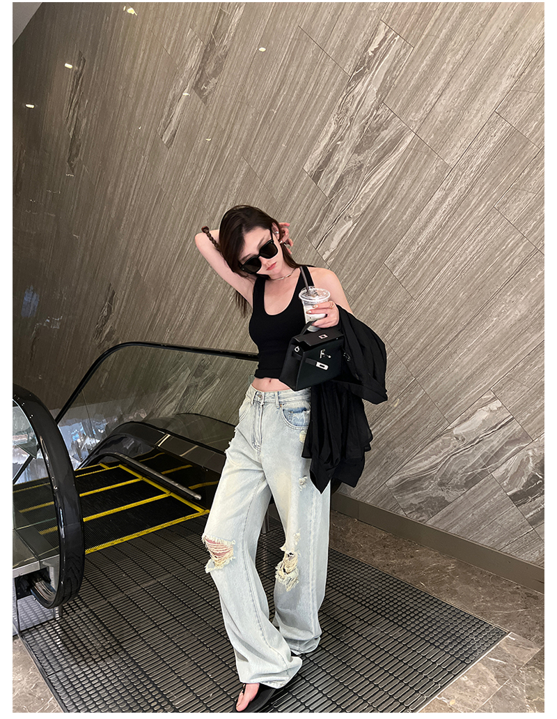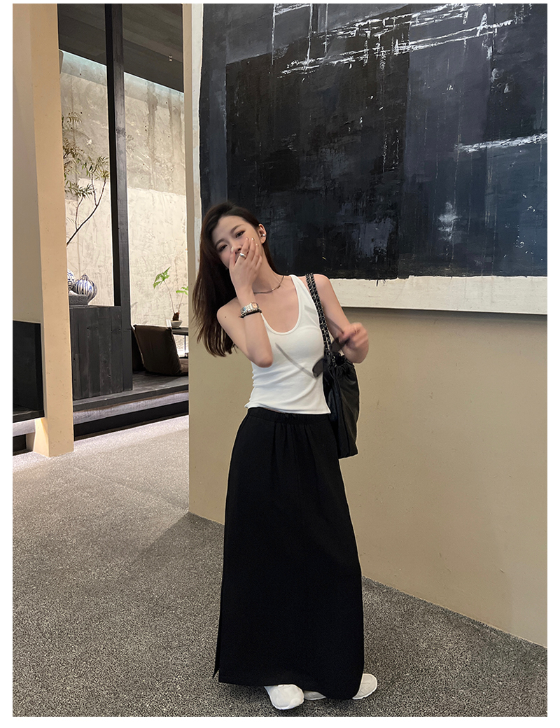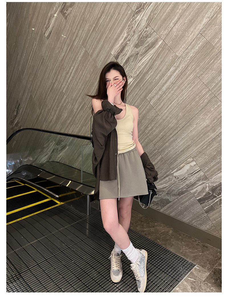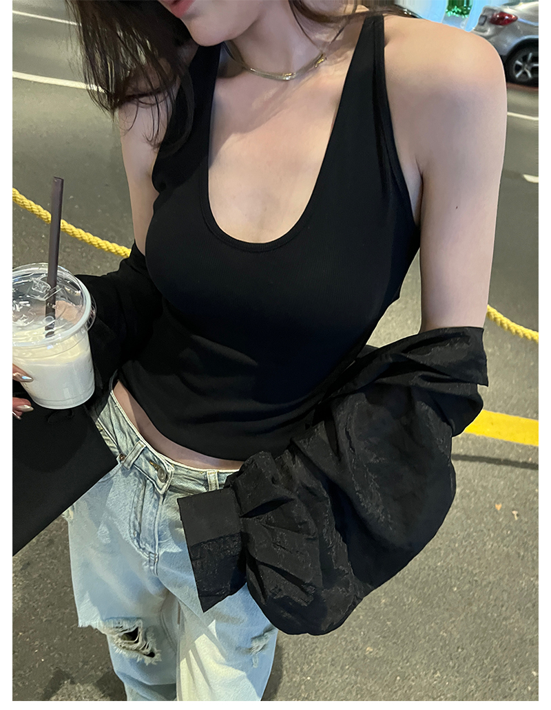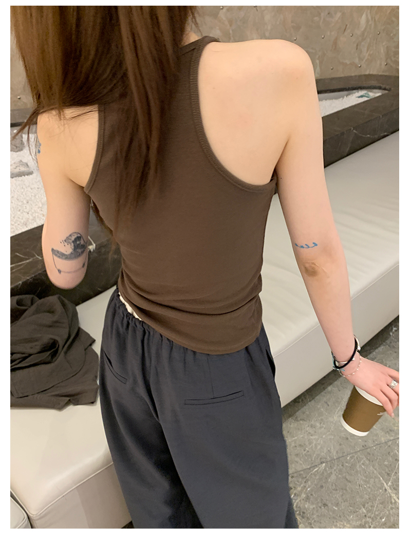 港式辣妹U領掛脖吊帶小背心女外穿夏季修身內搭氣質短款無袖上衣