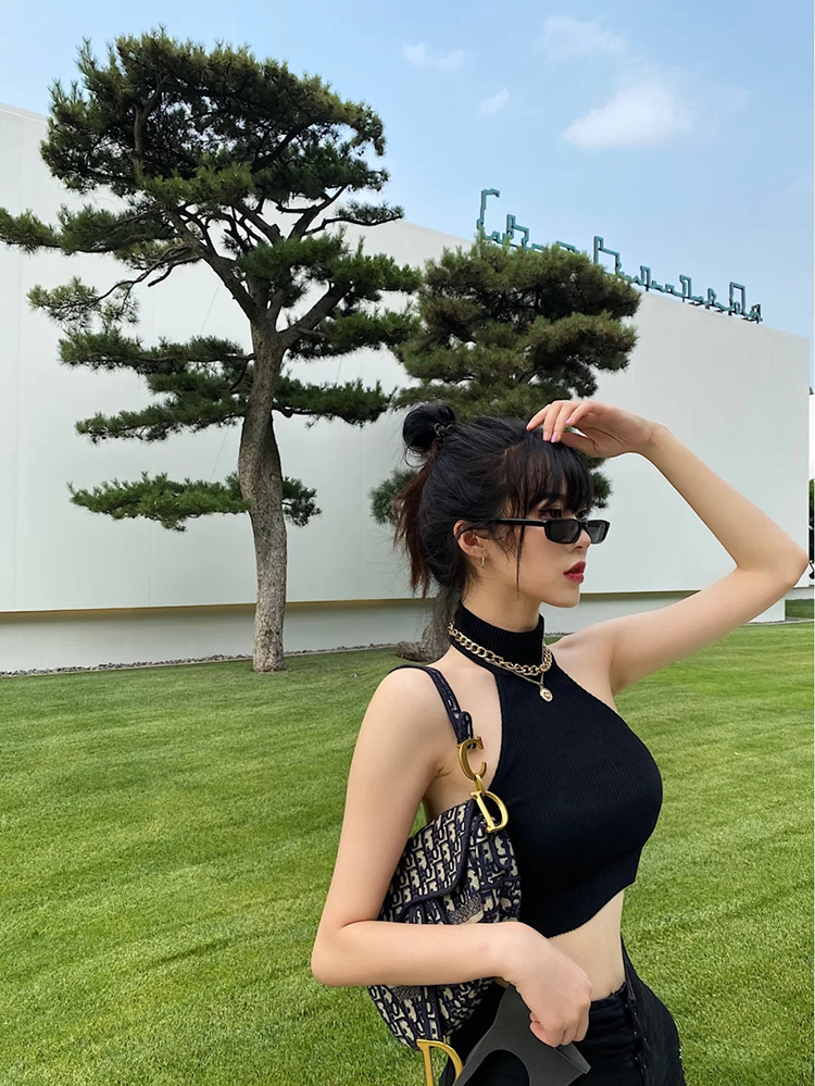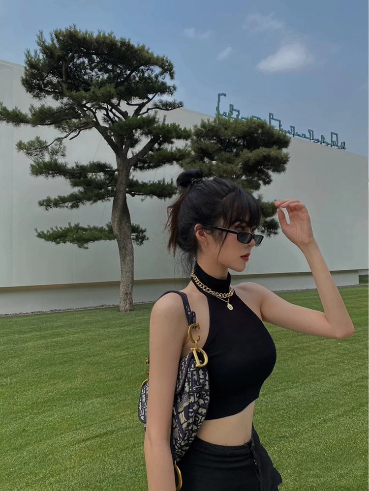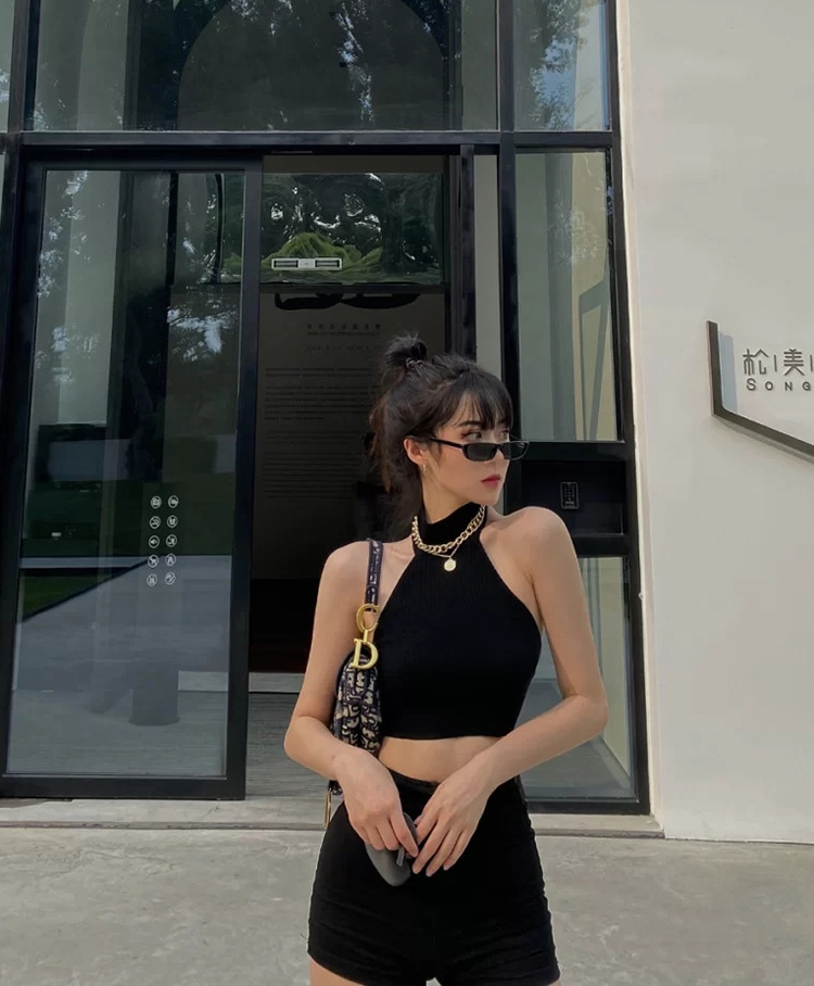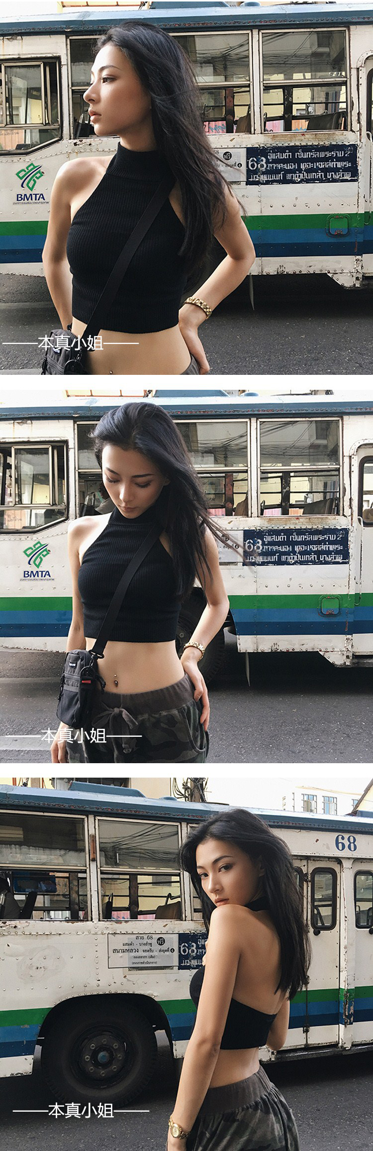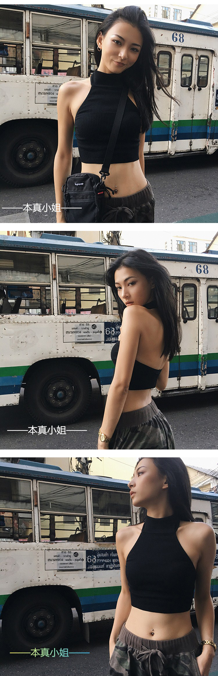 ins超火性感露肩掛脖吊帶背心女夏 歐美街拍顯瘦短款露臍打底上衣