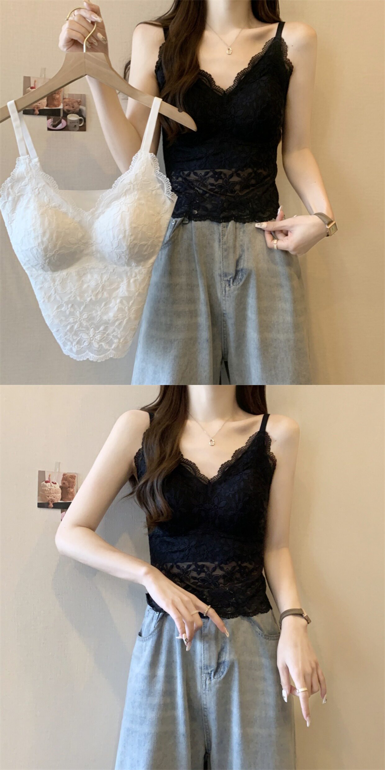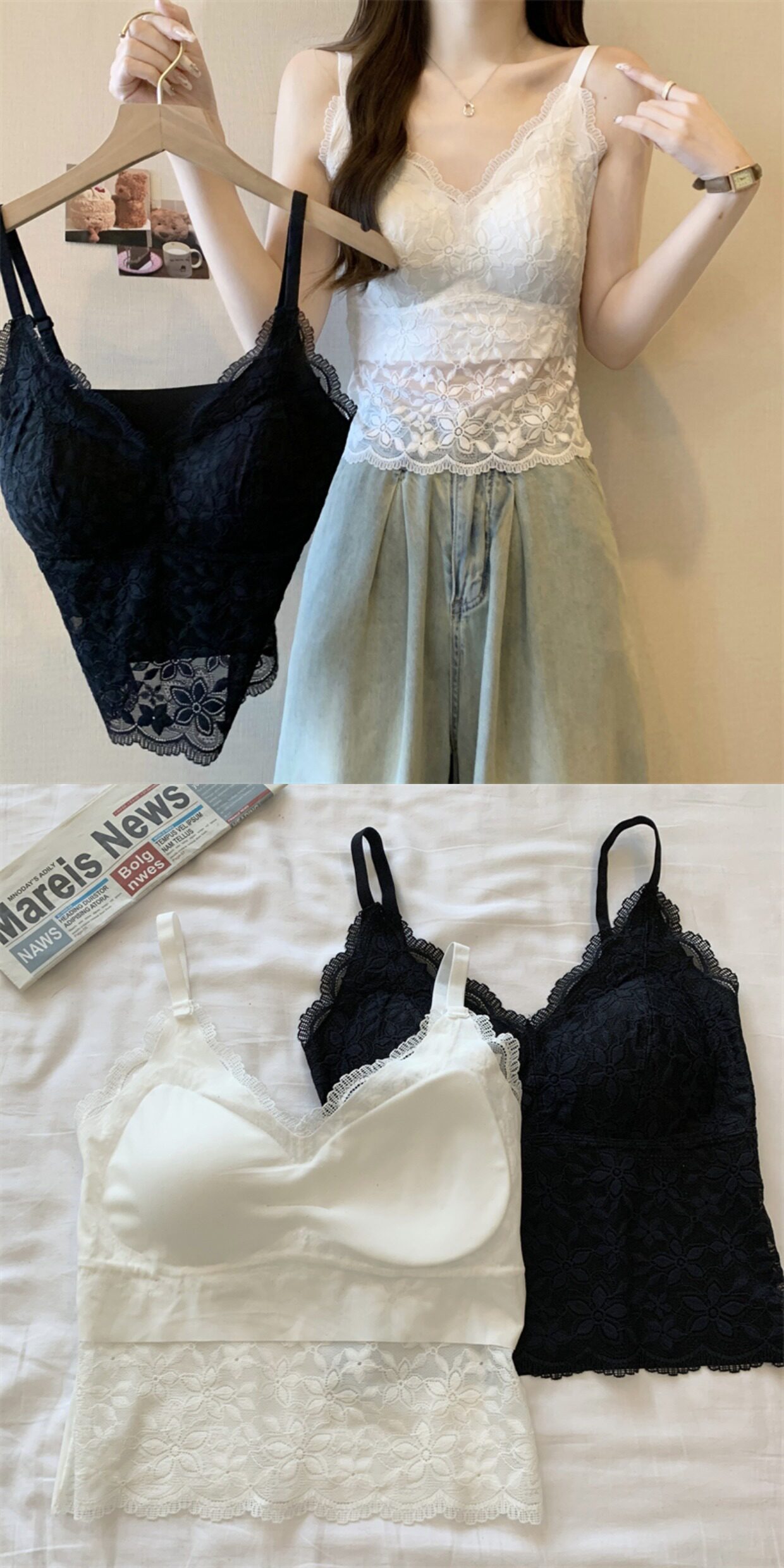 大碼法式蕾絲吊帶背心女外穿春季胖mm帶胸墊美背文胸一體內搭上衣