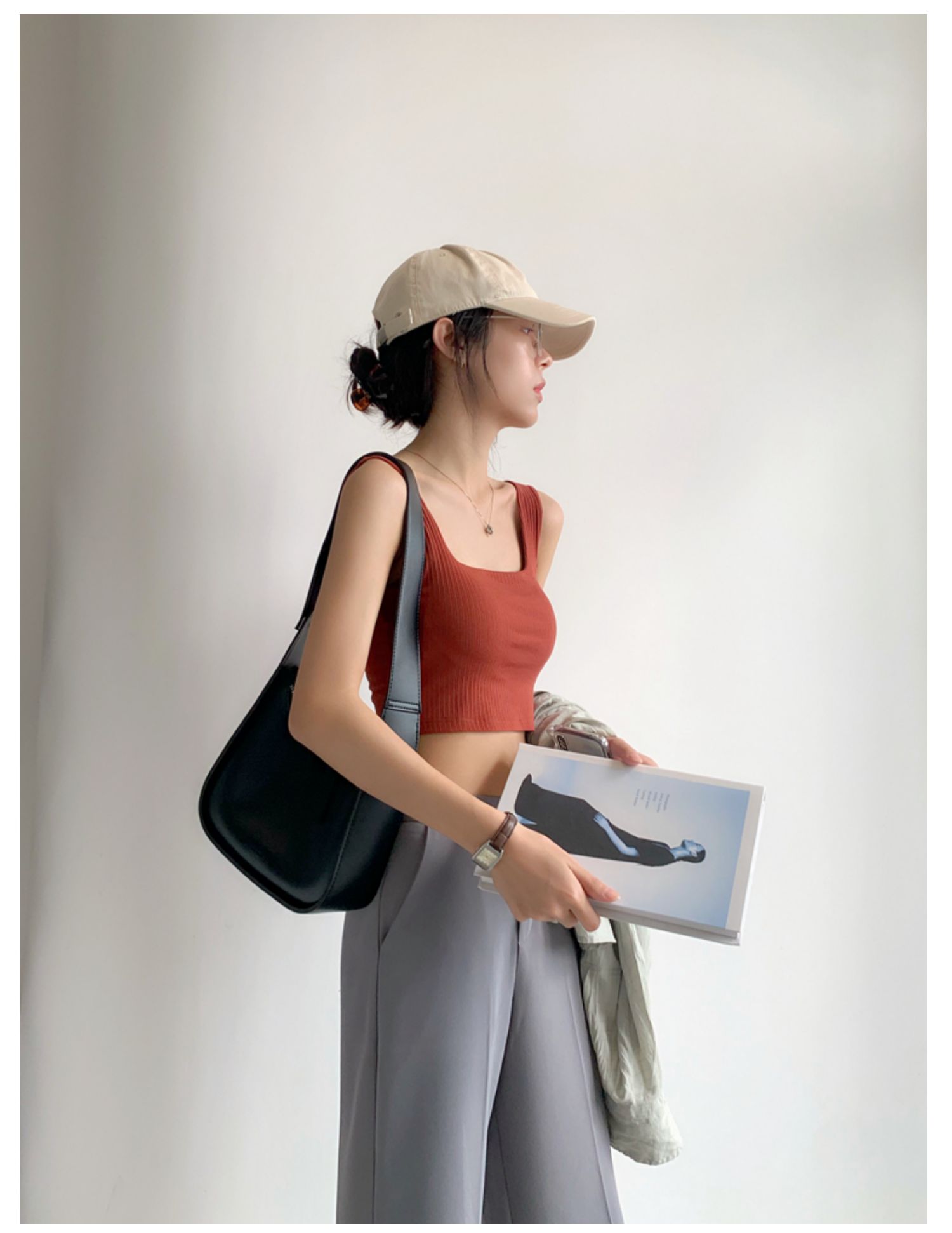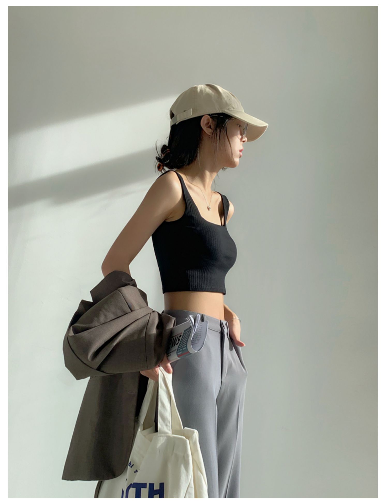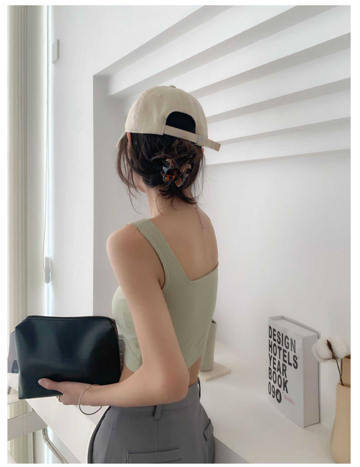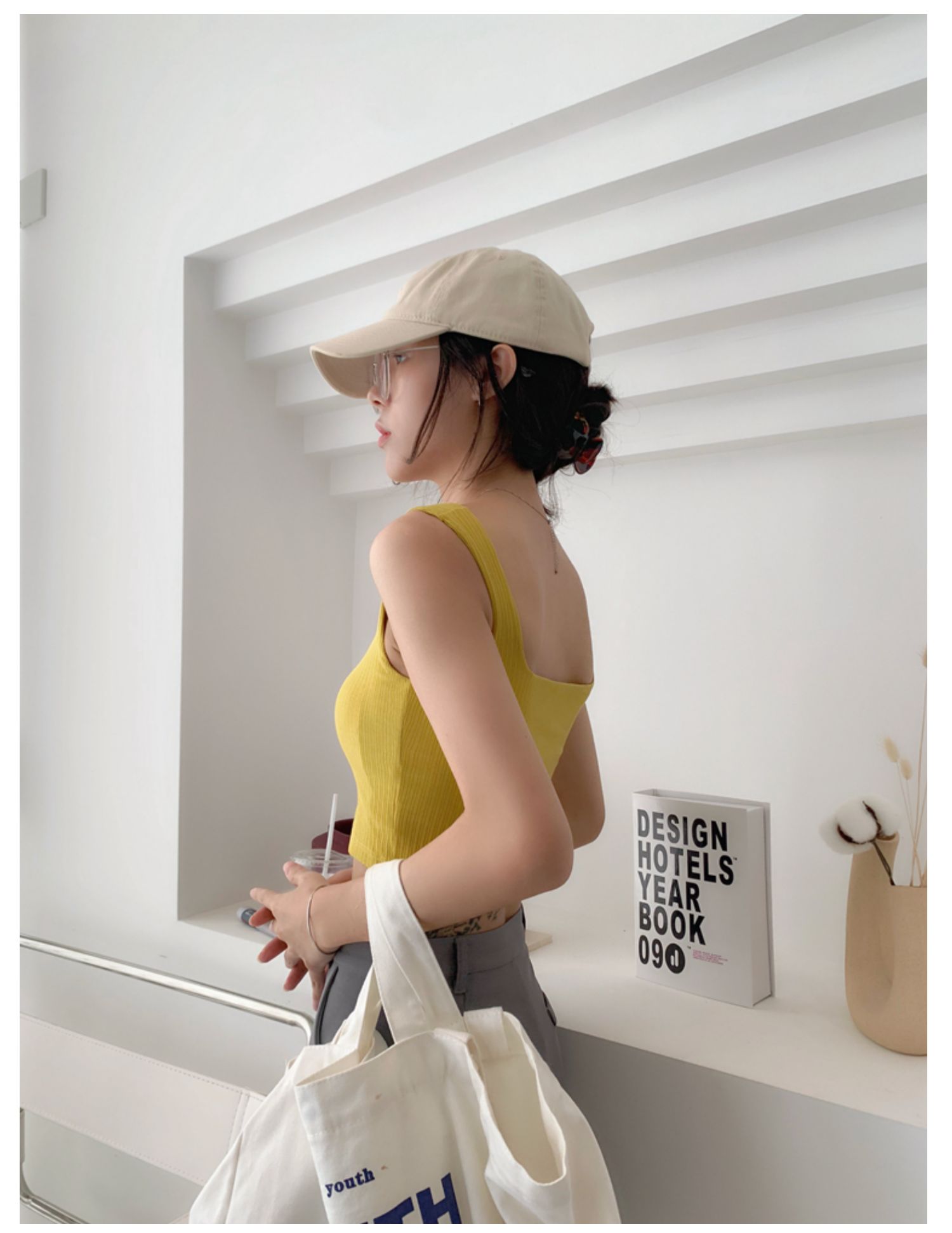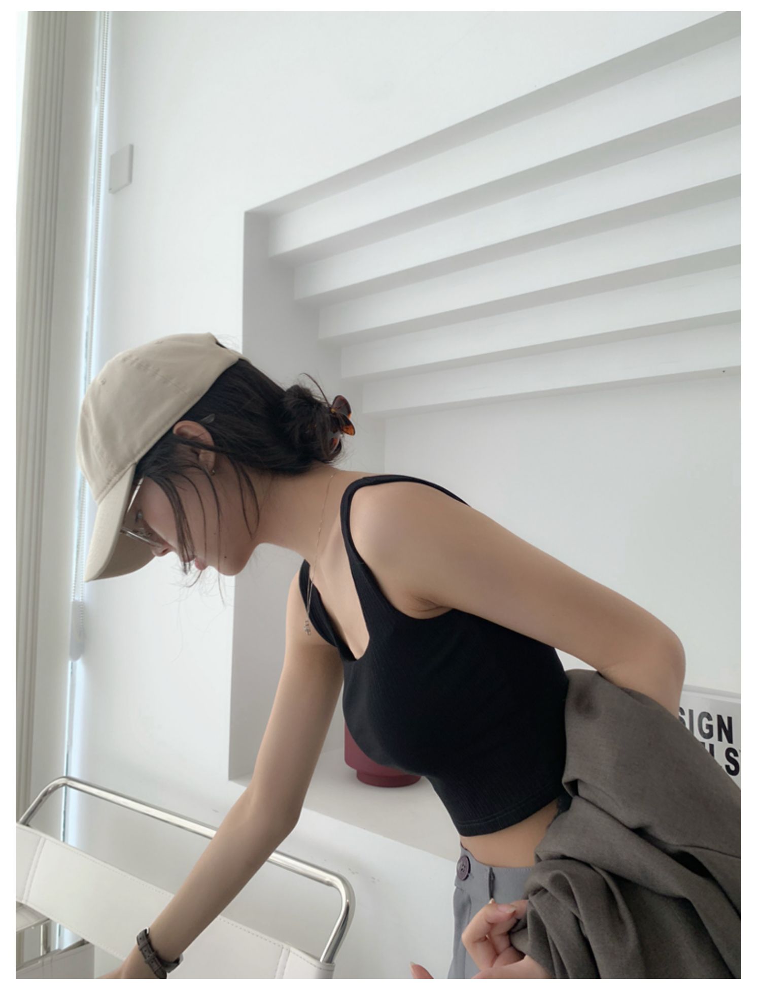 帶胸墊一字方領短款背心女夏外穿無袖露臍純棉吊帶防走光打底上衣