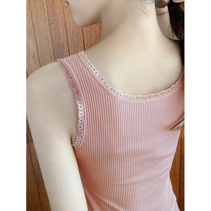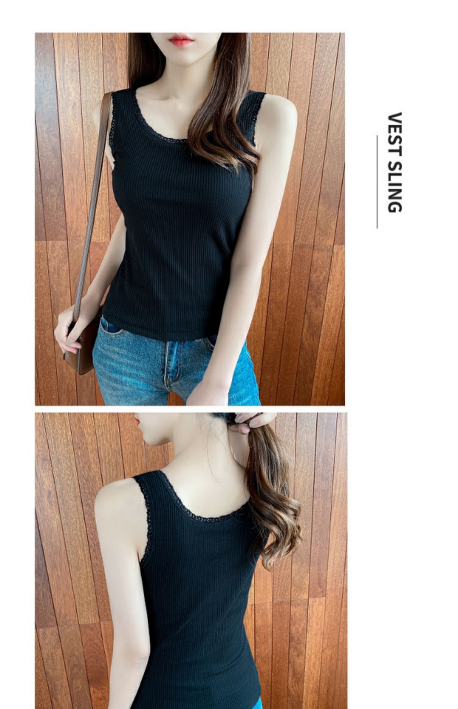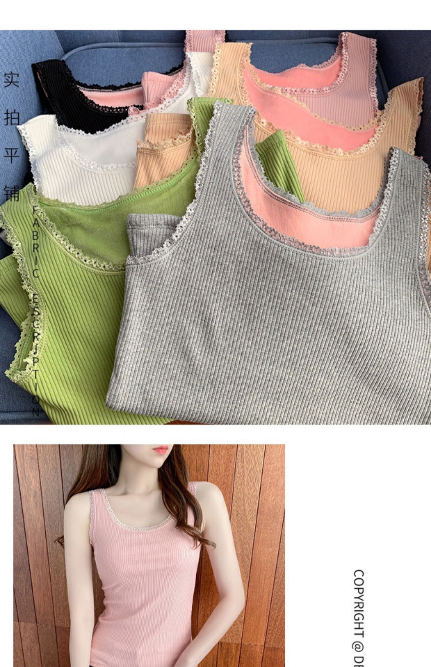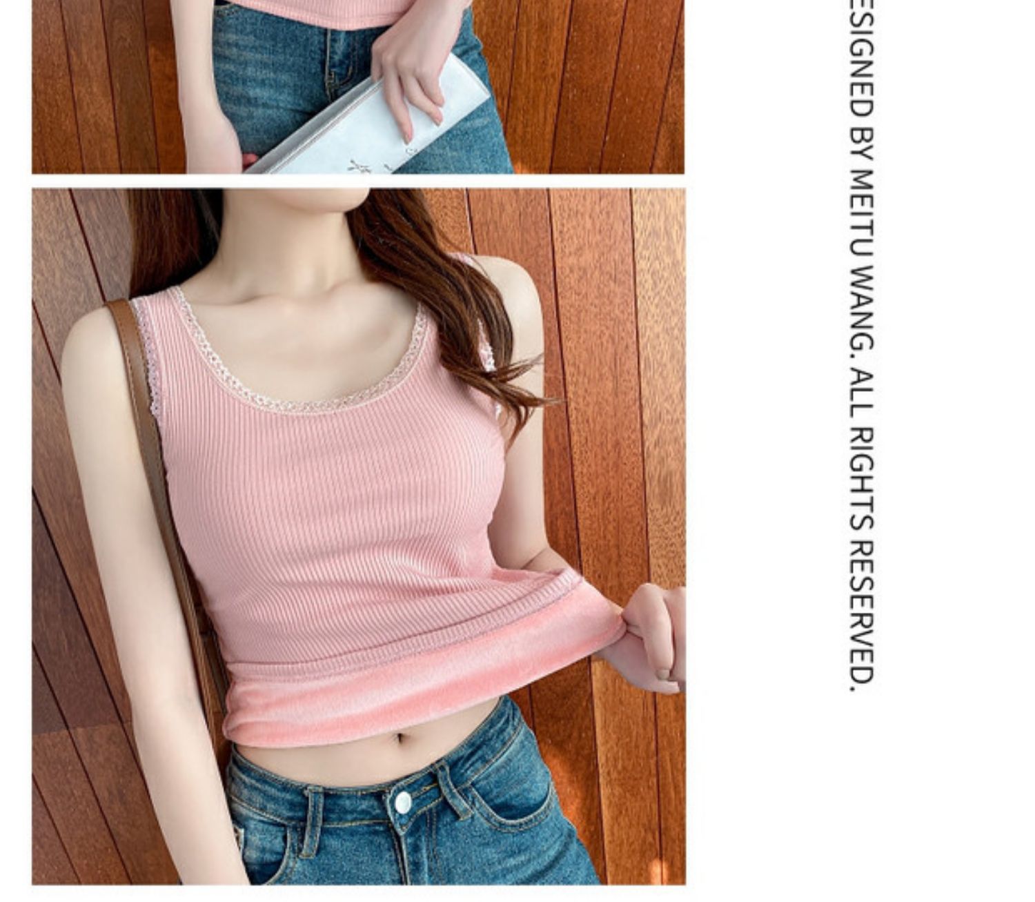 保暖背心女加絨加厚秋冬季螺紋棉蕾絲花邊大碼無袖內搭上衣打底衫