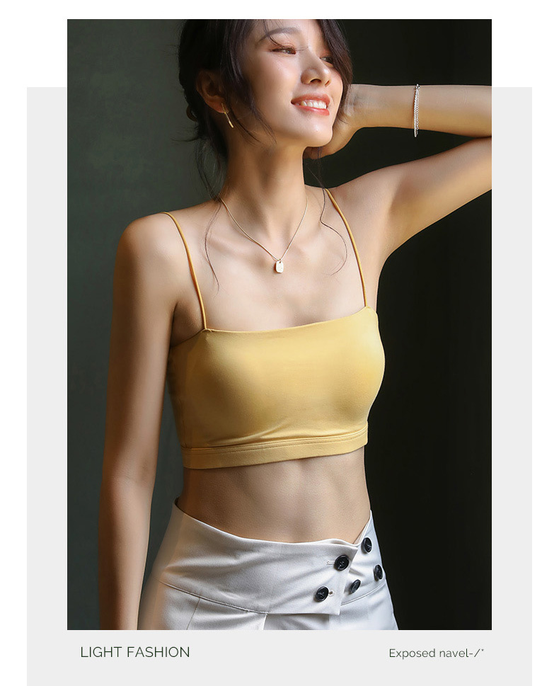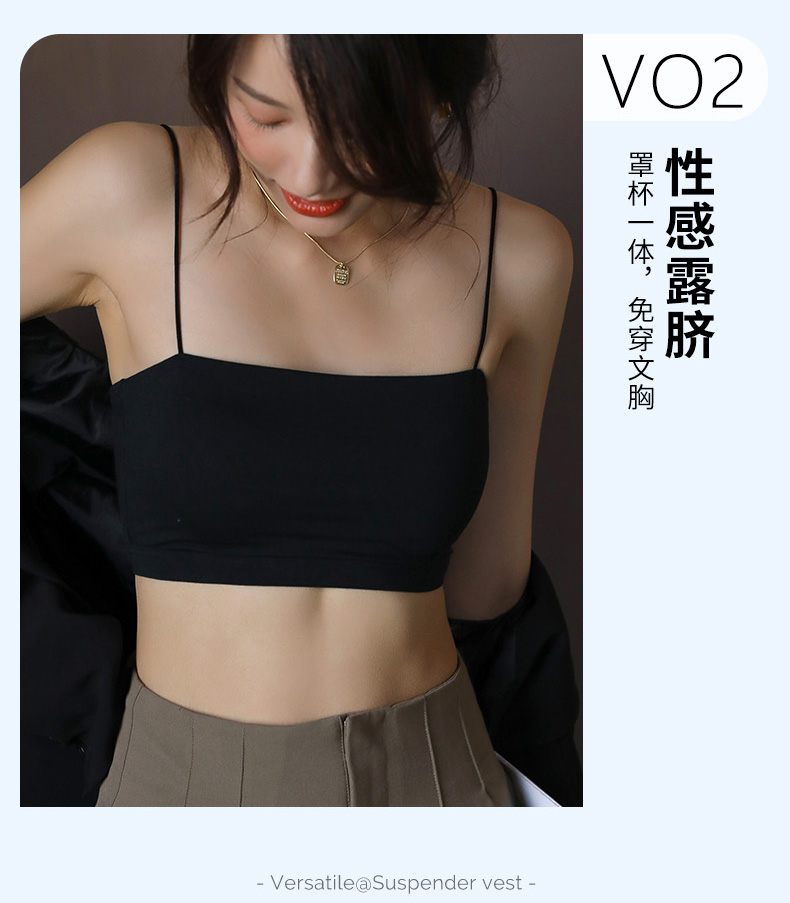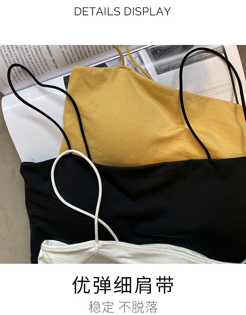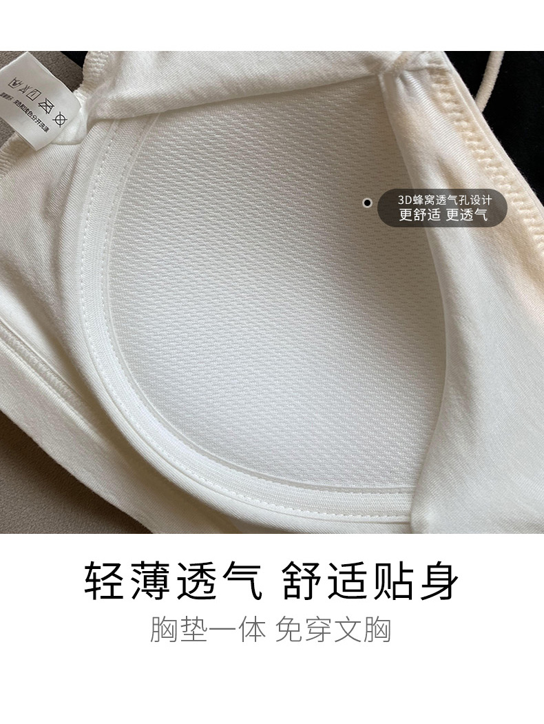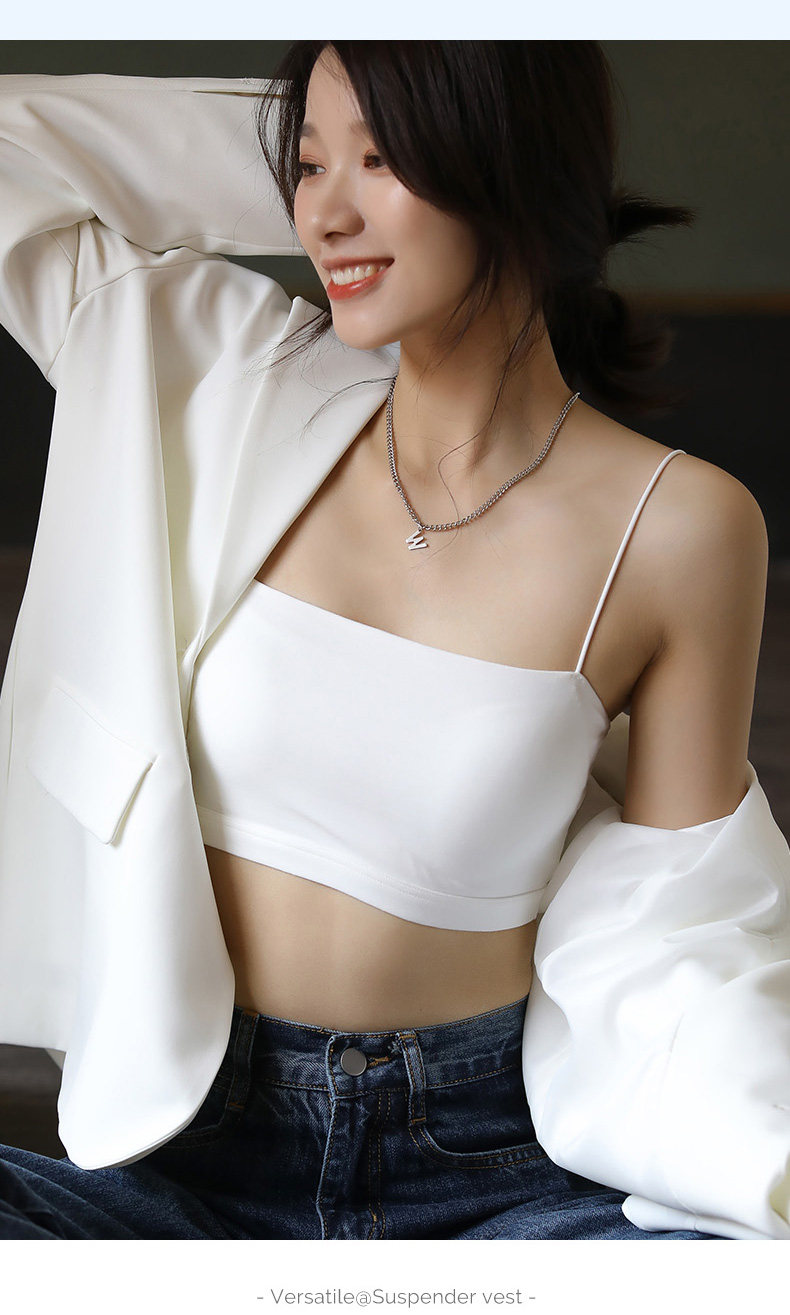白色小吊帶背心女內搭夏帶胸墊抹胸上衣防走光一體式短款美背內衣