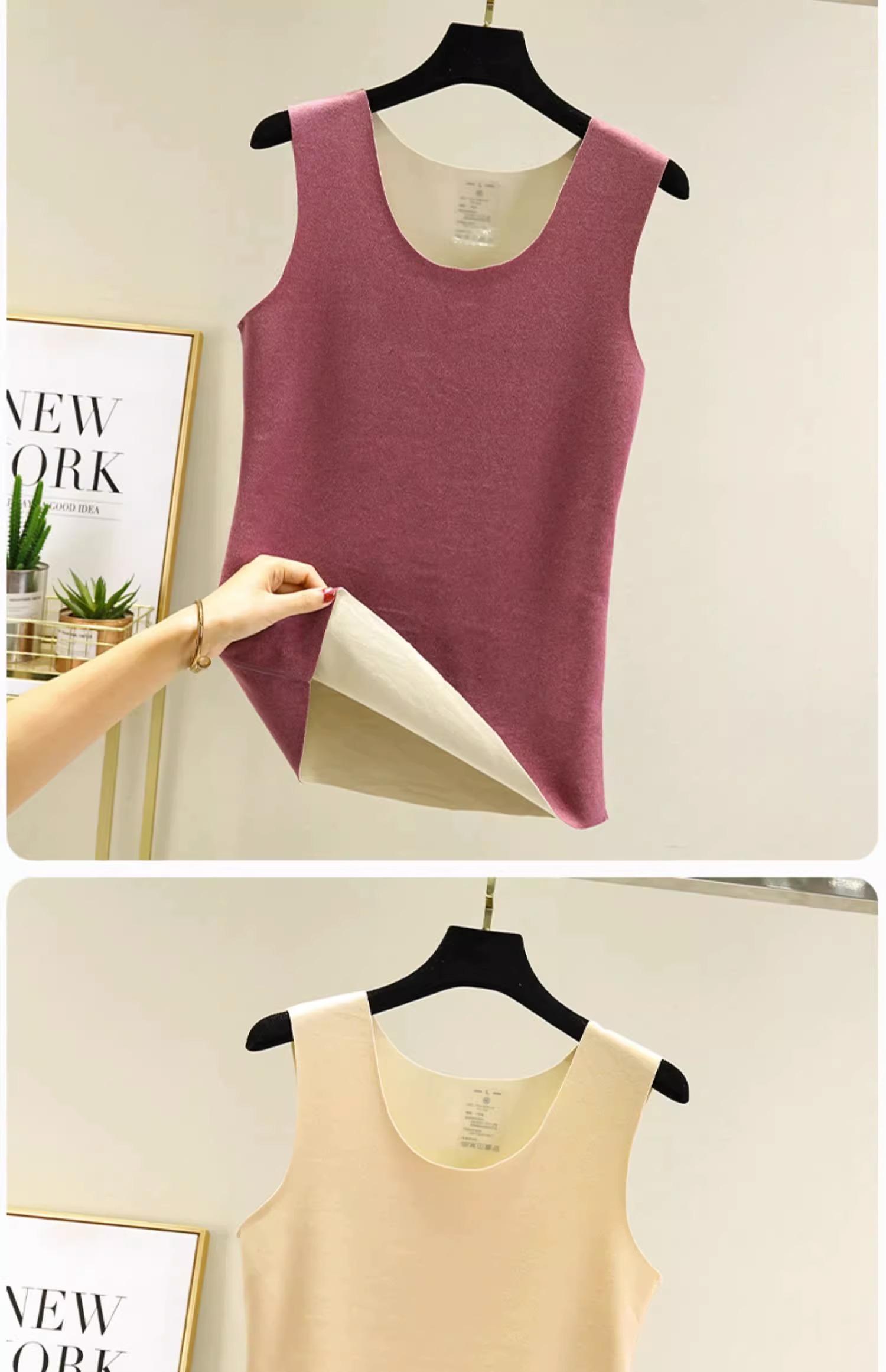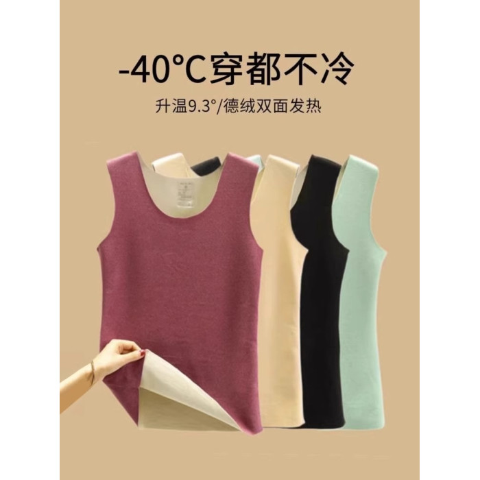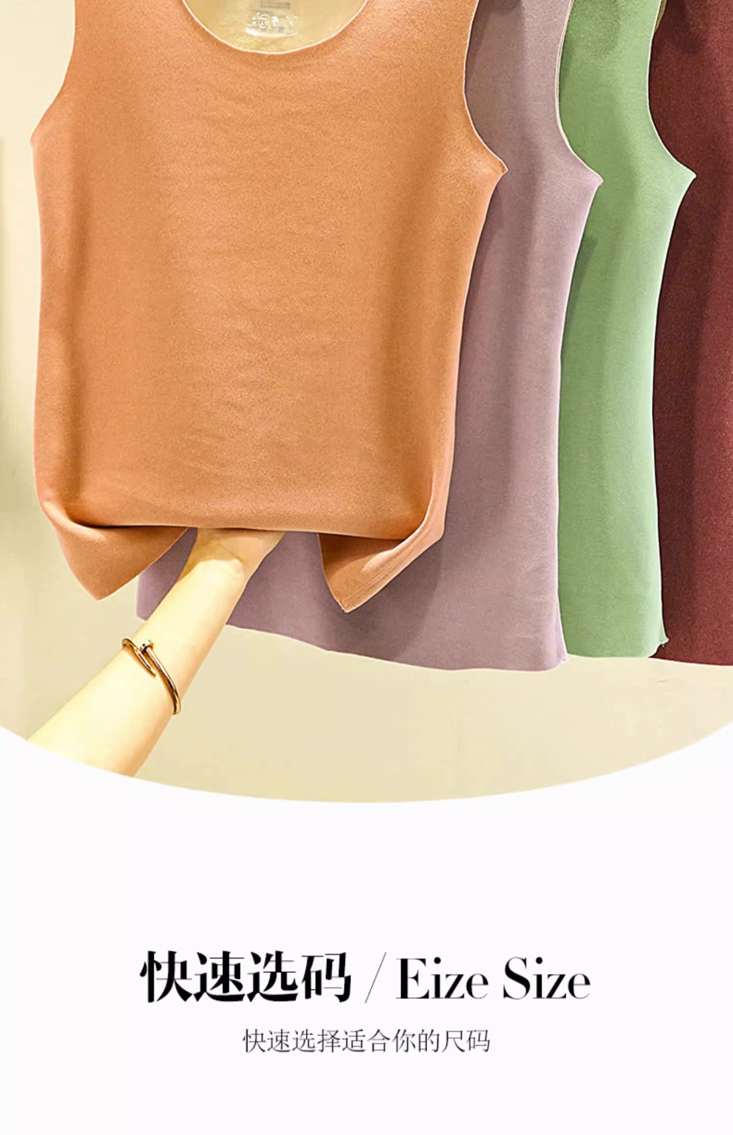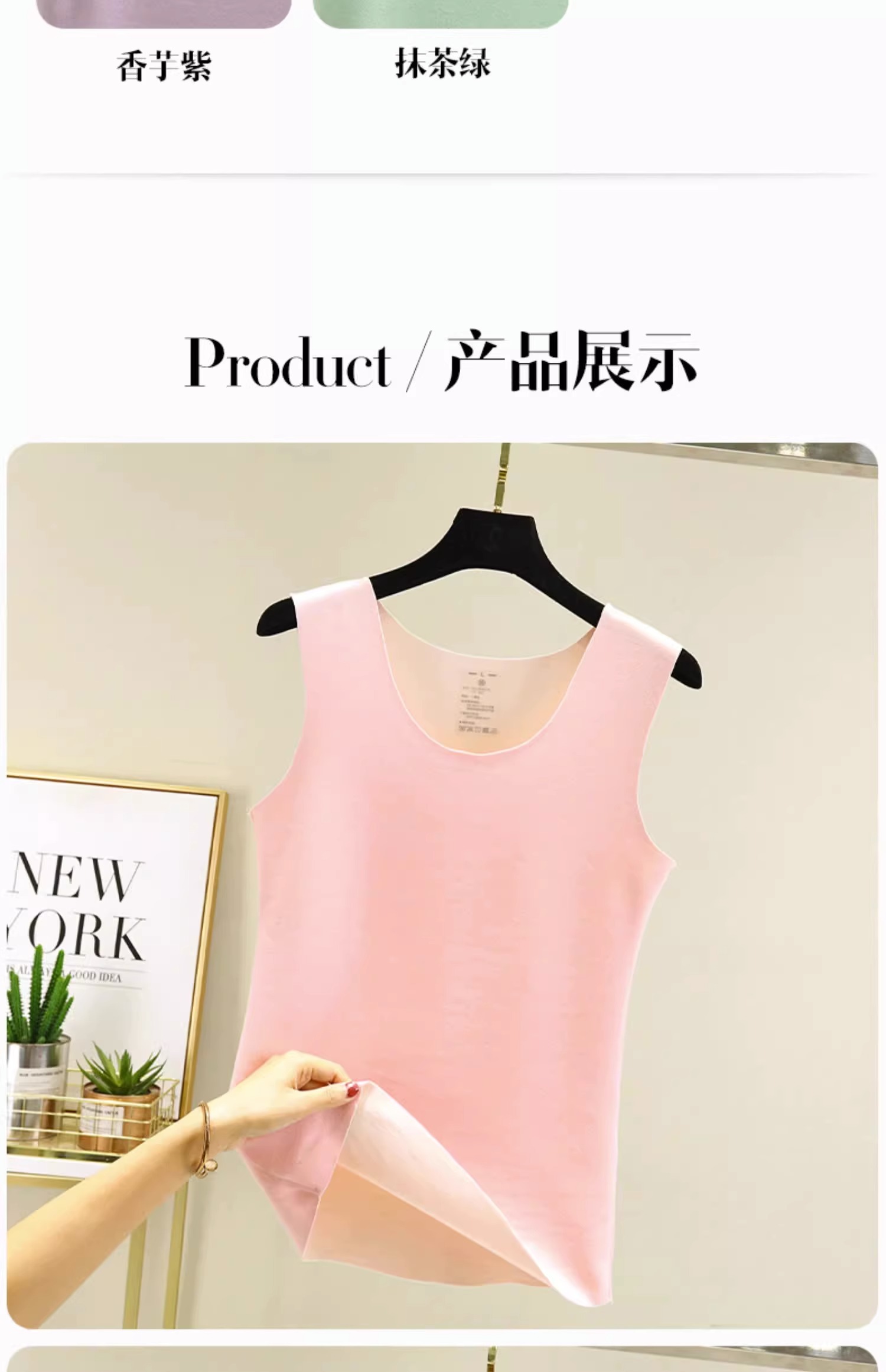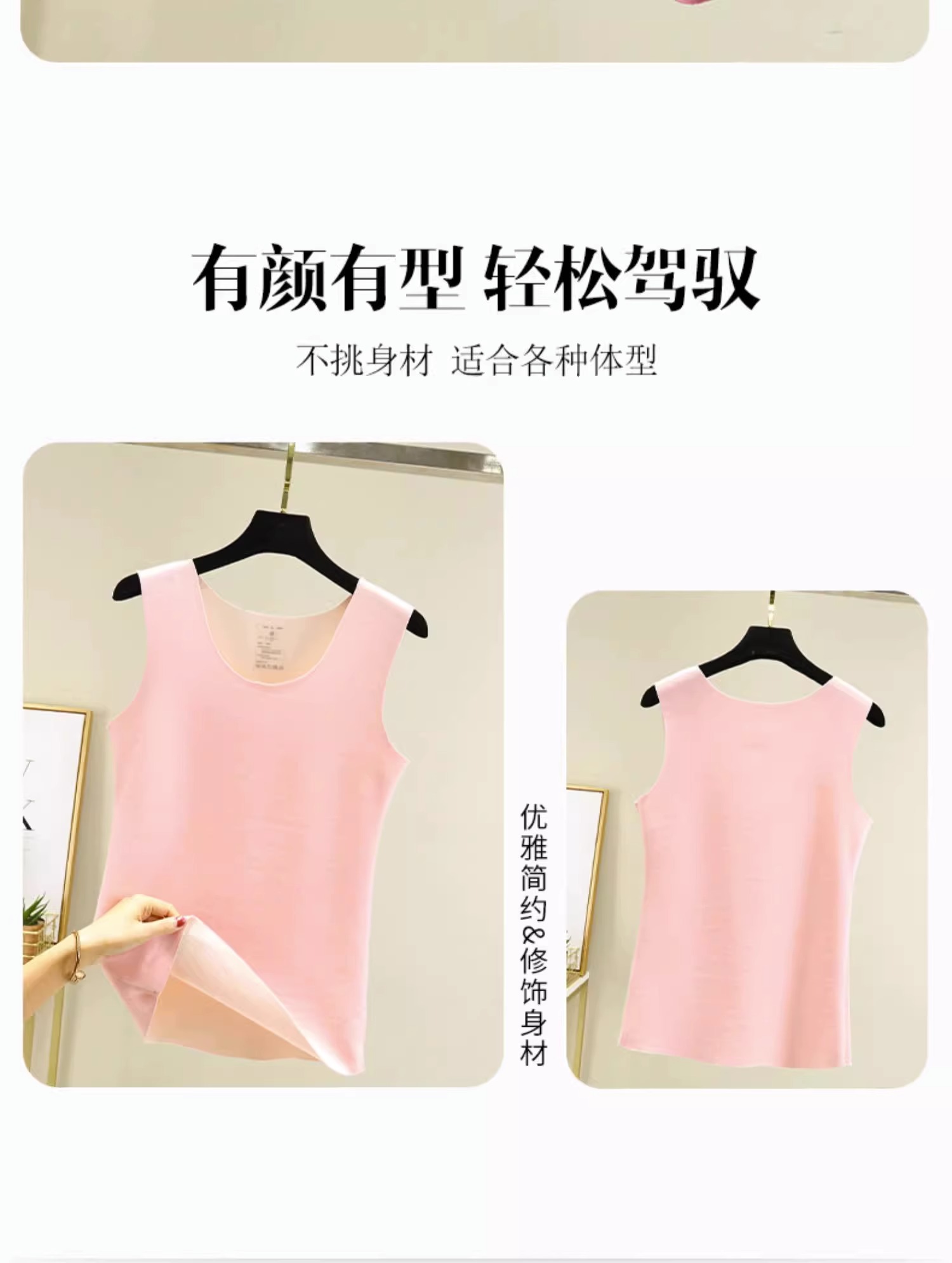 德絨髮熱無痕保暖背心女秋冬修身圓領內搭加絨加厚馬甲吊帶打底衫