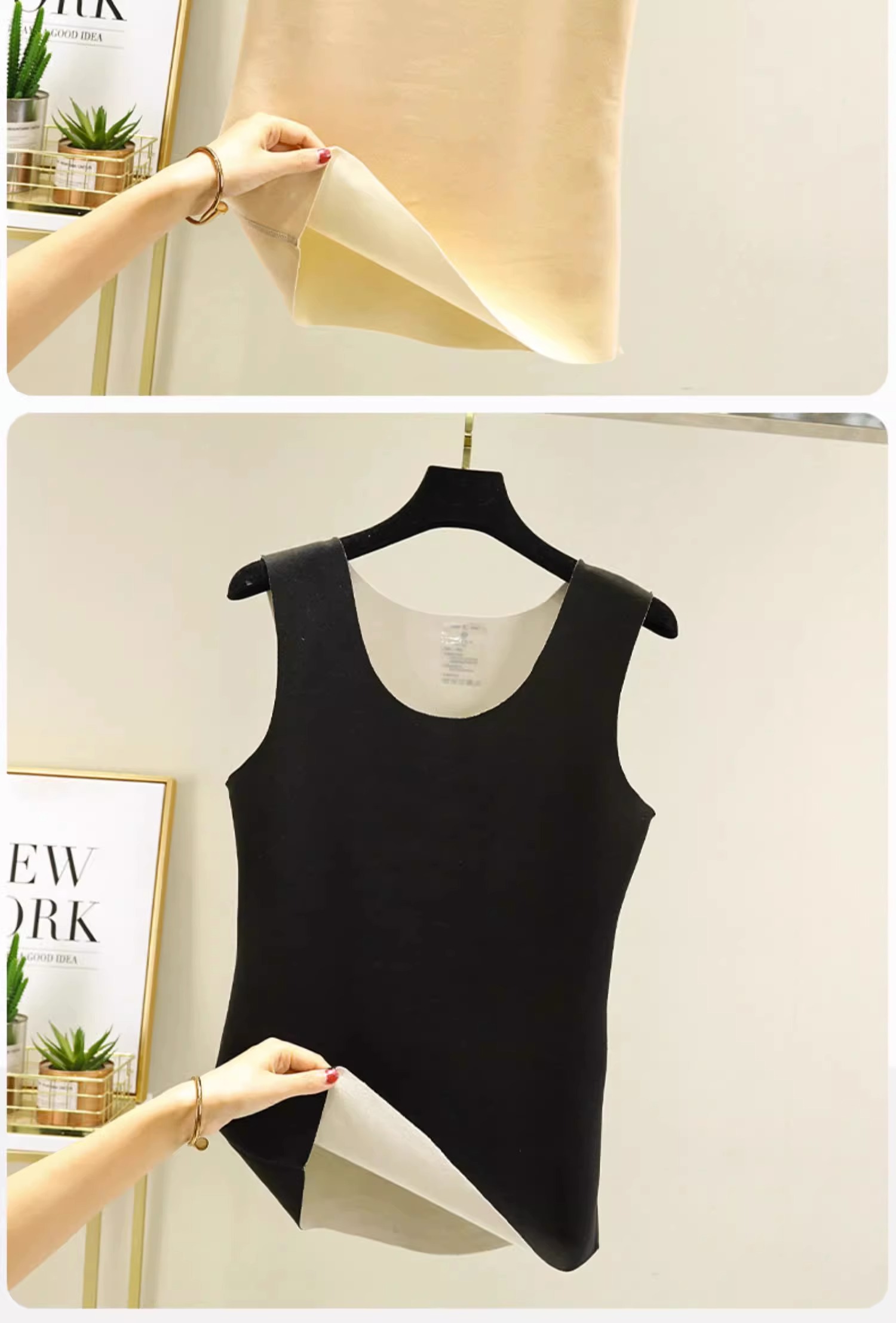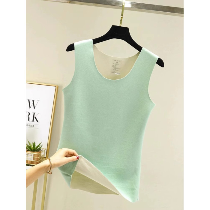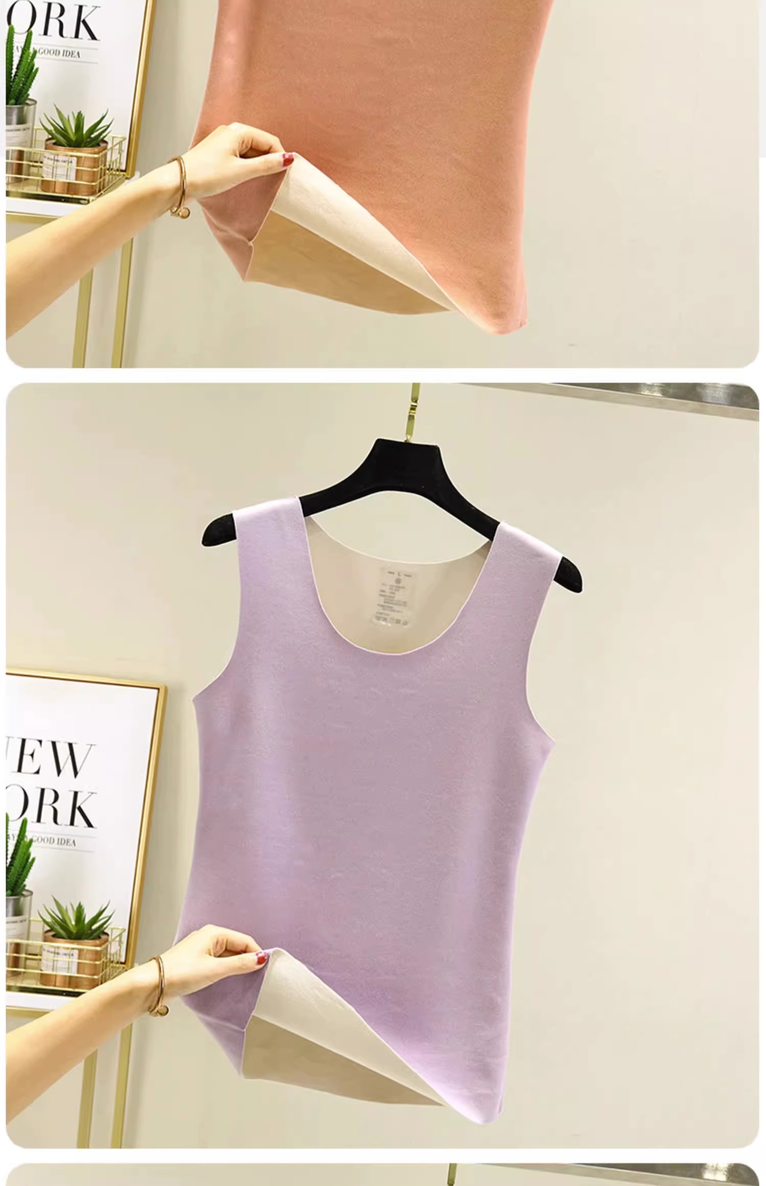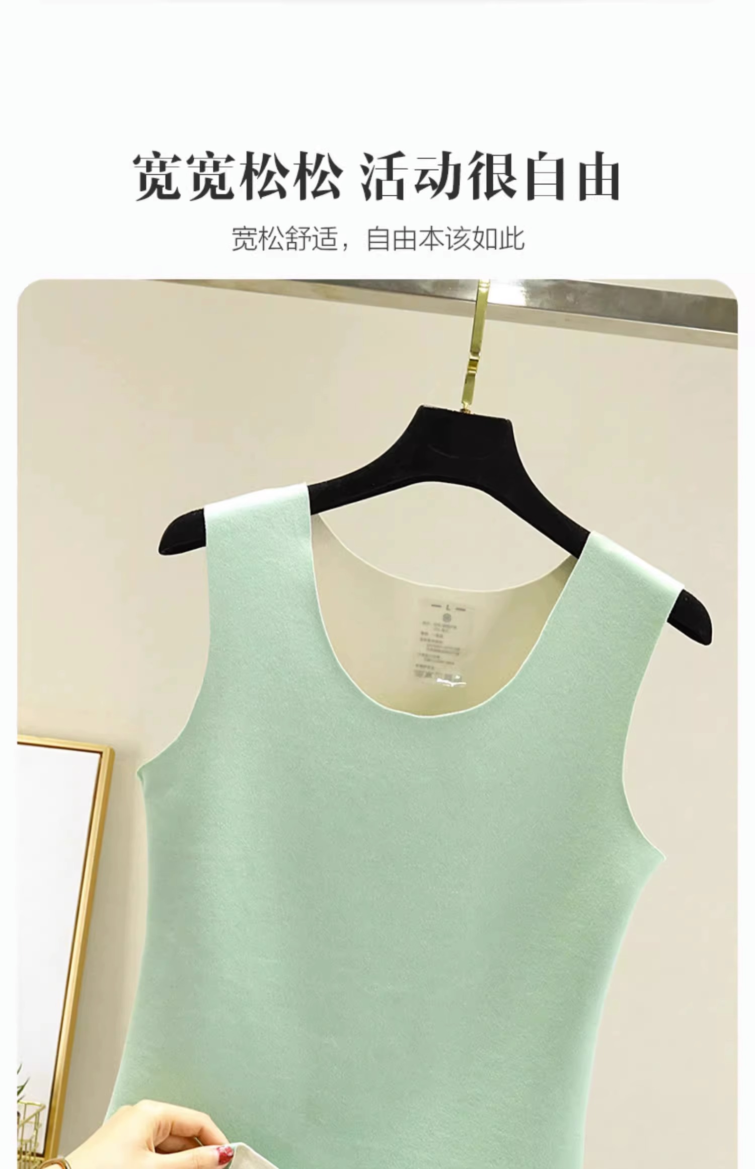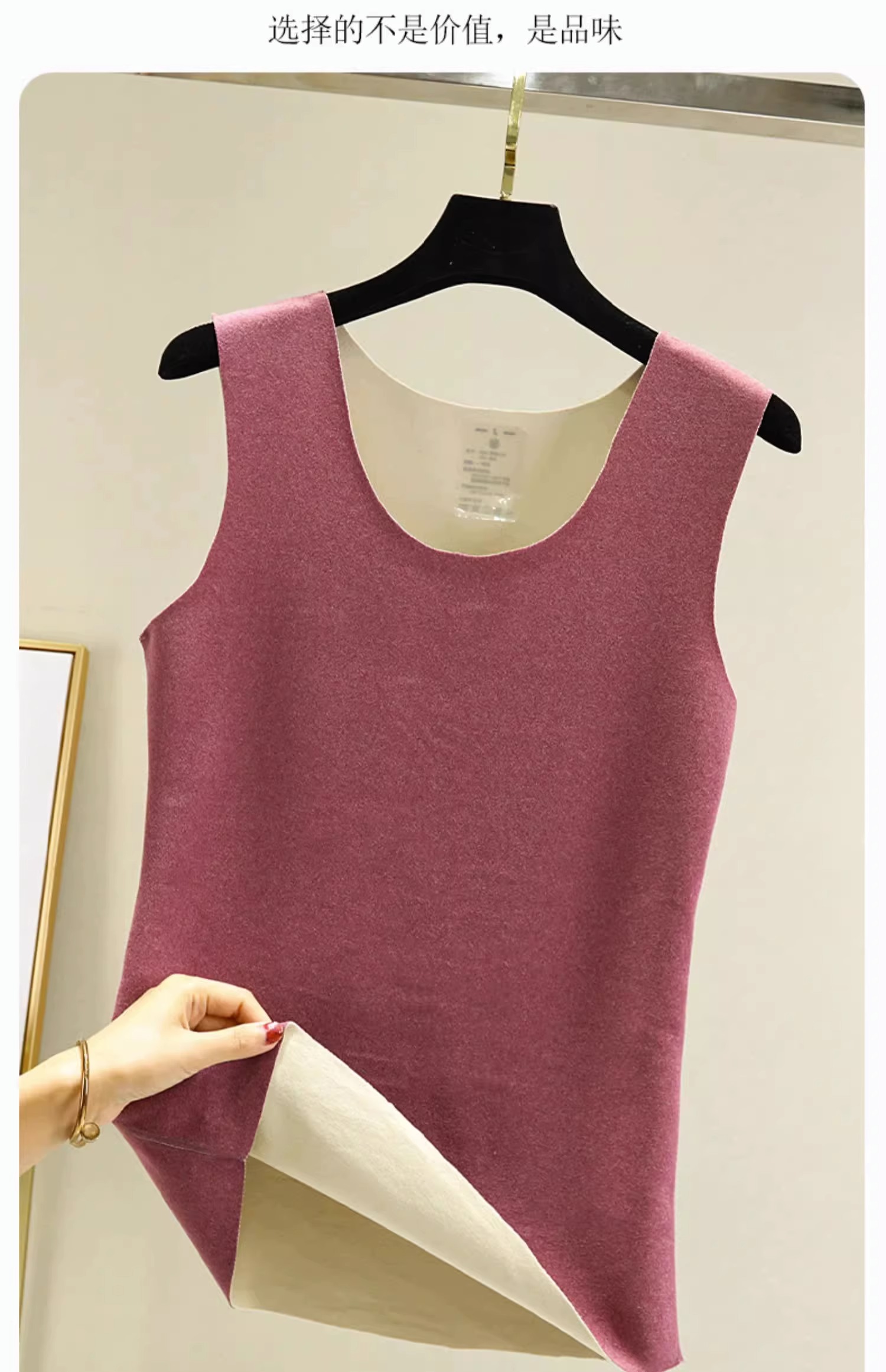 德絨髮熱無痕保暖背心女秋冬修身圓領內搭加絨加厚馬甲吊帶打底衫
