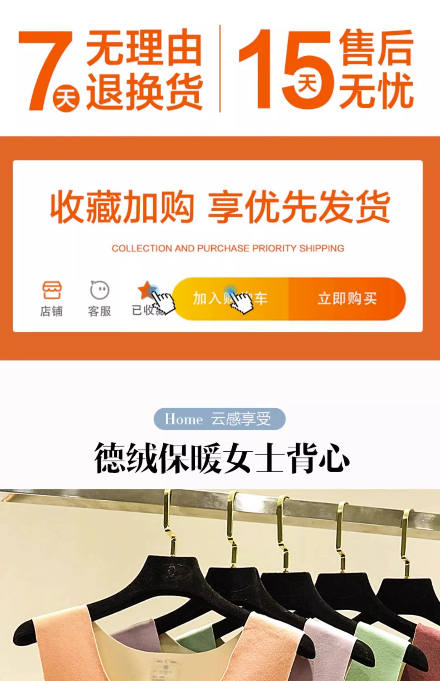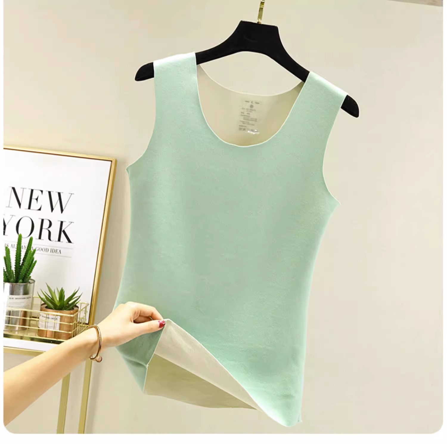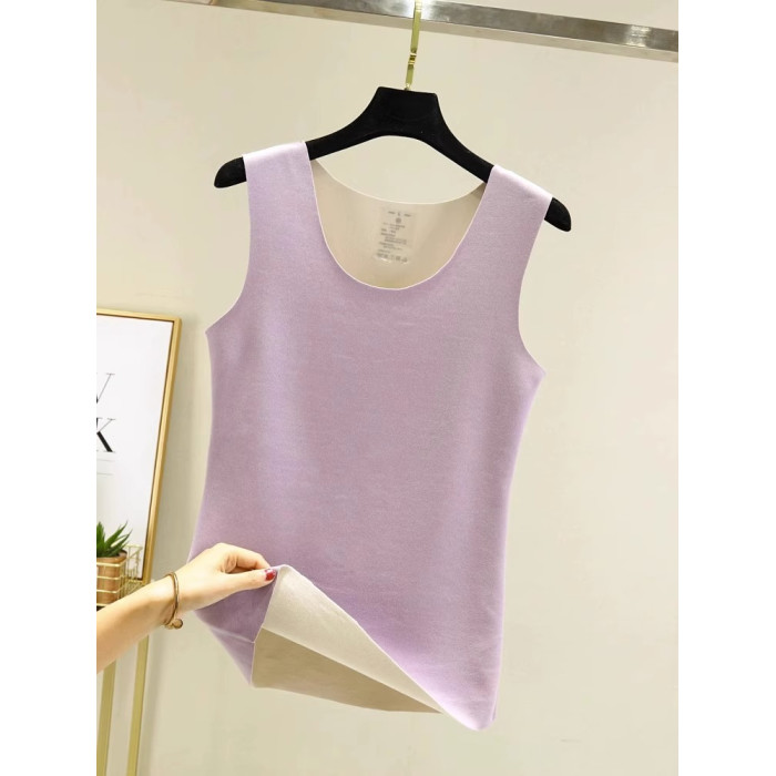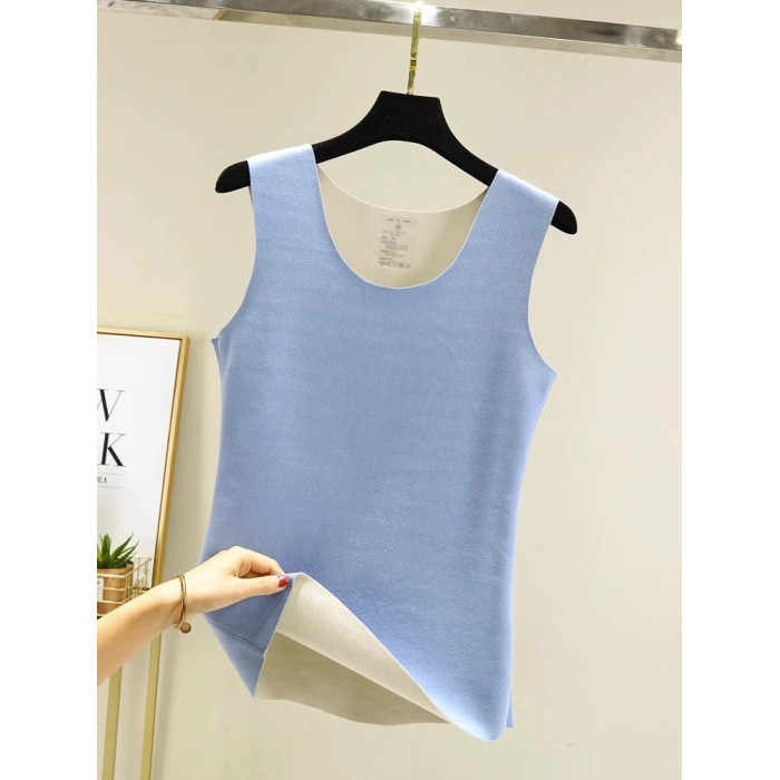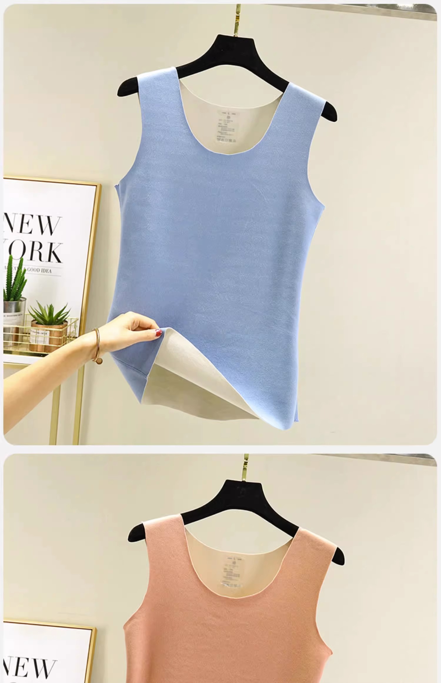 德絨髮熱無痕保暖背心女秋冬修身圓領內搭加絨加厚馬甲吊帶打底衫