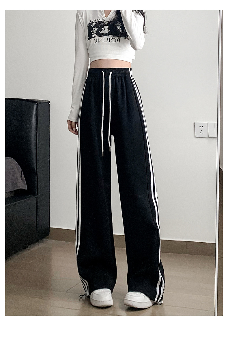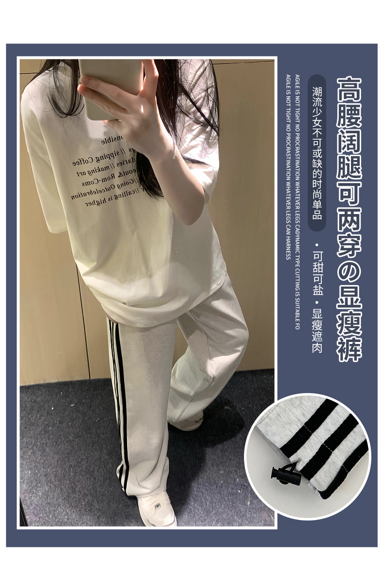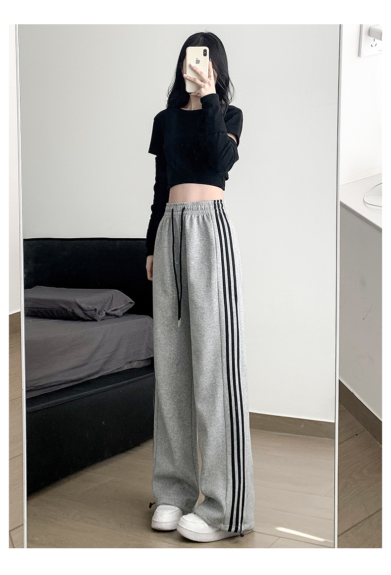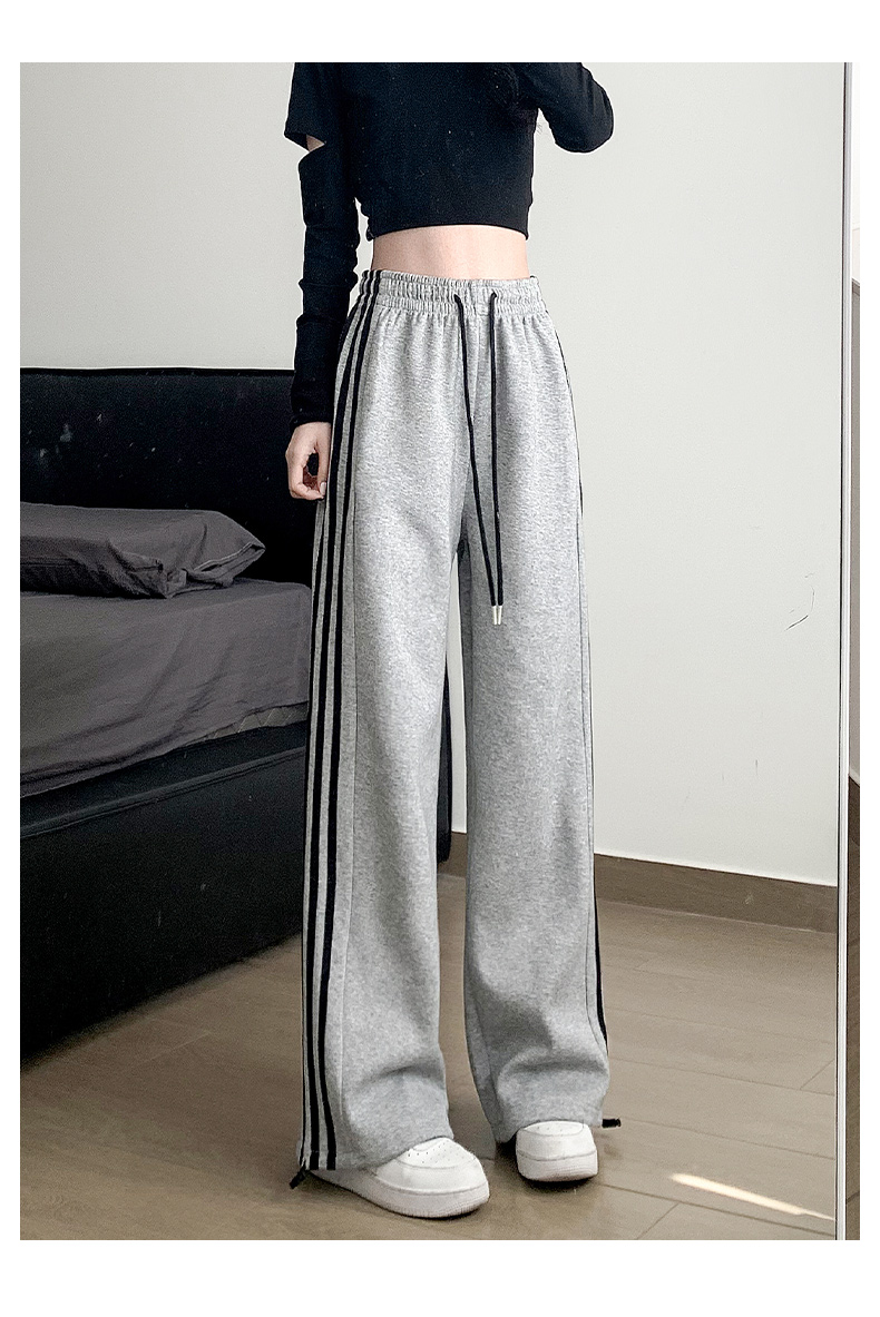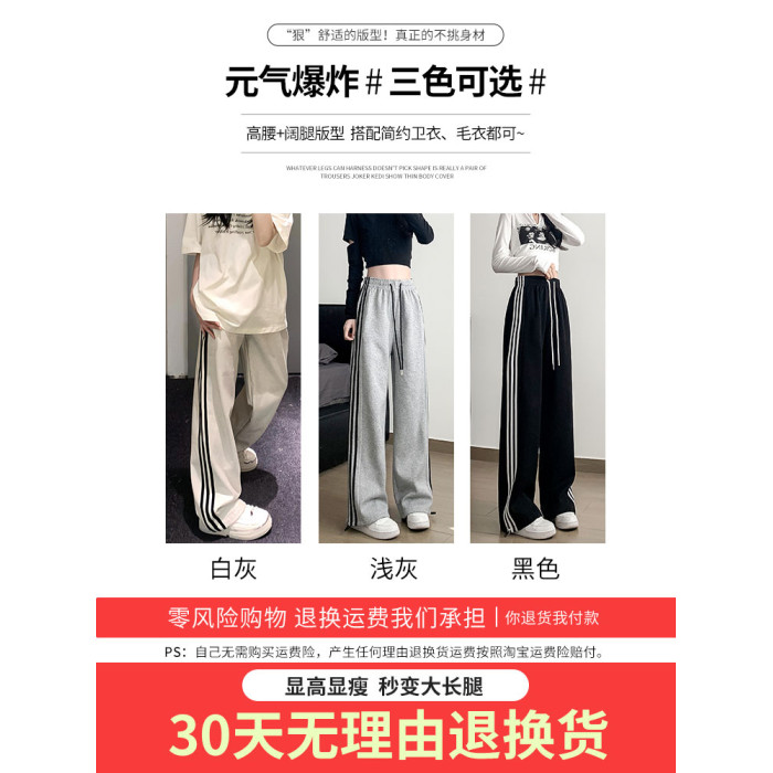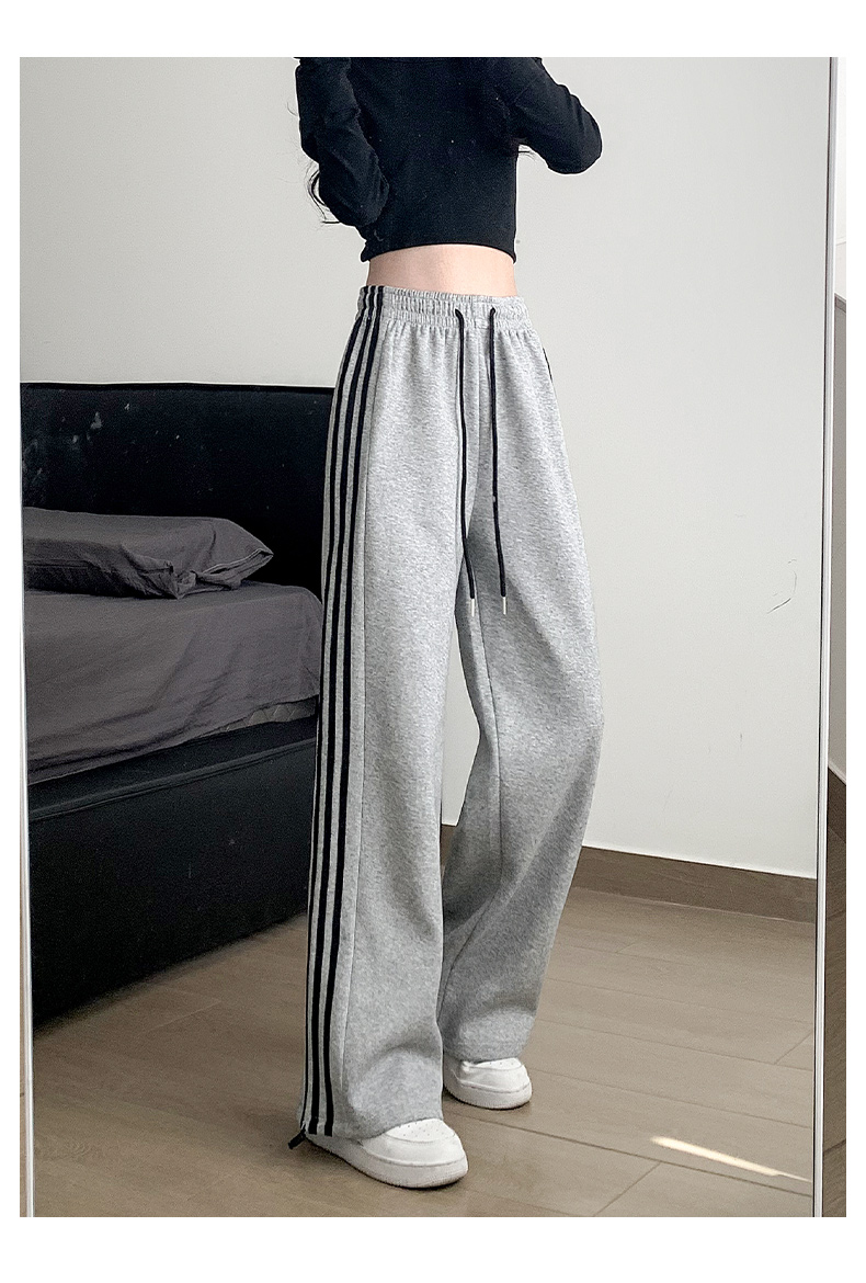 白灰色運動褲女秋冬2025新款高腰直筒濶腿褲小個子休閒寬松衛褲子