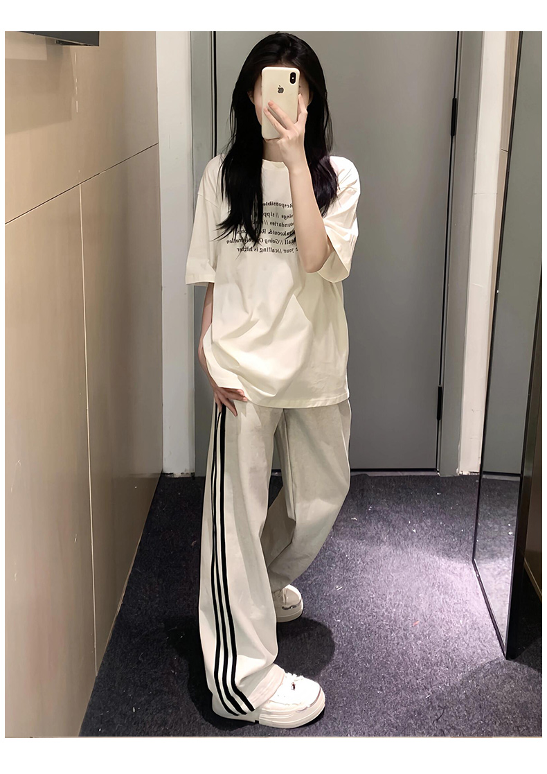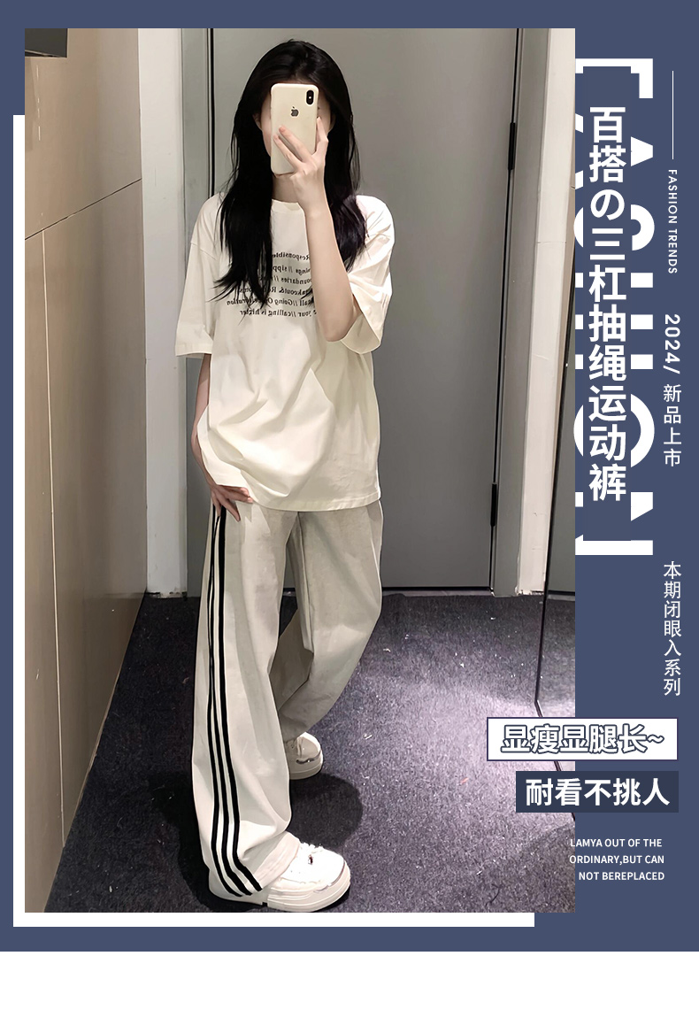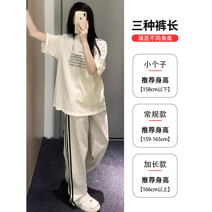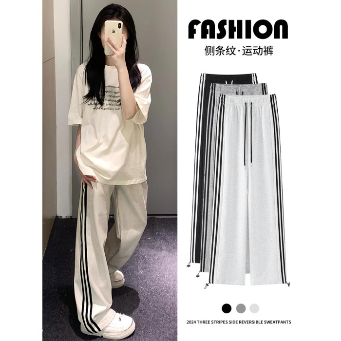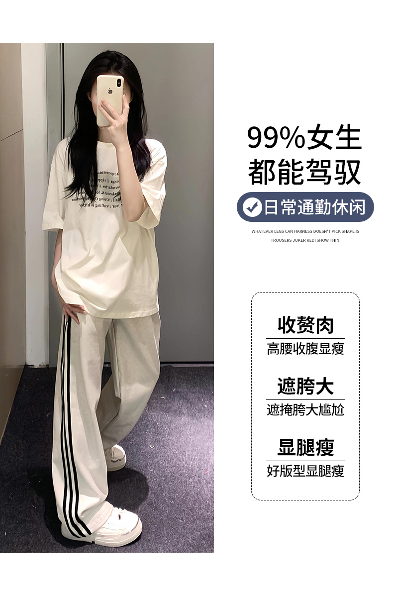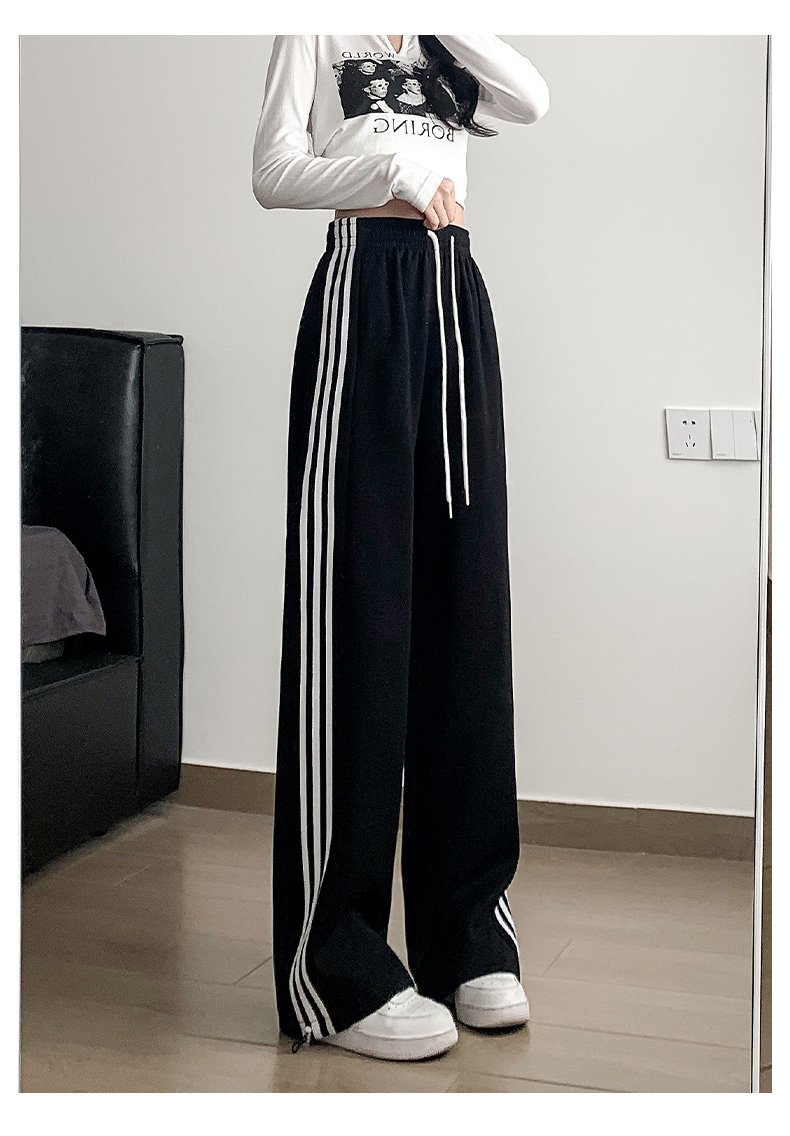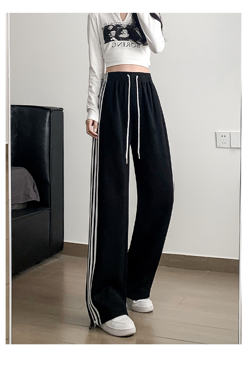 白灰色運動褲女秋冬2025新款高腰直筒濶腿褲小個子休閒寬松衛褲子