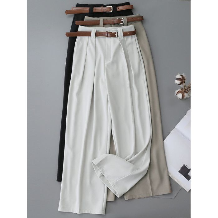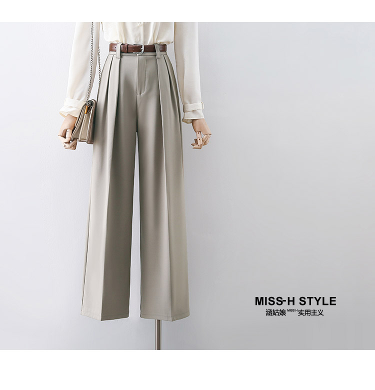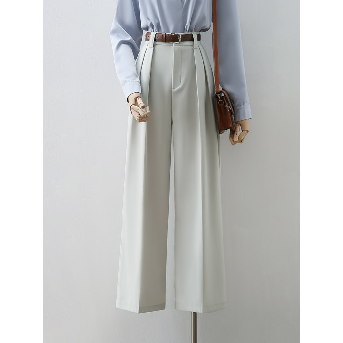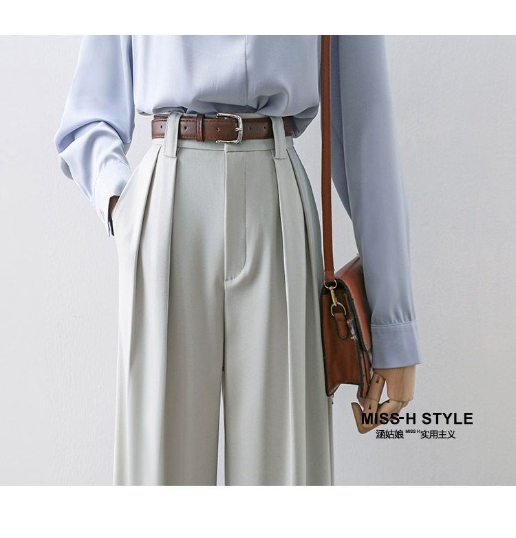 高腰遮胯窄版顯瘦濶腿褲女2025春夏新款高級感職業通勤休閒拖地褲