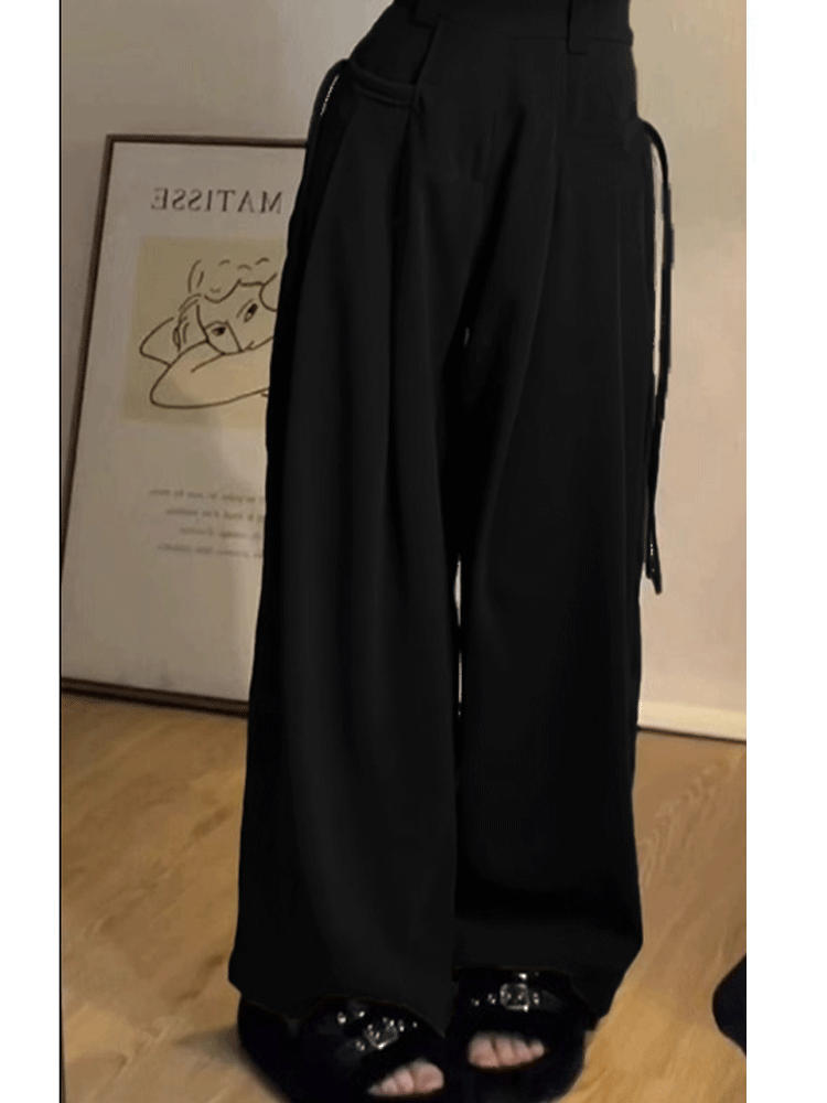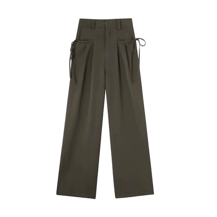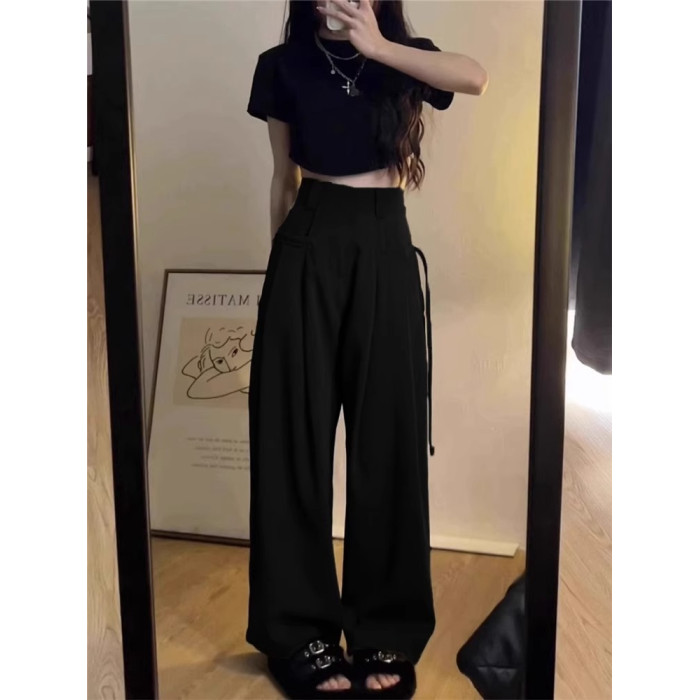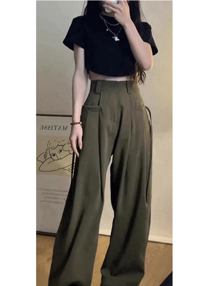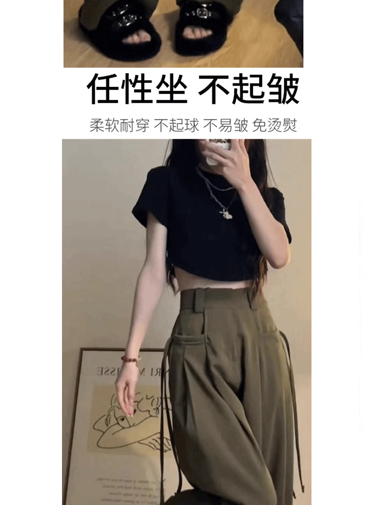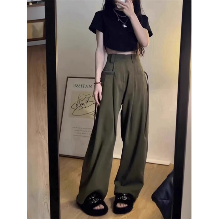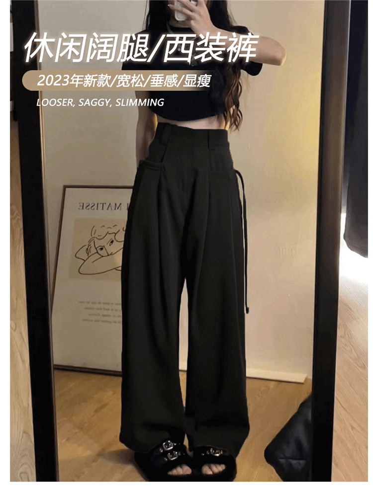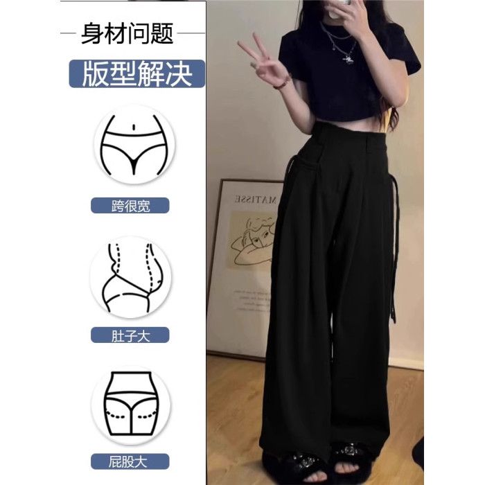 梨形身材休閒工裝褲女大碼胖mm夏薄款遮胯垂感高腰寬松西裝濶腿褲
