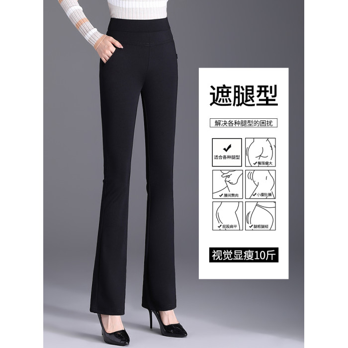 微喇褲子女春秋2025新款高腰松緊顯瘦大碼加絨媽媽女士休閒喇叭褲