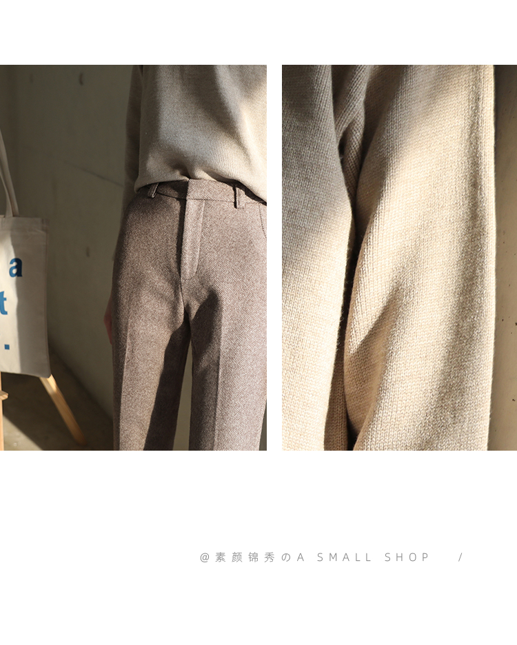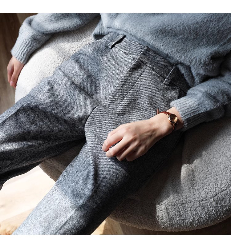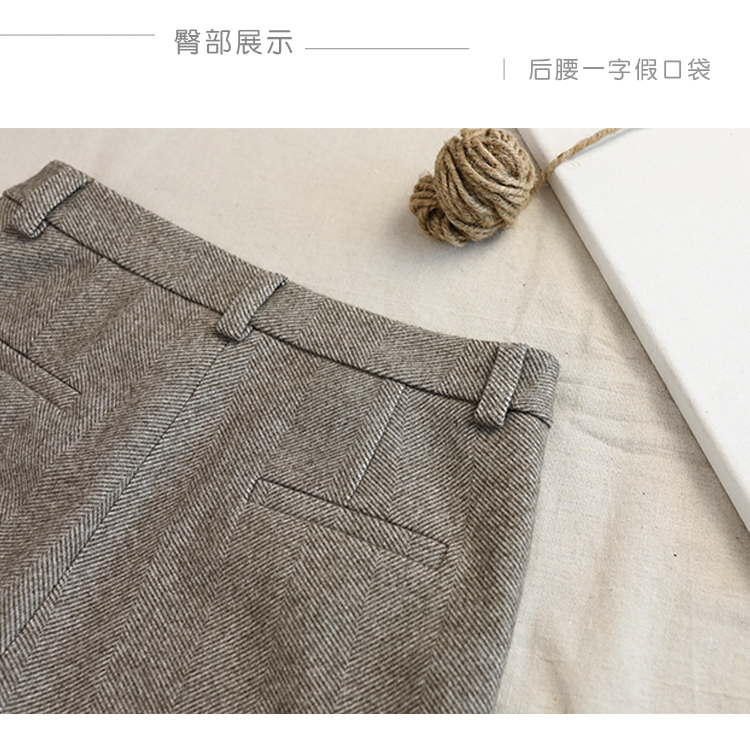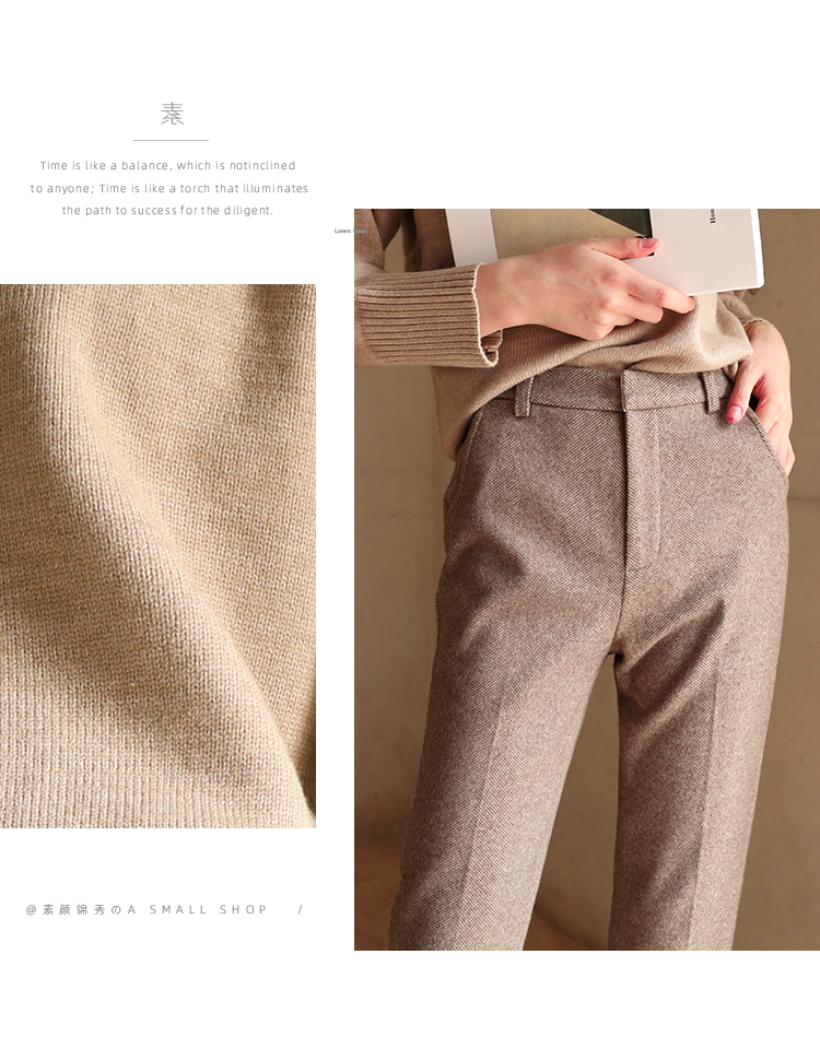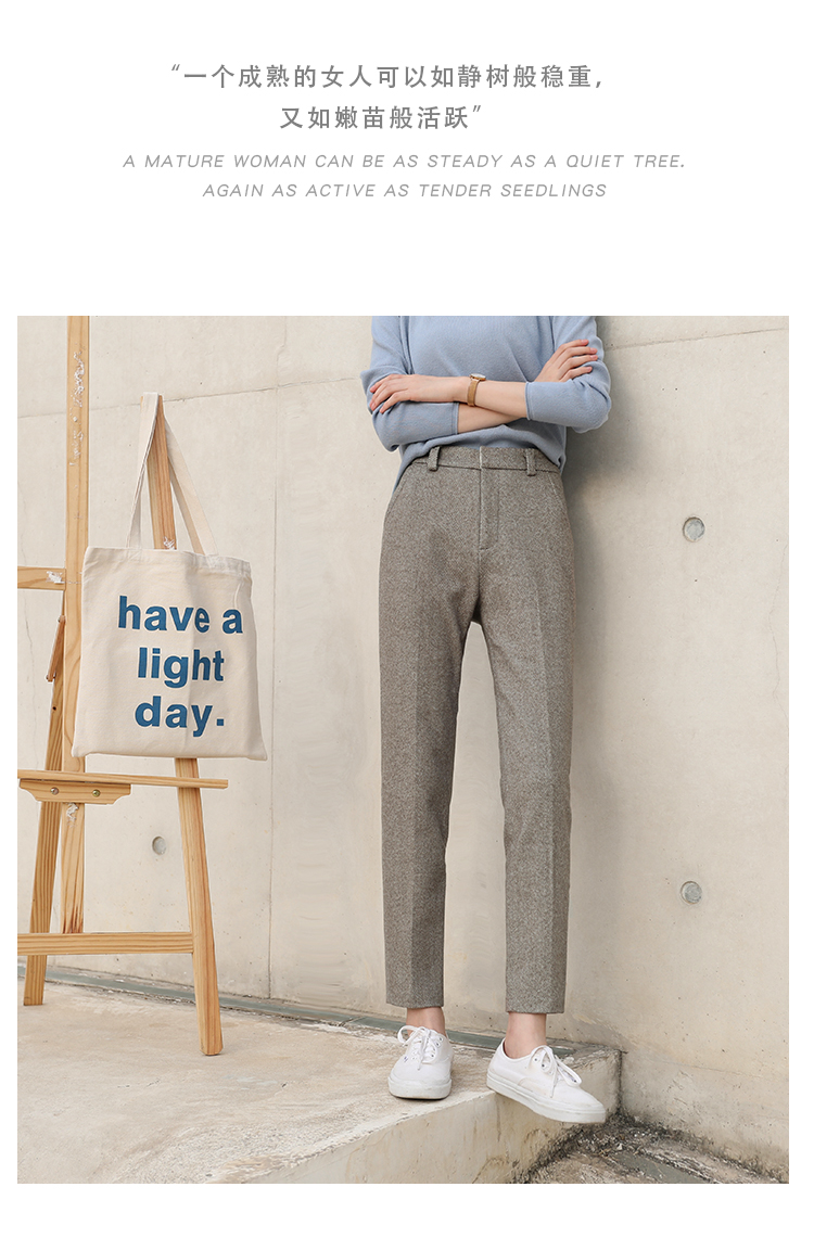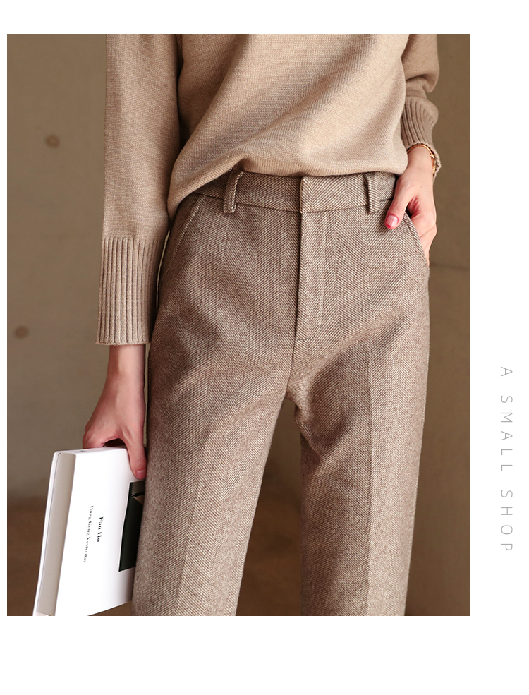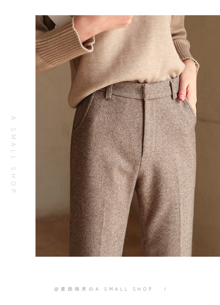 秋冬加厚人字紋毛呢褲九分褲女直筒菸管褲韓版寬松小腳褲高腰簡約