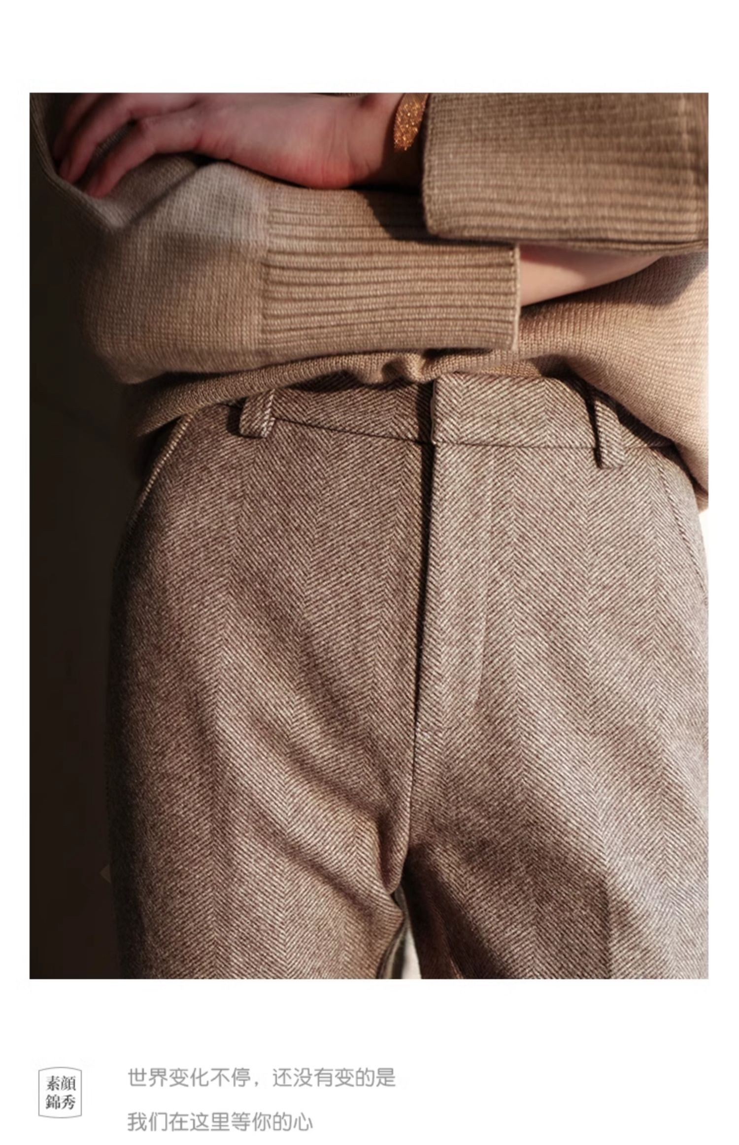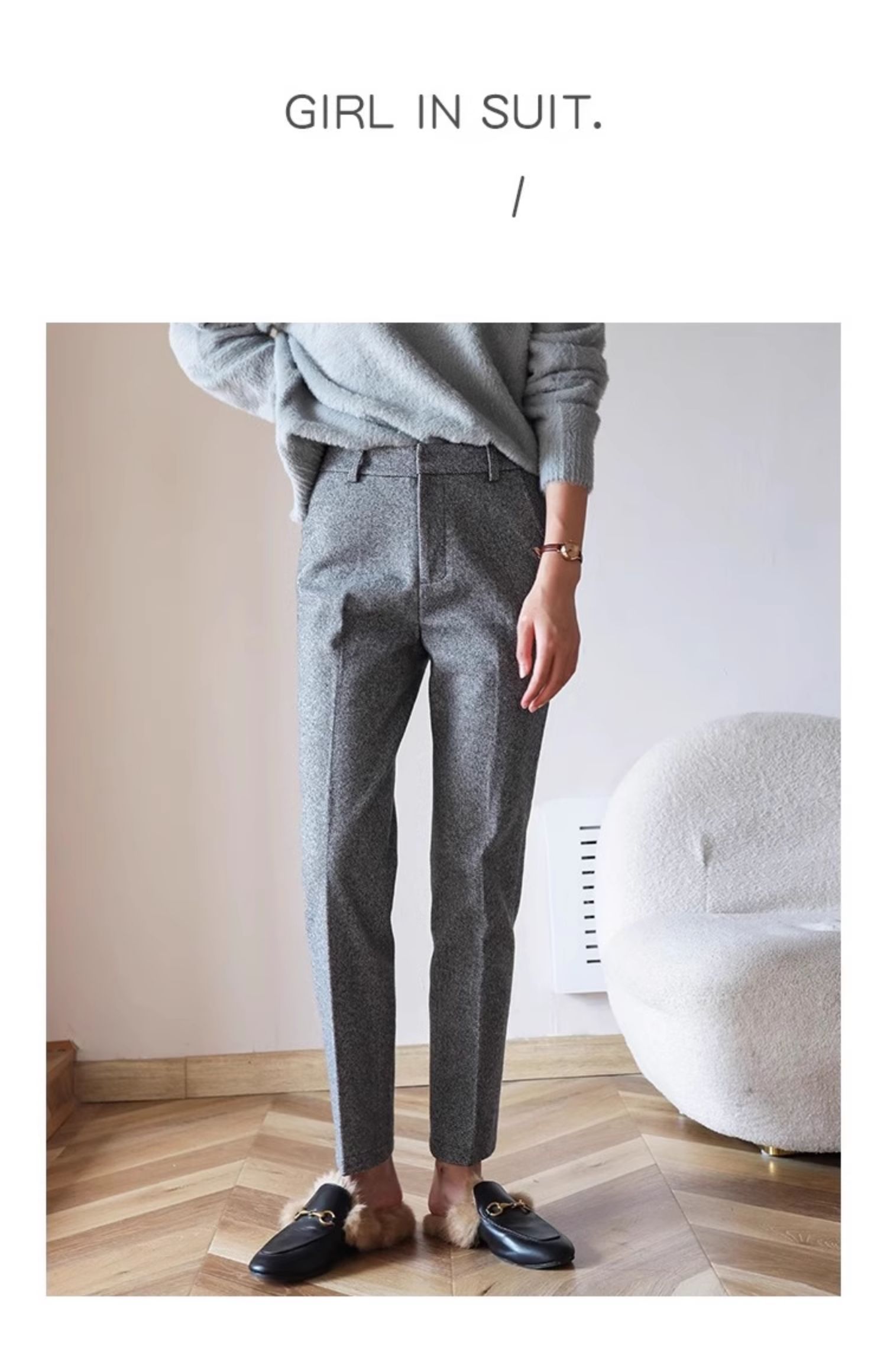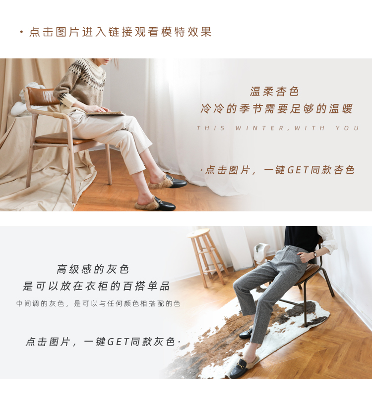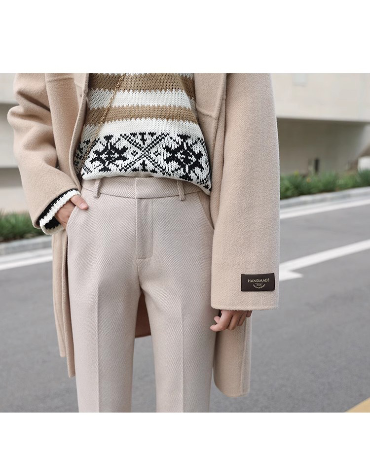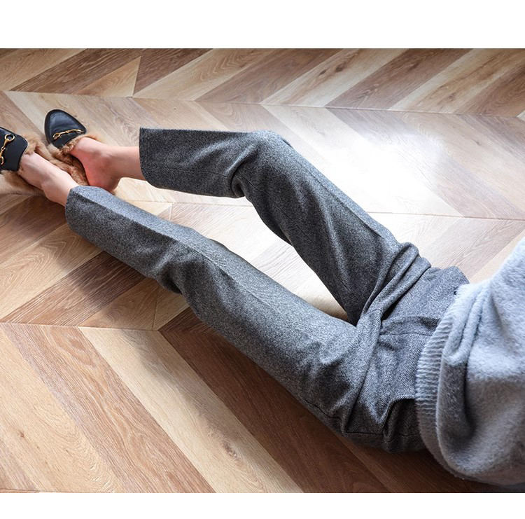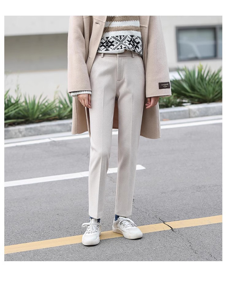 秋冬加厚人字紋毛呢褲九分褲女直筒菸管褲韓版寬松小腳褲高腰簡約