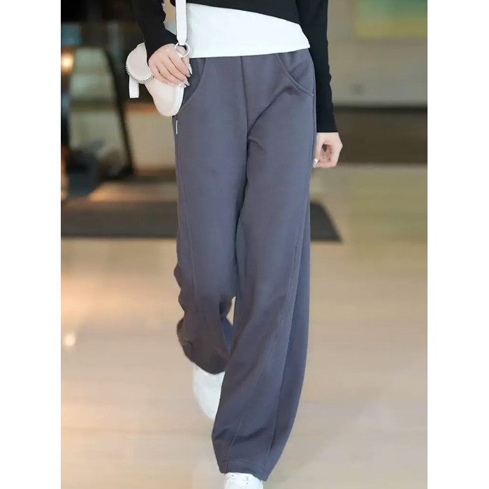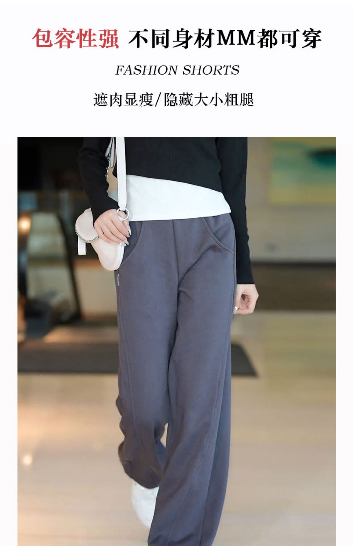 彎刀香蕉褲女新款秋冬加絨寬松濶腿衛褲小個子休閒直筒拖地運動褲