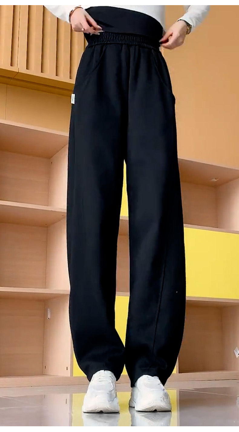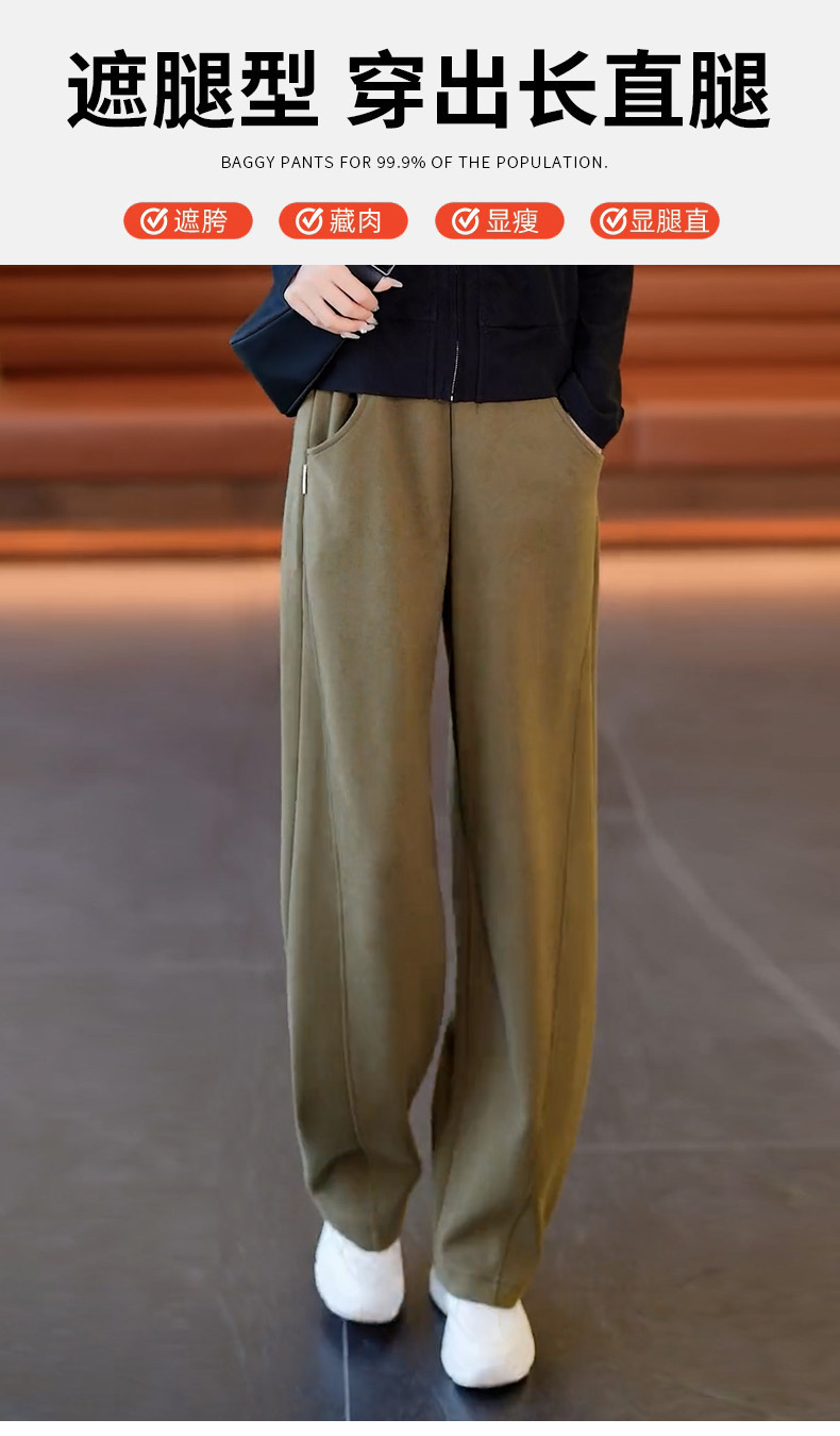 彎刀香蕉褲女褲秋冬加絨2025新款小個子濶腿褲休閒鐮刀運動衛褲子