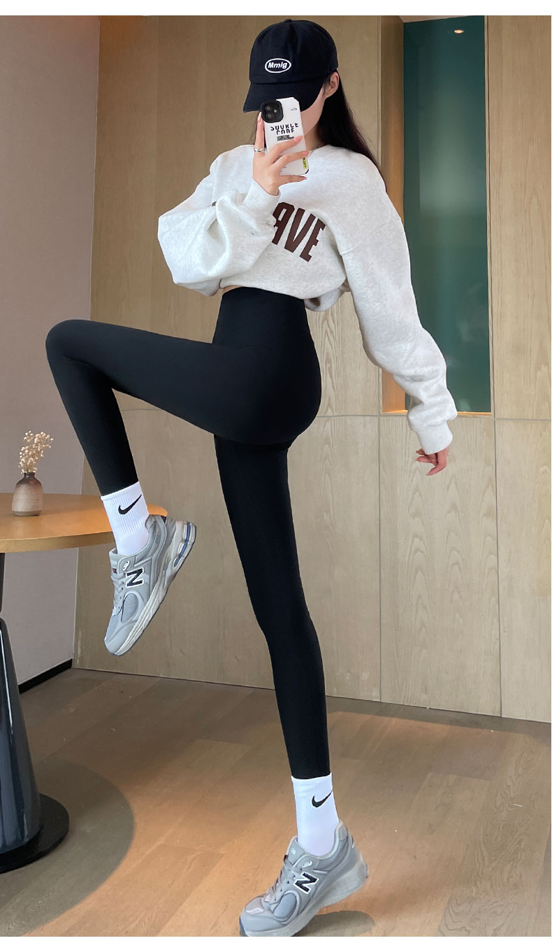 鯊魚褲女外穿秋冬季加絨加厚高腰提臀瑜珈大碼胖mm黑色薄絨打底褲